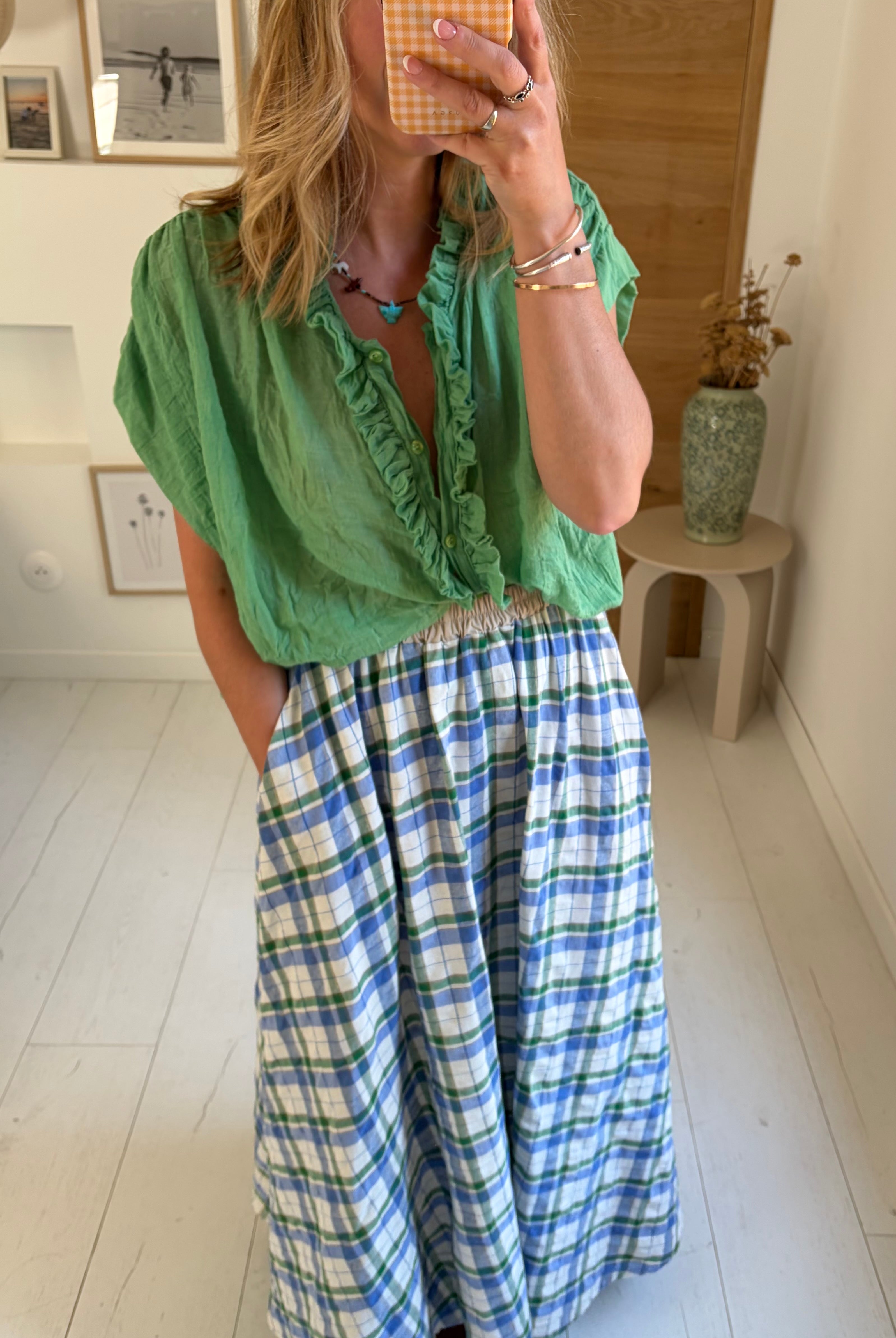 Sa fermeture en boutons fantaisies dorés lui apporte beaucoup d'allure