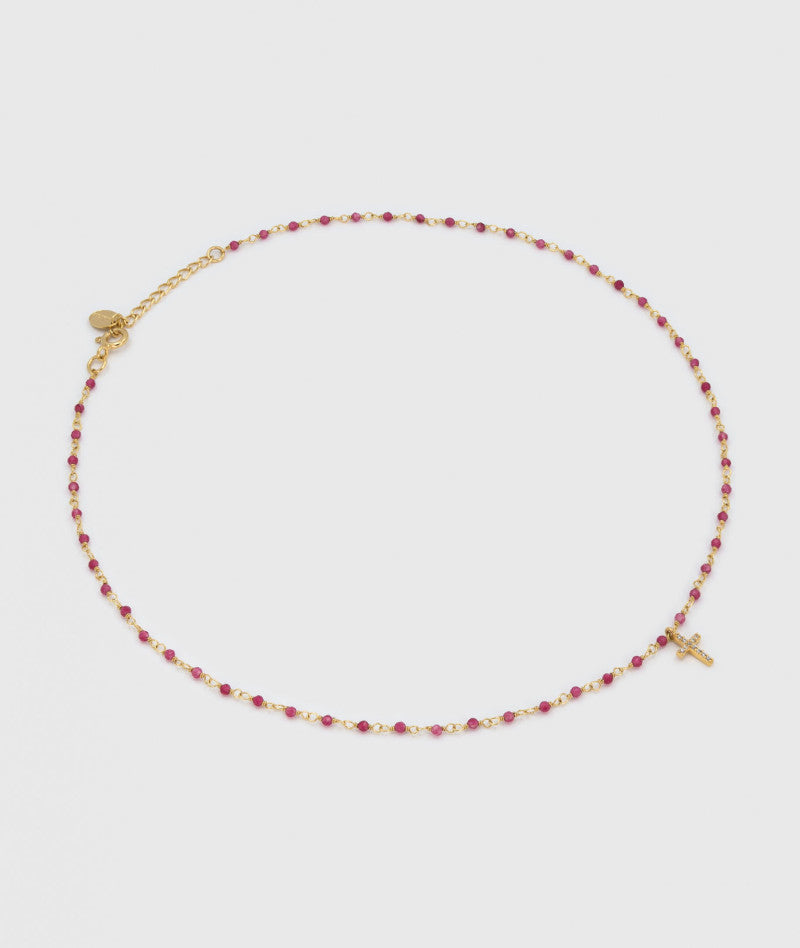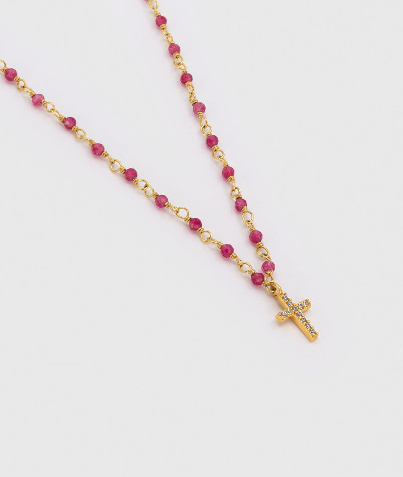 Collier Inde Croix Fuchsia