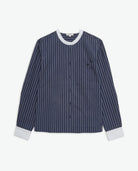 Imprimé à rayures. Col Mao. Manches longues. Boutons aux poignets. Fermeture par boutons nacrés. Poche plaquée avec bouton sur la poitrine. Bordure du col en contraste