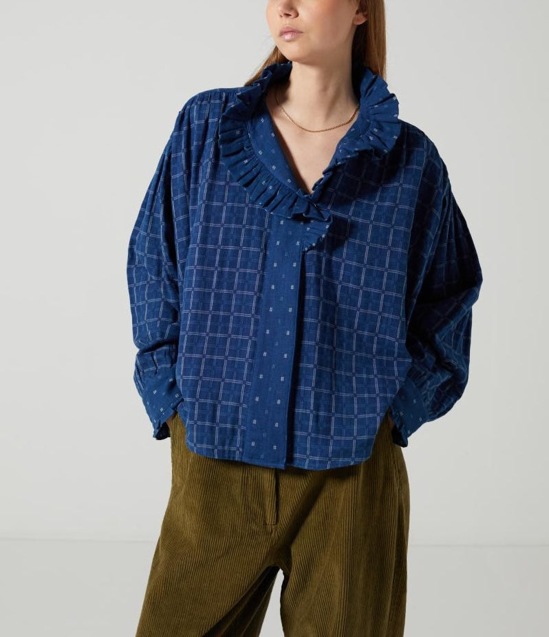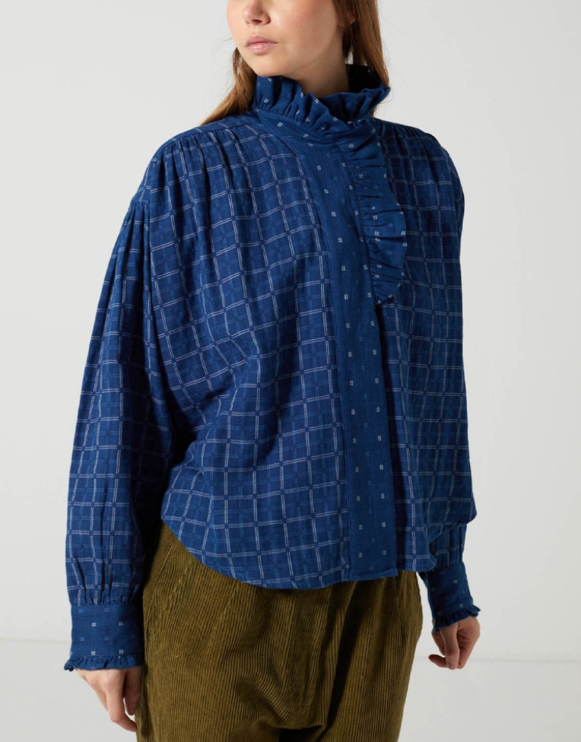 Avec sa coupe ample et ses manches bouffantes tombantes, elle offre une silhouette confortable et fluide, parfaite pour le quotidien comme pour des looks plus travaillés.