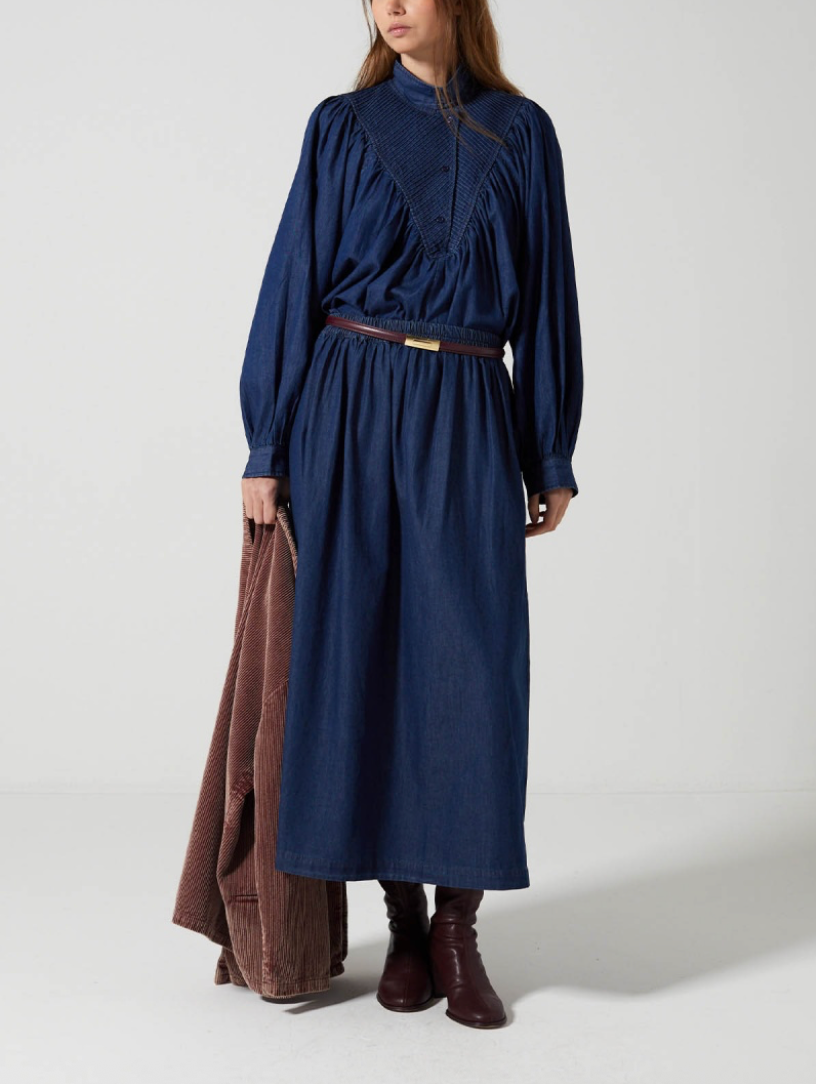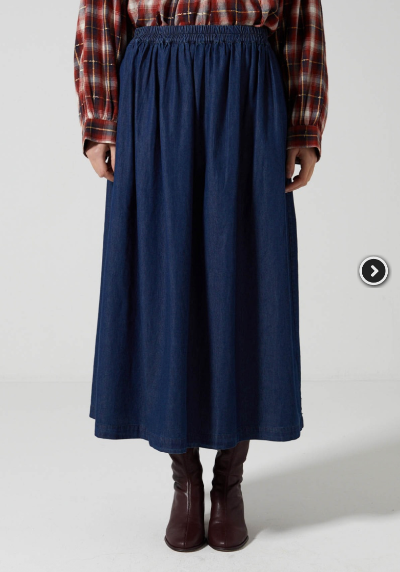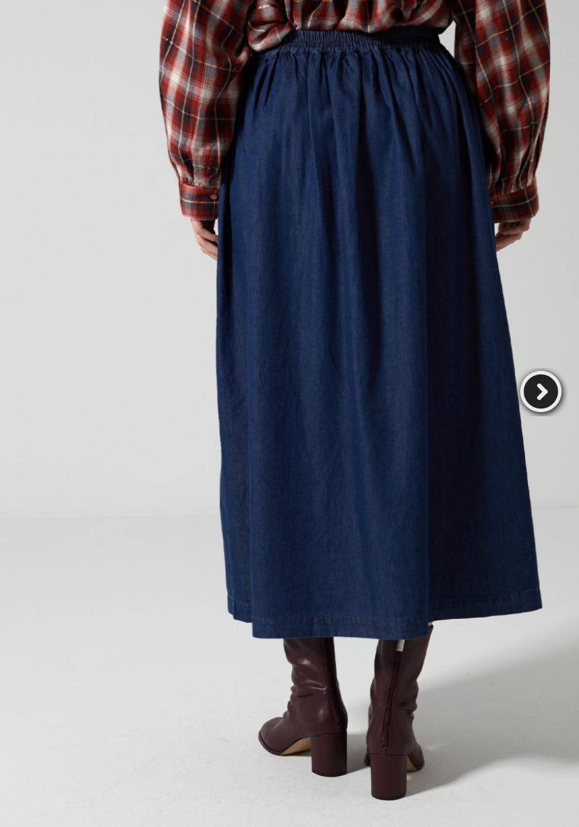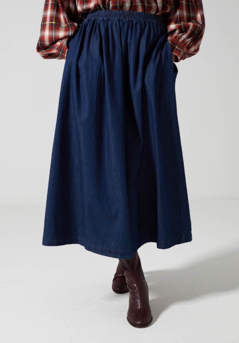 La jupe Ines séduit par sa ligne ample et sa simplicité élégante. Confectionnée dans une toile denim souple, elle offre une belle tenue tout en accompagnant le mouvement avec légèreté.