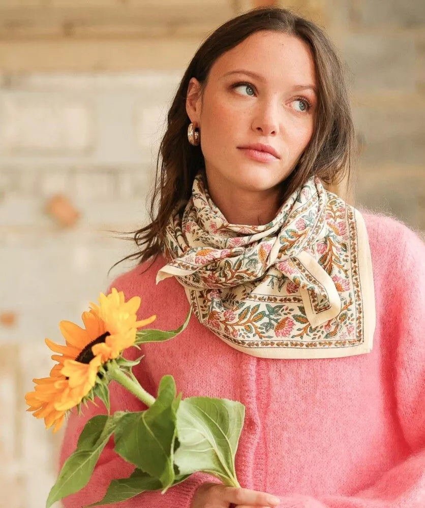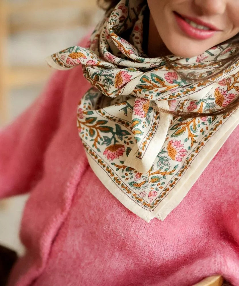 Un imprimé fleuri pour ce foulard en coton tout doux.