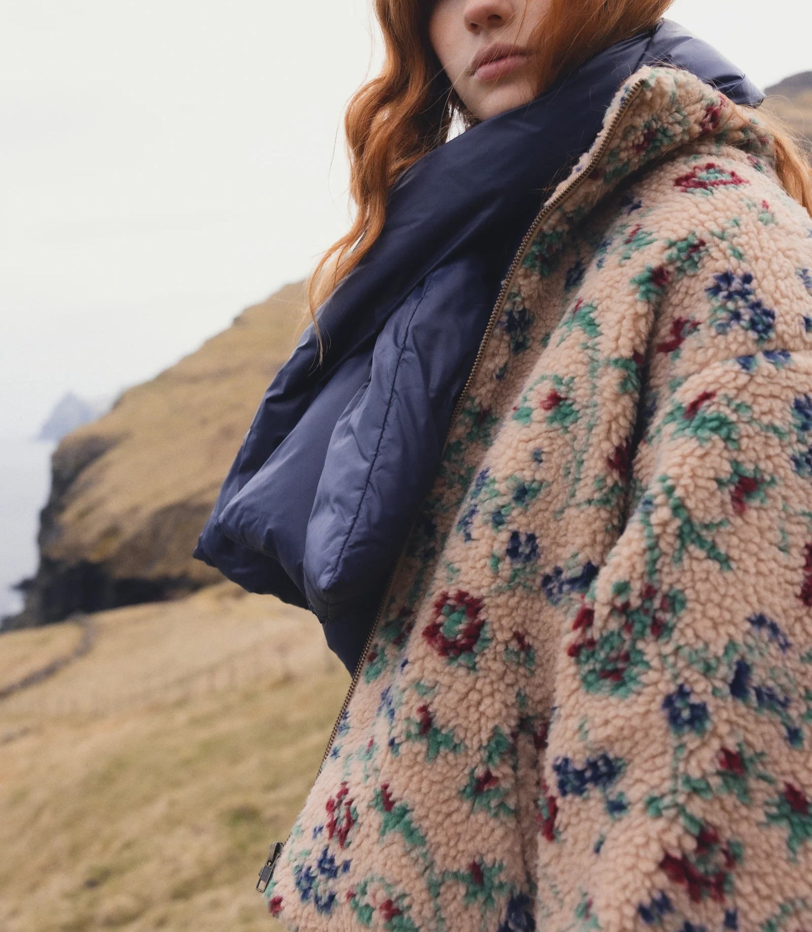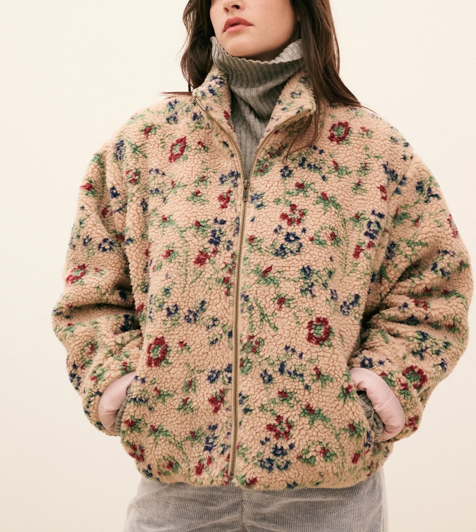 Esther est un blouson en bouclette. On adore son imprimé Vintage qui lui apporte beaucoup de fraicheur et de modernité.