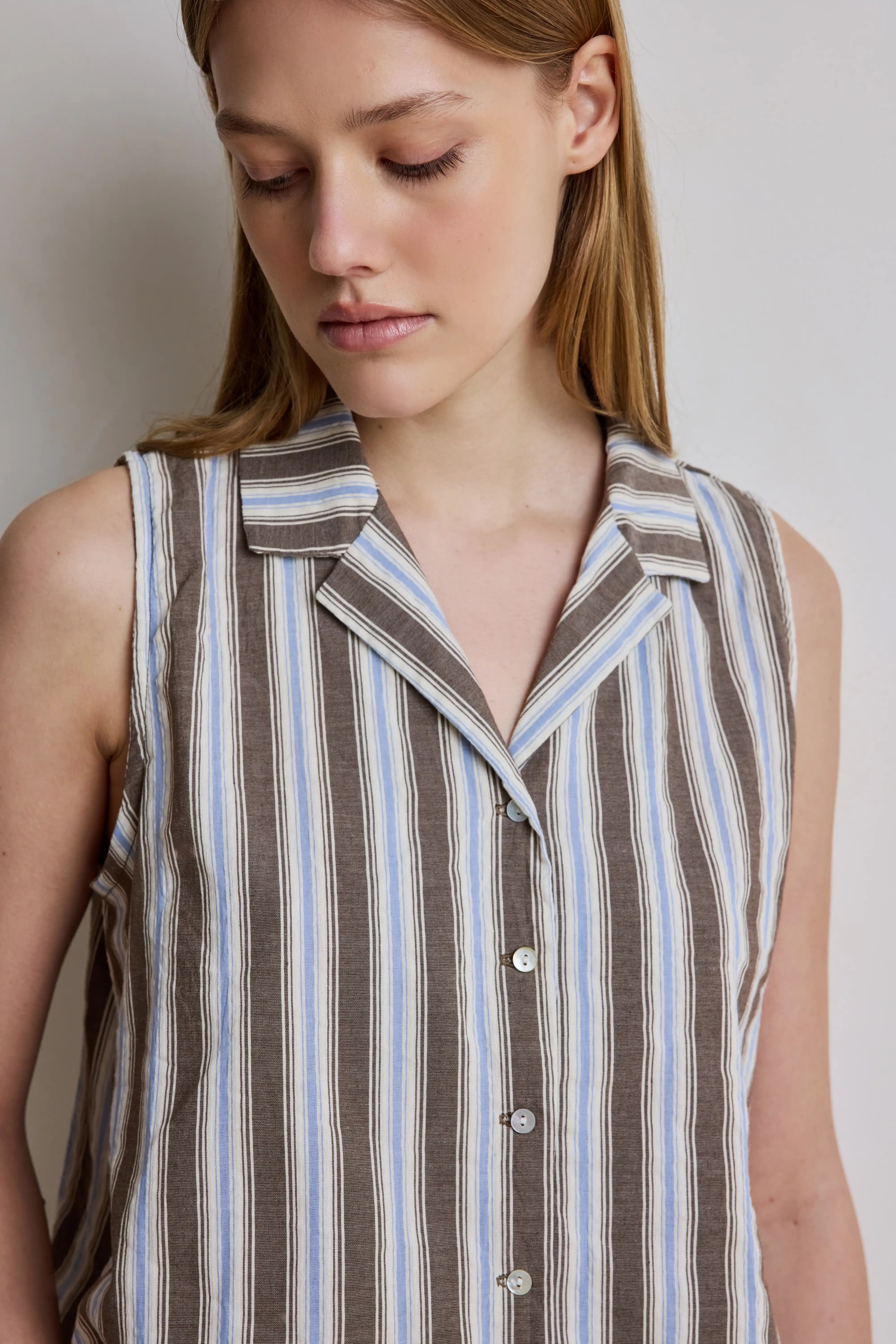 Mimi est une chemisette sans manche. Sa coupe est légèrement trapèze.