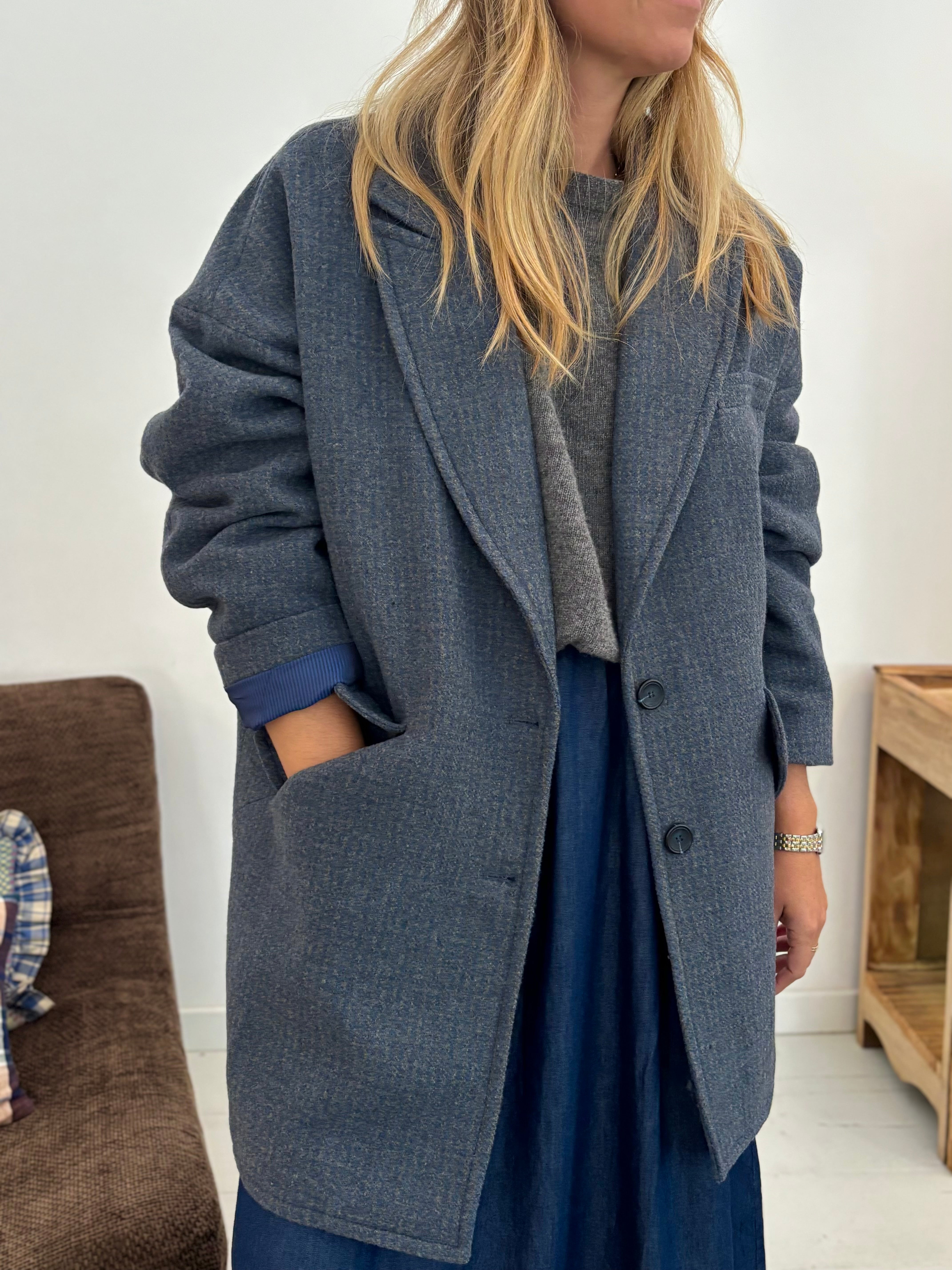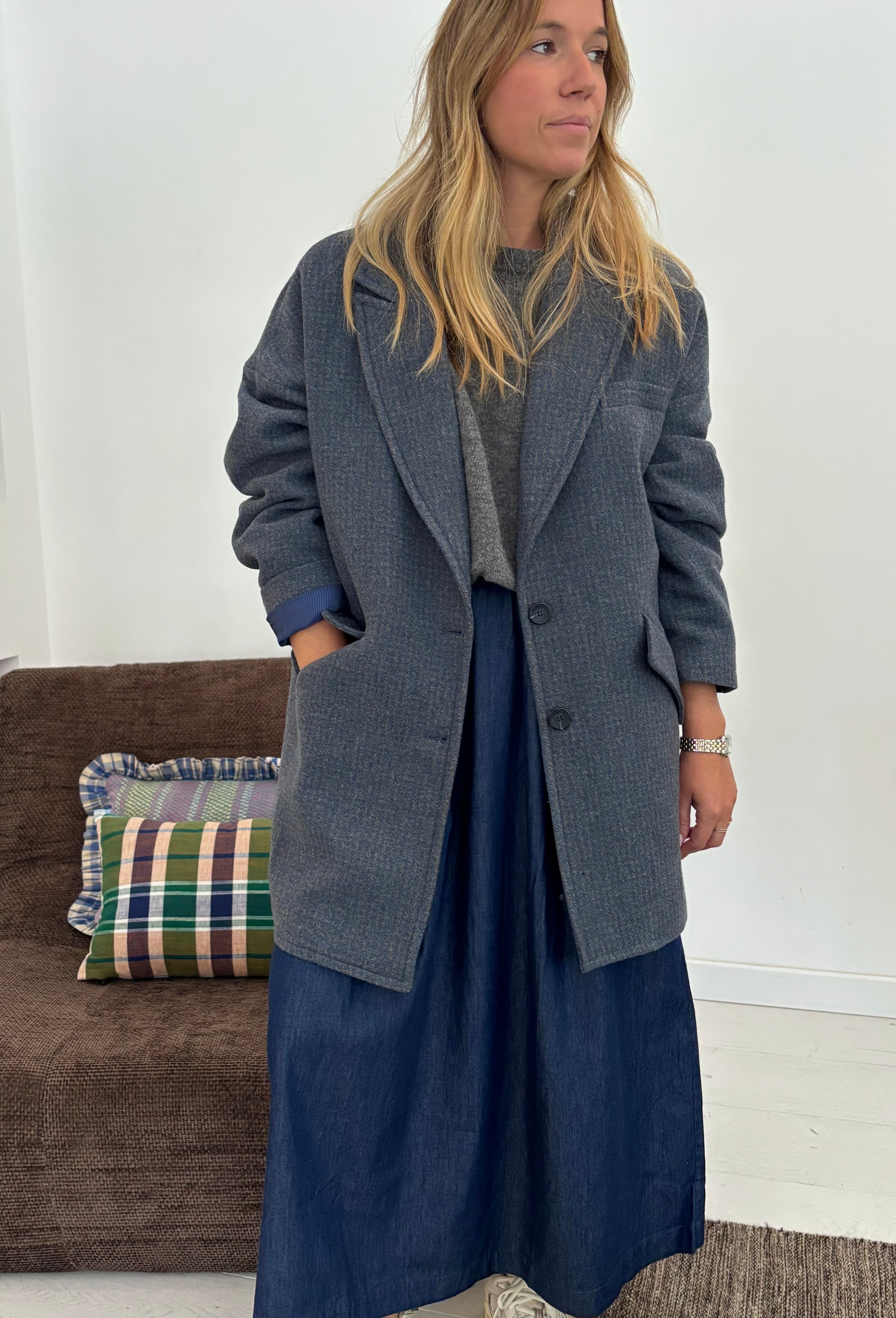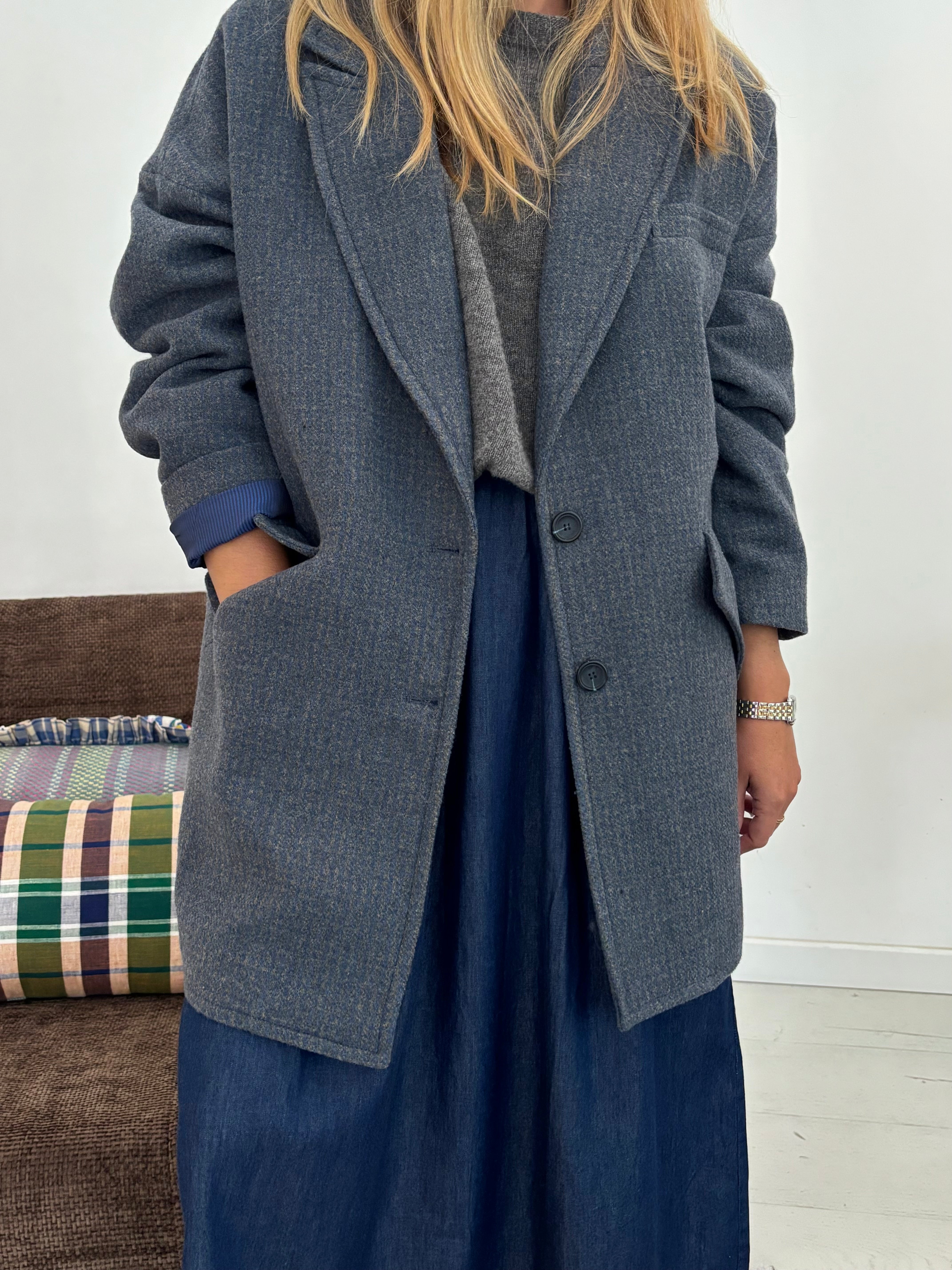 Petits carreaux gris et bleu - Doublure rayures dans les tons de bleu
