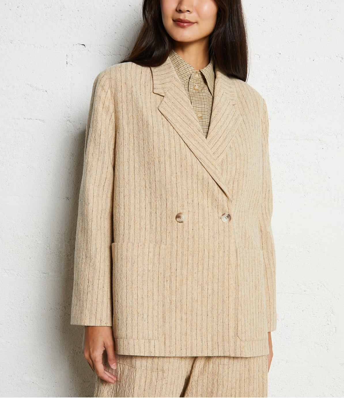 La veste KIARA est une veste de costume à la coupe droite. Sa fermeture en boutons croisés lui apporte beaucoup d'allure.