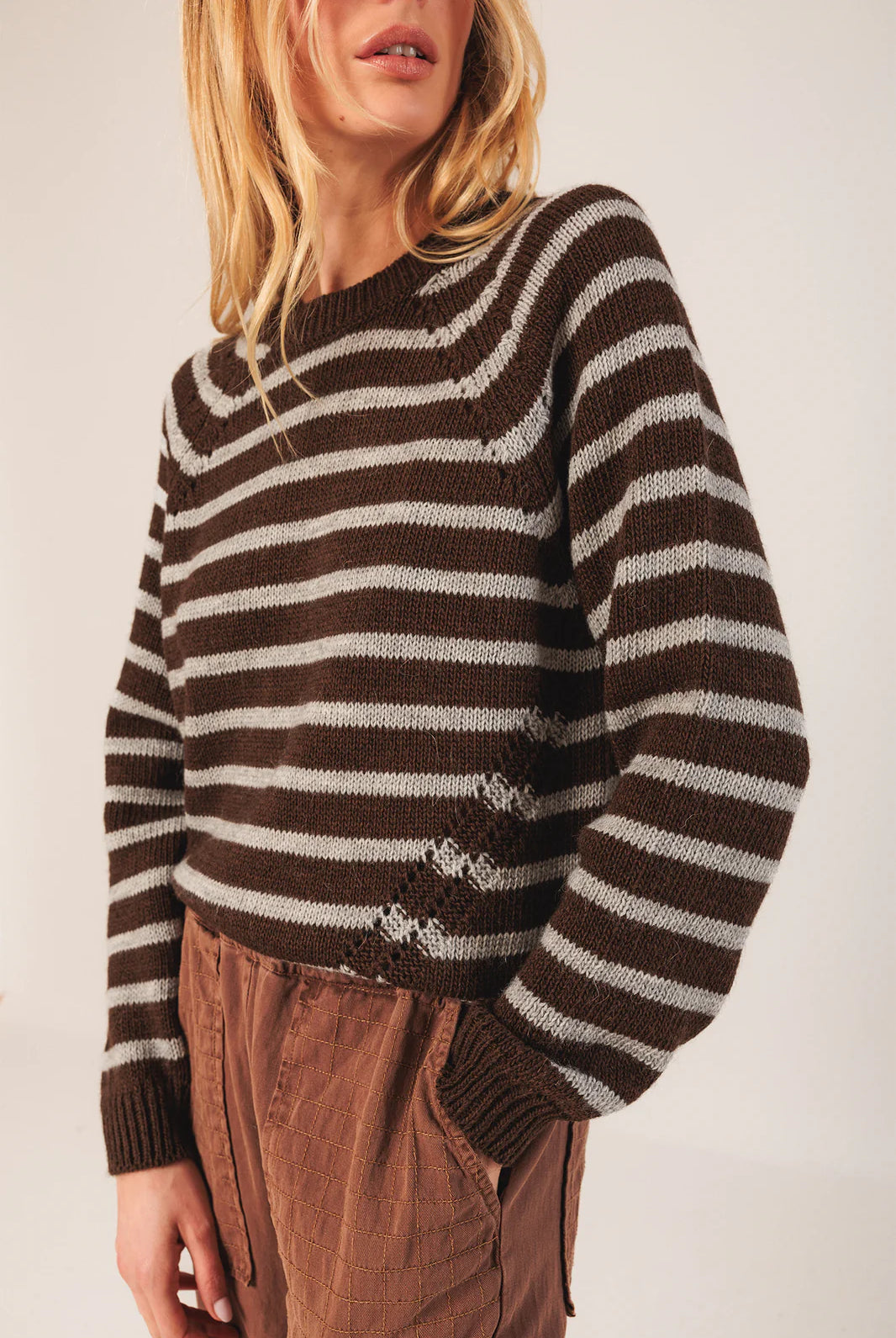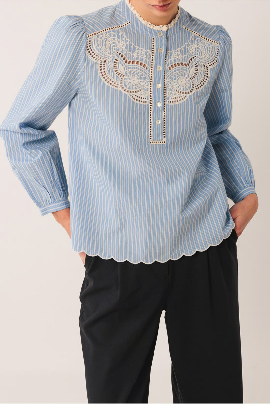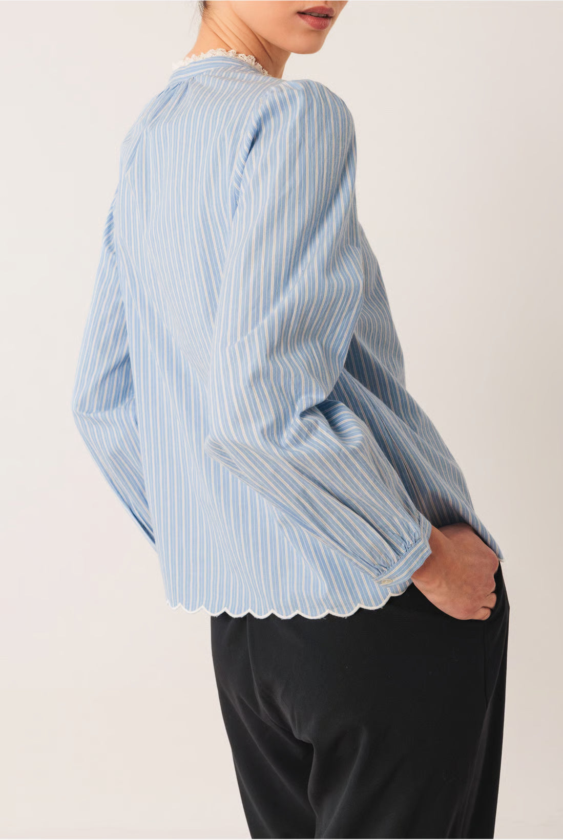 Chaque pièce est pensée pour le style plutôt que la tendance éphémère : blouses délicates aux épaules smockées à la main, robes imprimées fluides, pulls en alpaga tout doux, vestes en coton biologique. Des créations minutieuses qui allient confort et sophistication féminine.