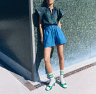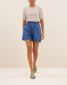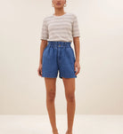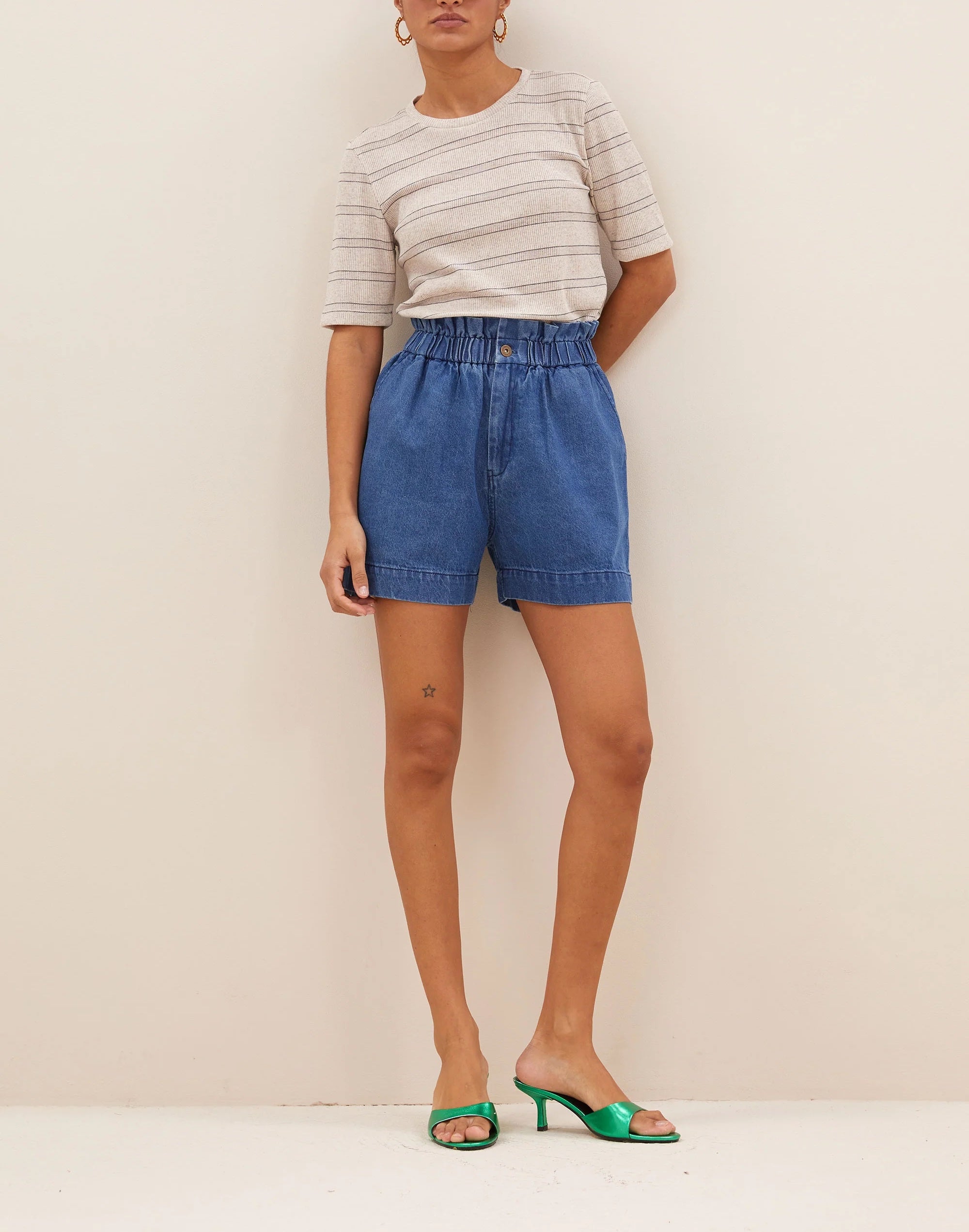 Préparez-vous pour un été élégant avec le leon denim short. Ce short taille haute offre une coupe décontractée et est fabriqué en coton doux pour plus de confort. Avec une fermeture éclair et un bouton, ainsi que des poches latérales pratiques, c’est un choix polyvalent pour toutes les occasions.