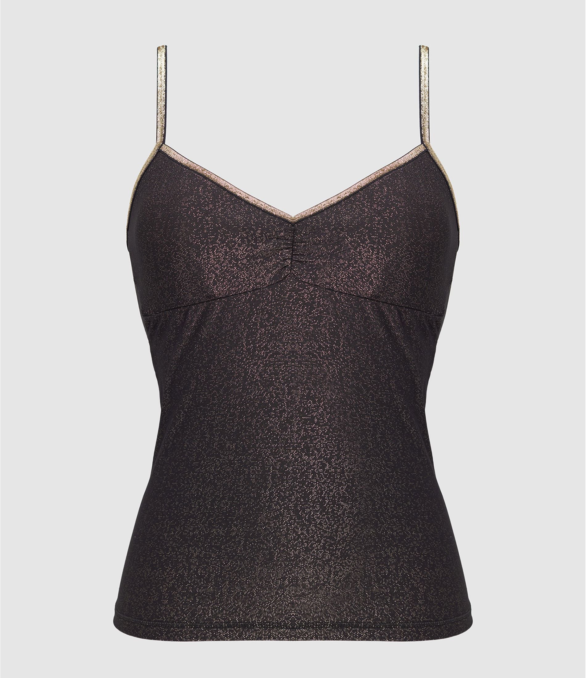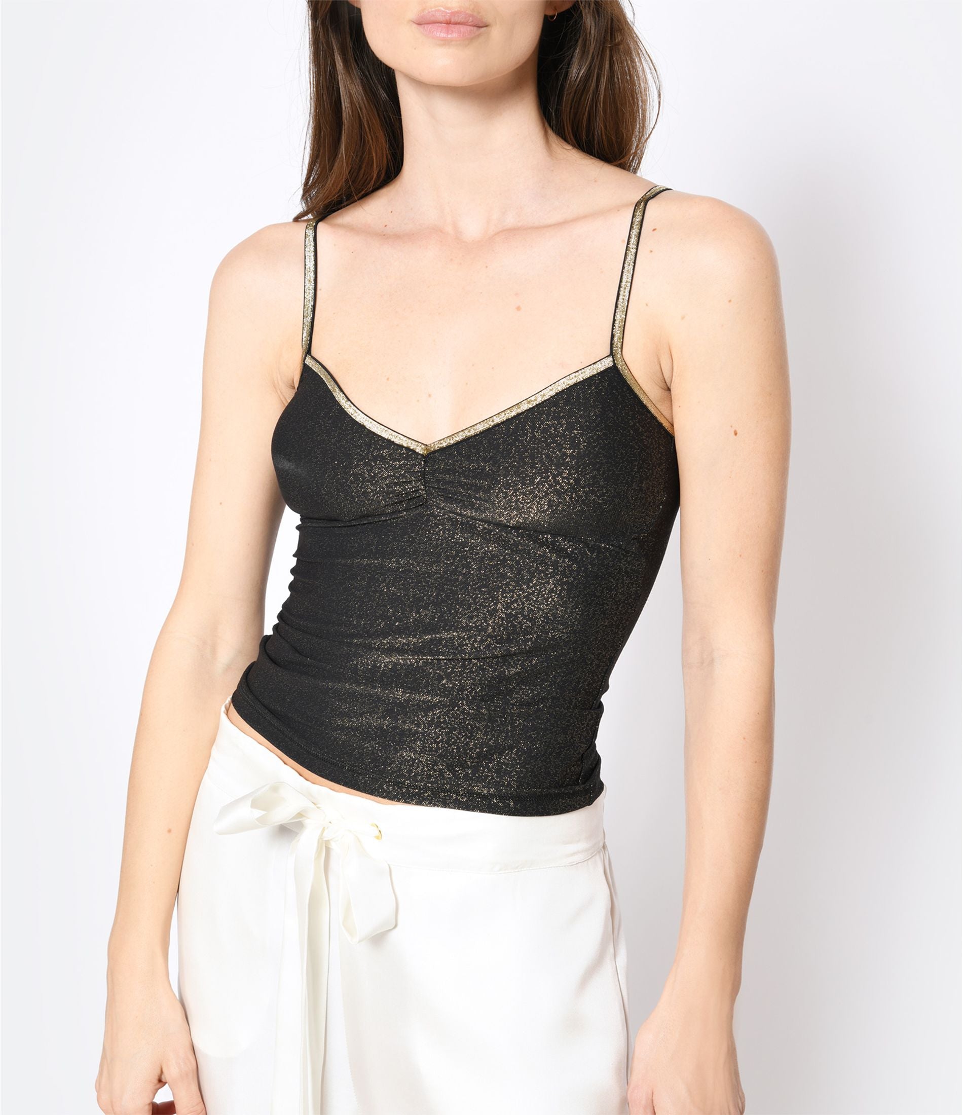 Le caraco Georgia est un haut à porter à la maison, ou sous un pull ou une chemise, en laissant ses fines bretelles lurex se dévoiler