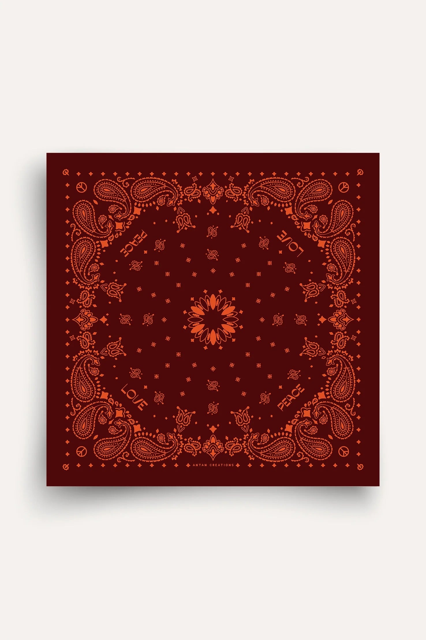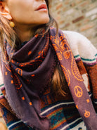 Fabriqués à la main en Inde, ces bandanas 100% laine d'un mètre carré, avec leurs franges délicates, arborent des motifs "Peace & Love" pour une allure hippie chic et élégante