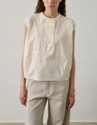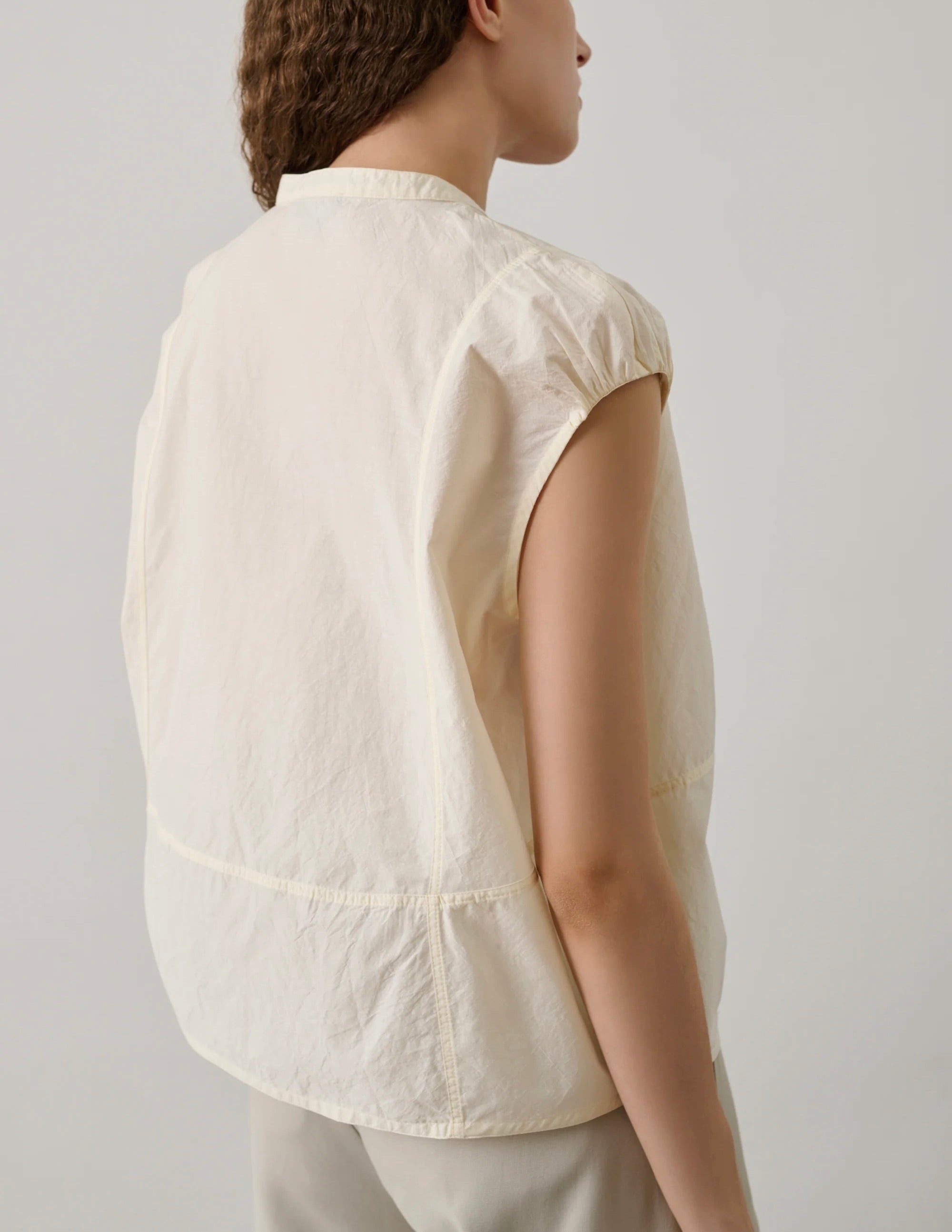 DANUBE est une blouse en popeline froissée. Une pièce aérienne : de forme ample et légèrement arrondie, elle est conçue dans un tissu de coton léger à l’aspect froissé. Sa teinte vanille et ses jeux de transparence apporteront une gracieuse touche de lumière à vos tenues quotidiennes.