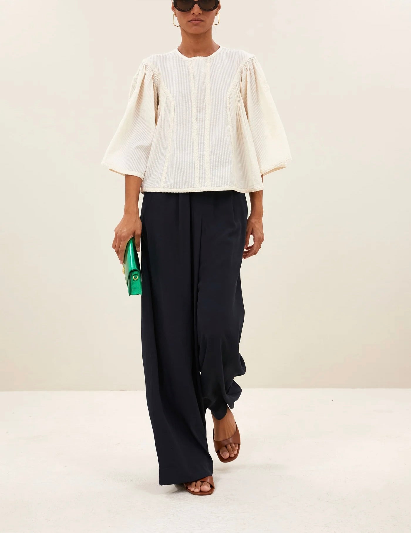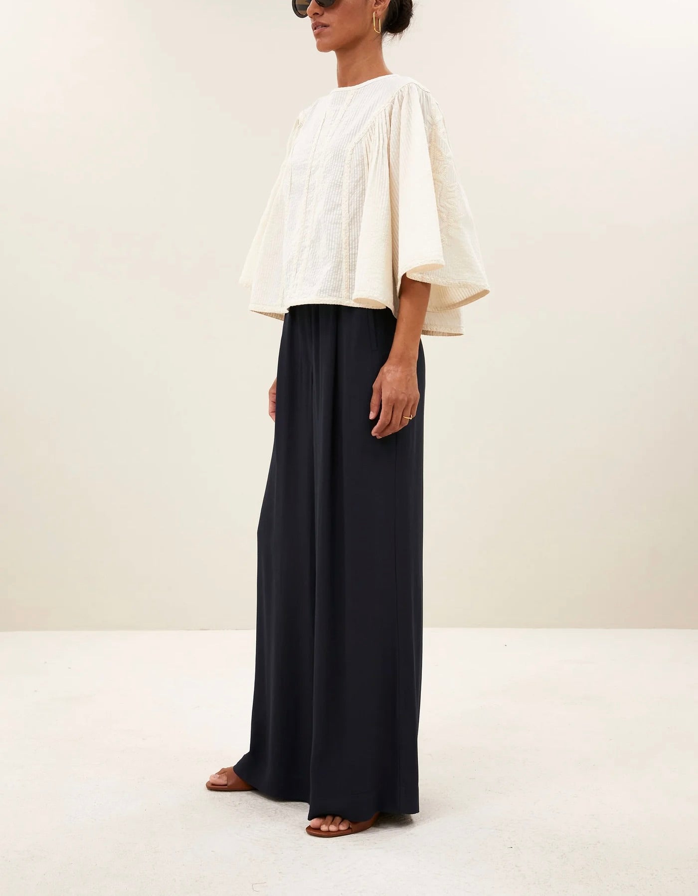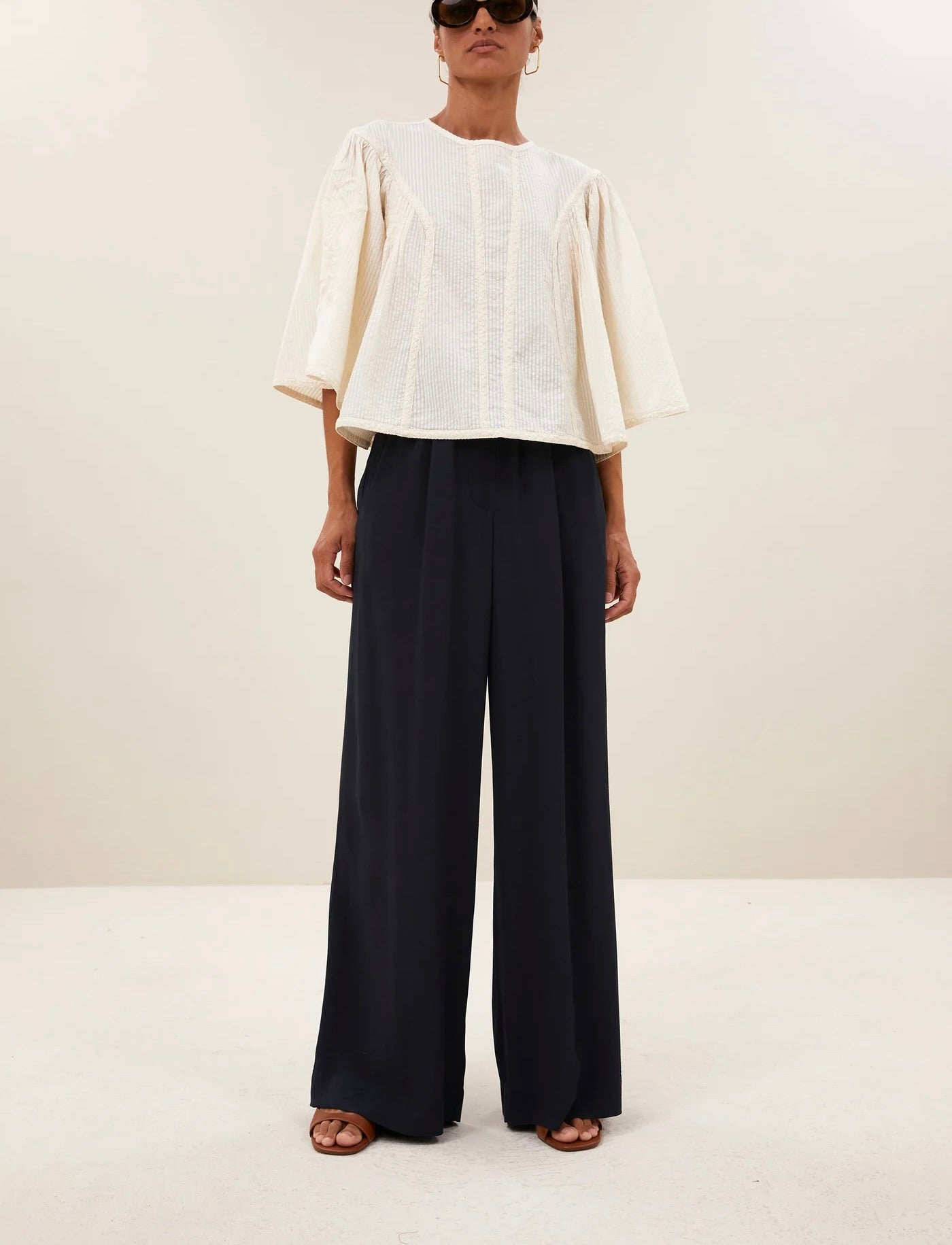 La blouse davin seersucker combine un style décontracté avec une coupe normale confortable. Elle se distingue par des détails plissés et un doux col rond, parfaits pour un look à la fois relax et élégant. Avec ses manches mi-longues et ses broderies subtiles, cette blouse dégage une certaine finesse sans compromettre le confort. Idéale pour tous les jours