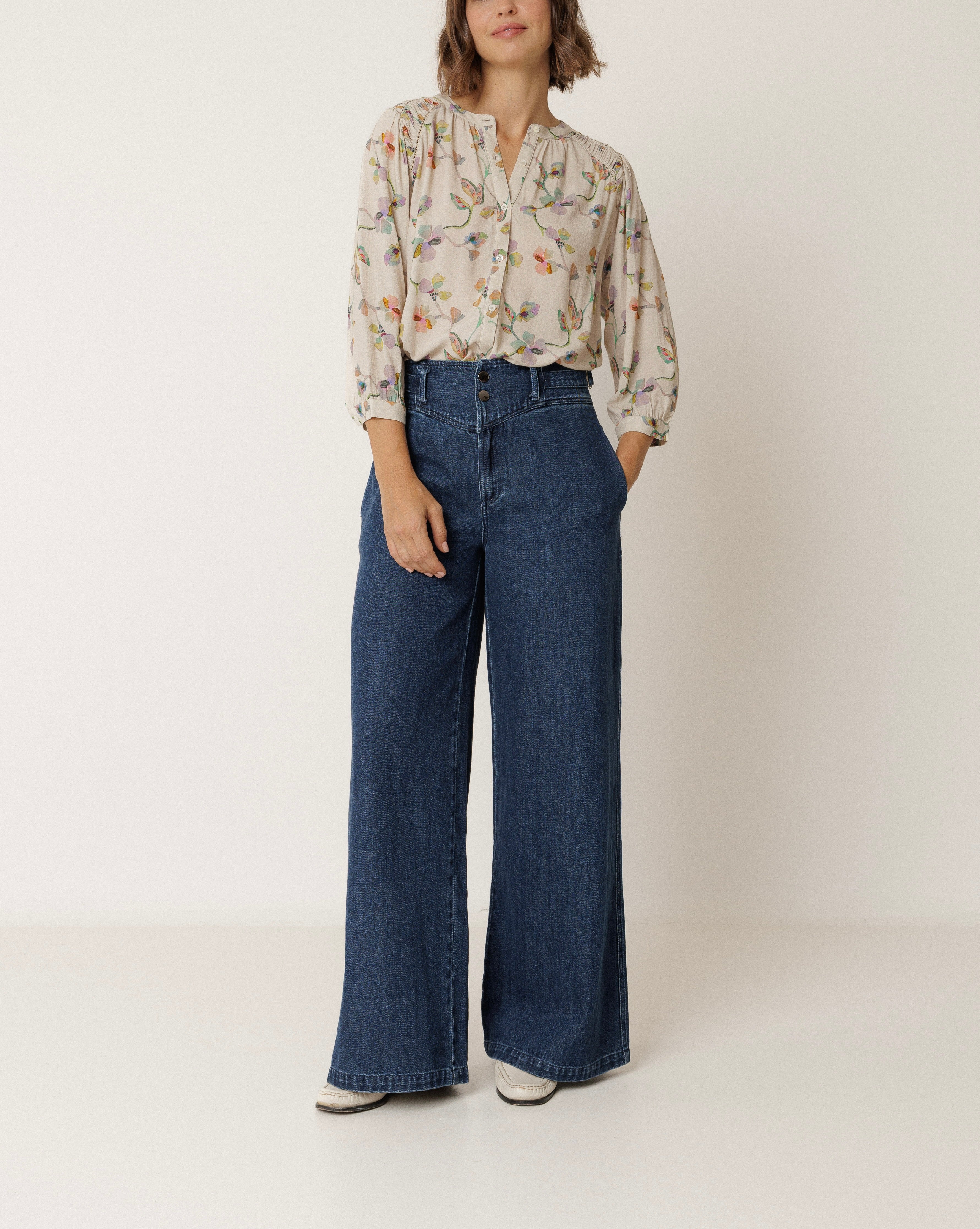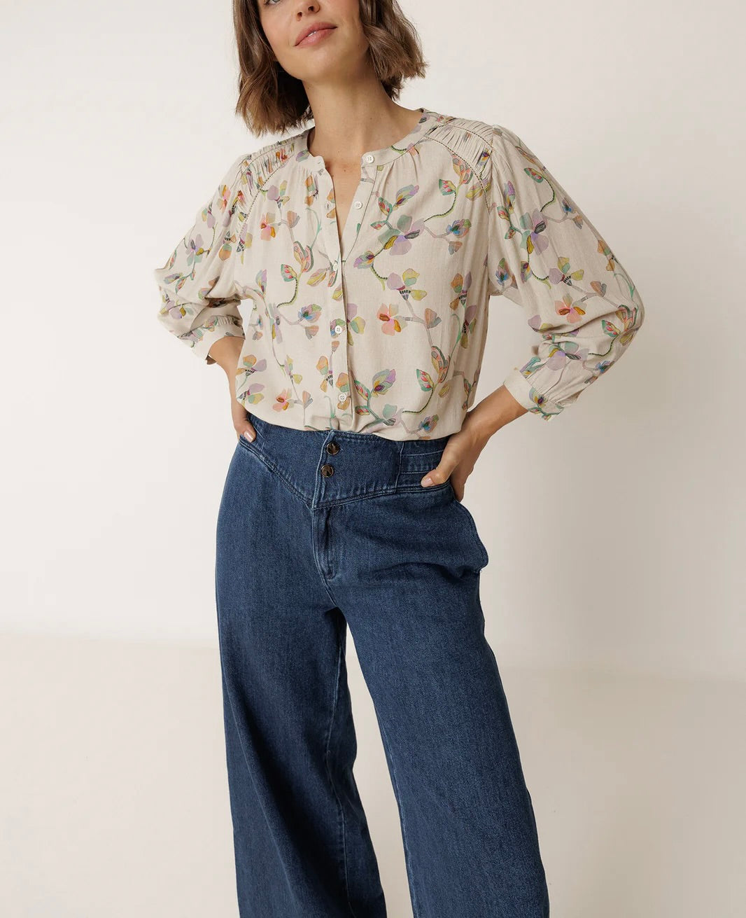 Encolure ronde et épaules cintrées avec détails de plis et jours échelle