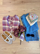 Kiliman est une jolie blouse manches longues. Son col est mao, elle possède des boutons jusqu'à mi poitrine.