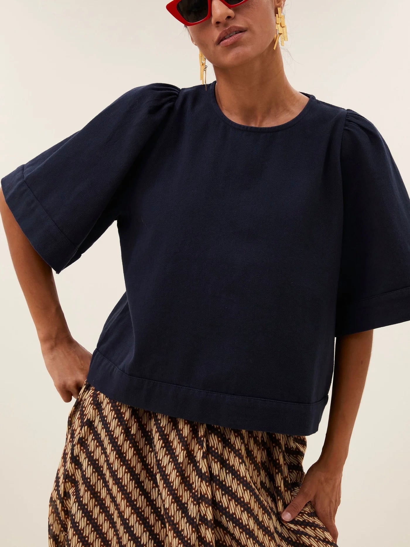 La olivia twill blouse combine un style décontracté avec une coupe normale confortable. Le chemisier présente un col rond et une fermeture éclair pratique, parfaits pour un look sans effort. Avec ses manches courtes, cet article est idéal pour diverses occasions et offre une allure fraîche et intemporelle
