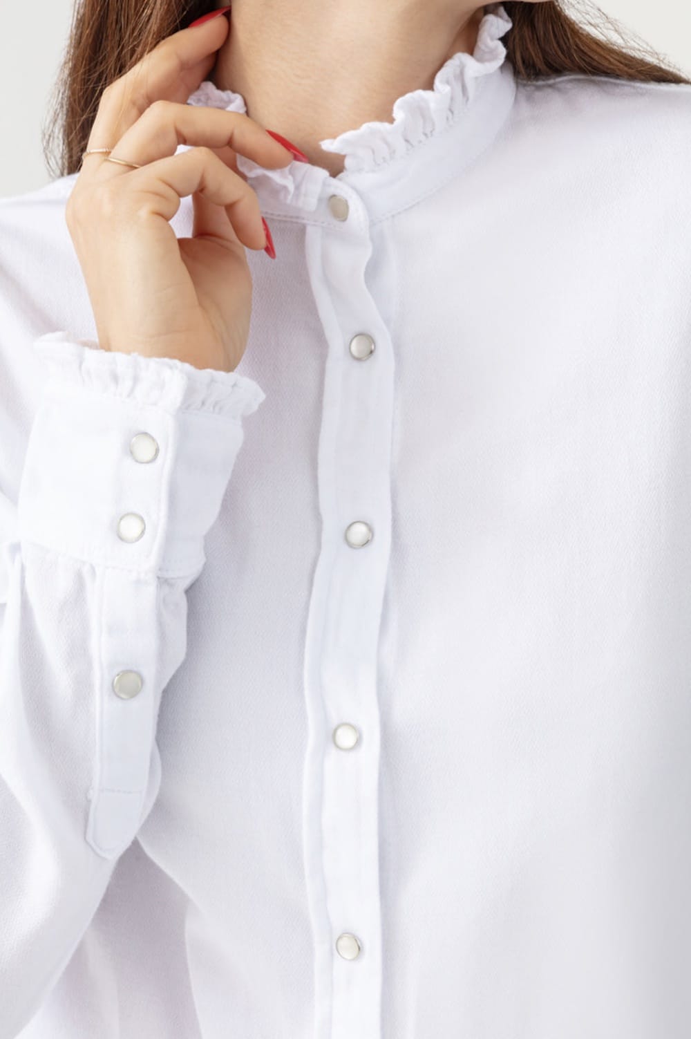 - Coupe droite avec col et poignées agrémentés de volants esprit victorien