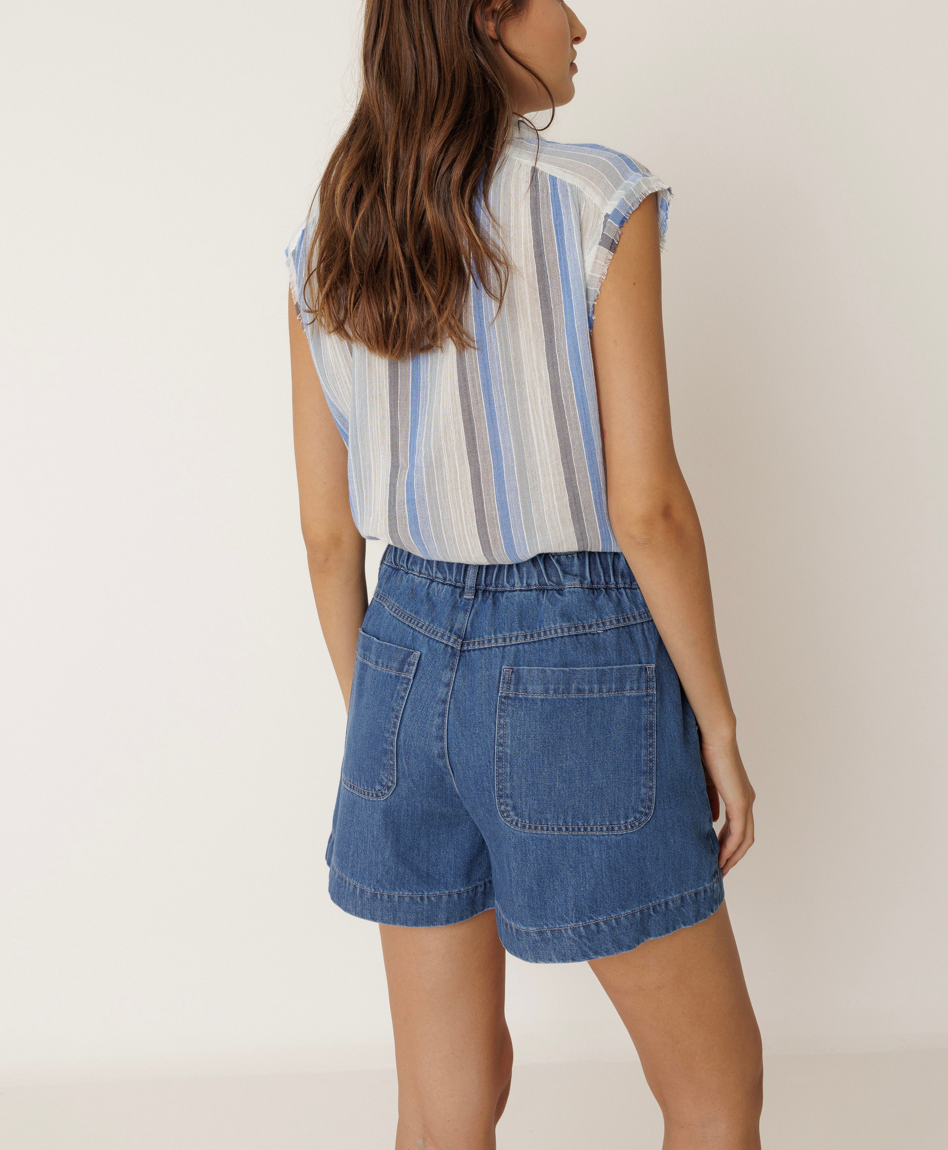 Chemisier rayé bleu ciel de chez Indi & Cold