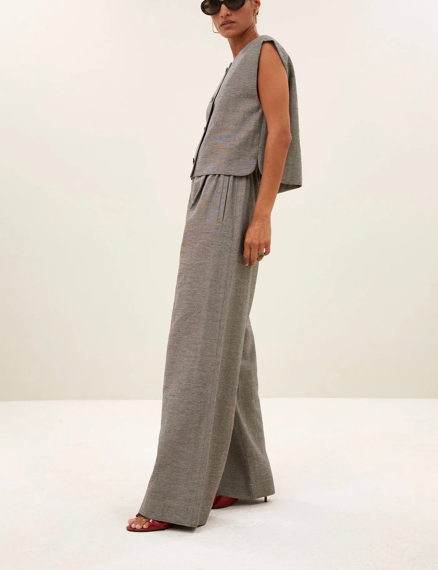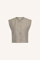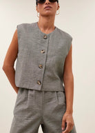Découvrez le gilet nori melange, une addition élégante à votre garde-robe casual chic. Avec une coupe normale confortable et un col rond, ce gilet sans manches offre un look raffiné. La fermeture à boutons le rend facile à porter et à assortir, parfait pour un style polyvalent qui vous accompagne sans effort du jour à la nuit