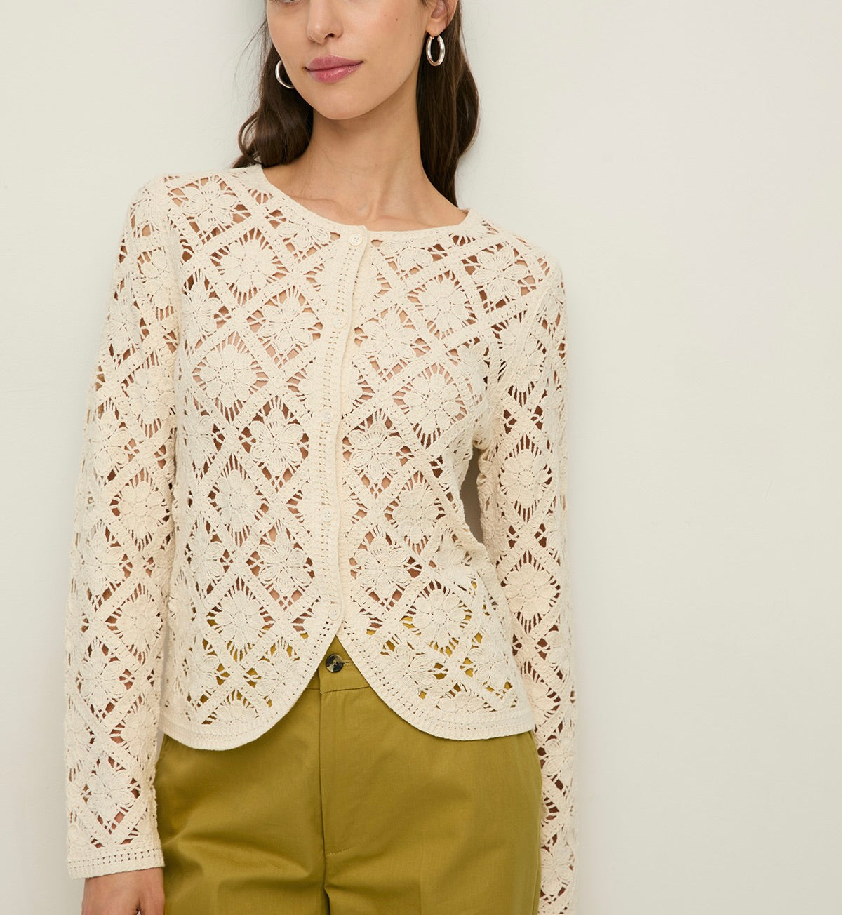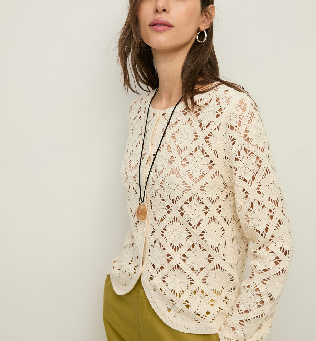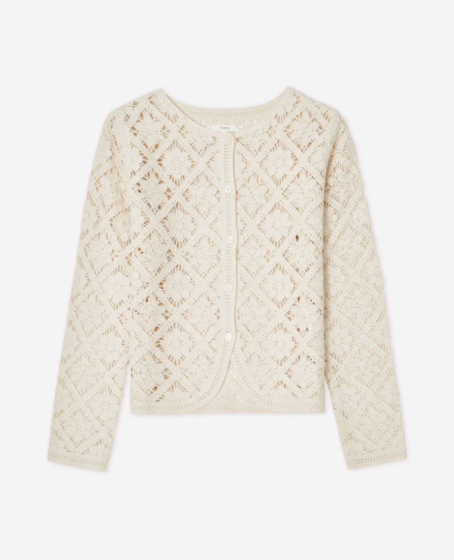 Col rond, fermeture boutonnée sur le devant et finitions côtelées