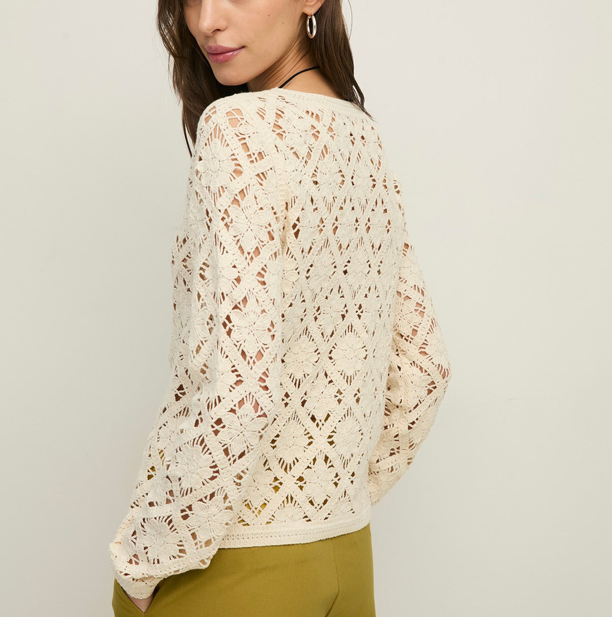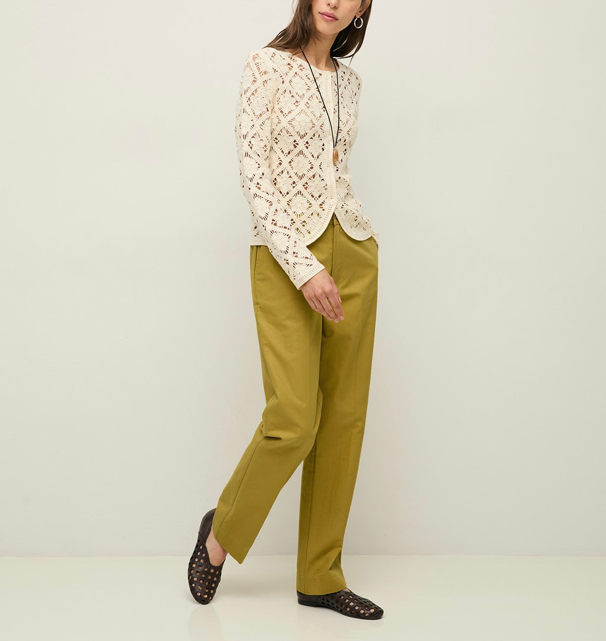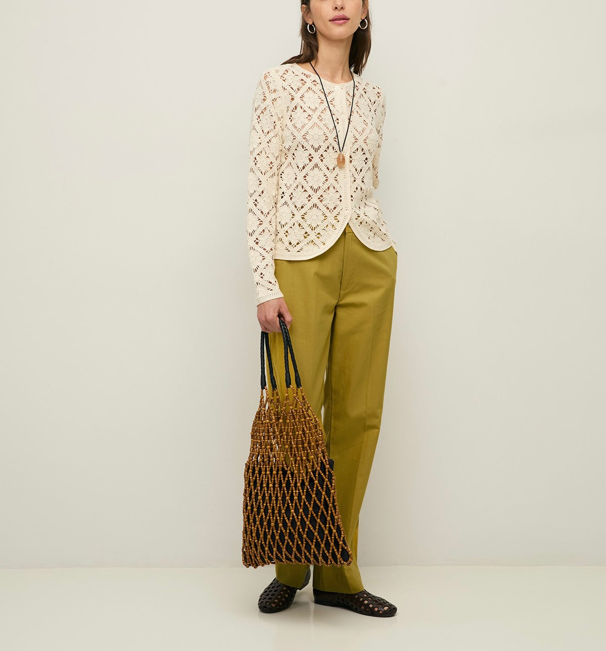 Col rond, fermeture boutonnée sur le devant et finitions côtelées