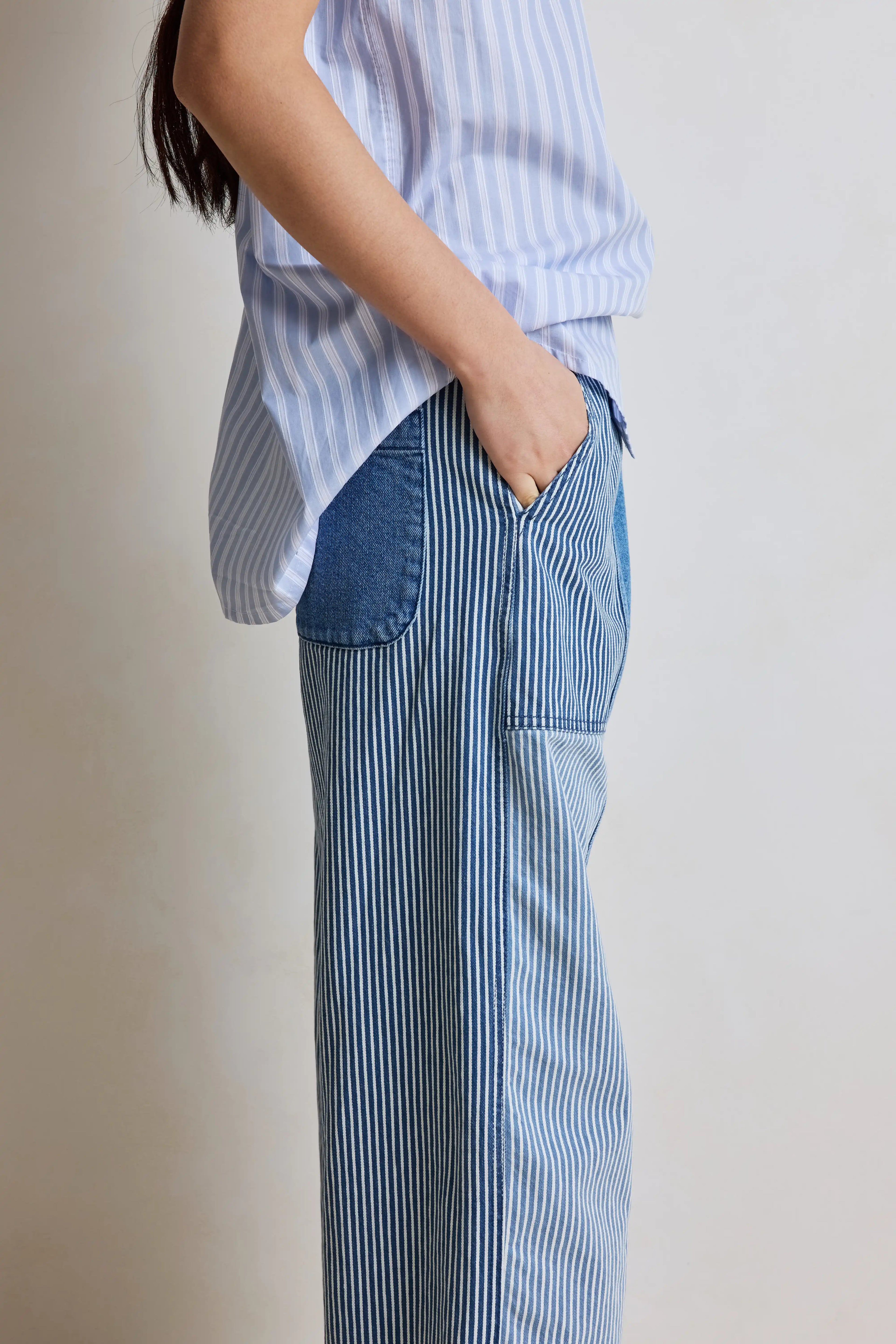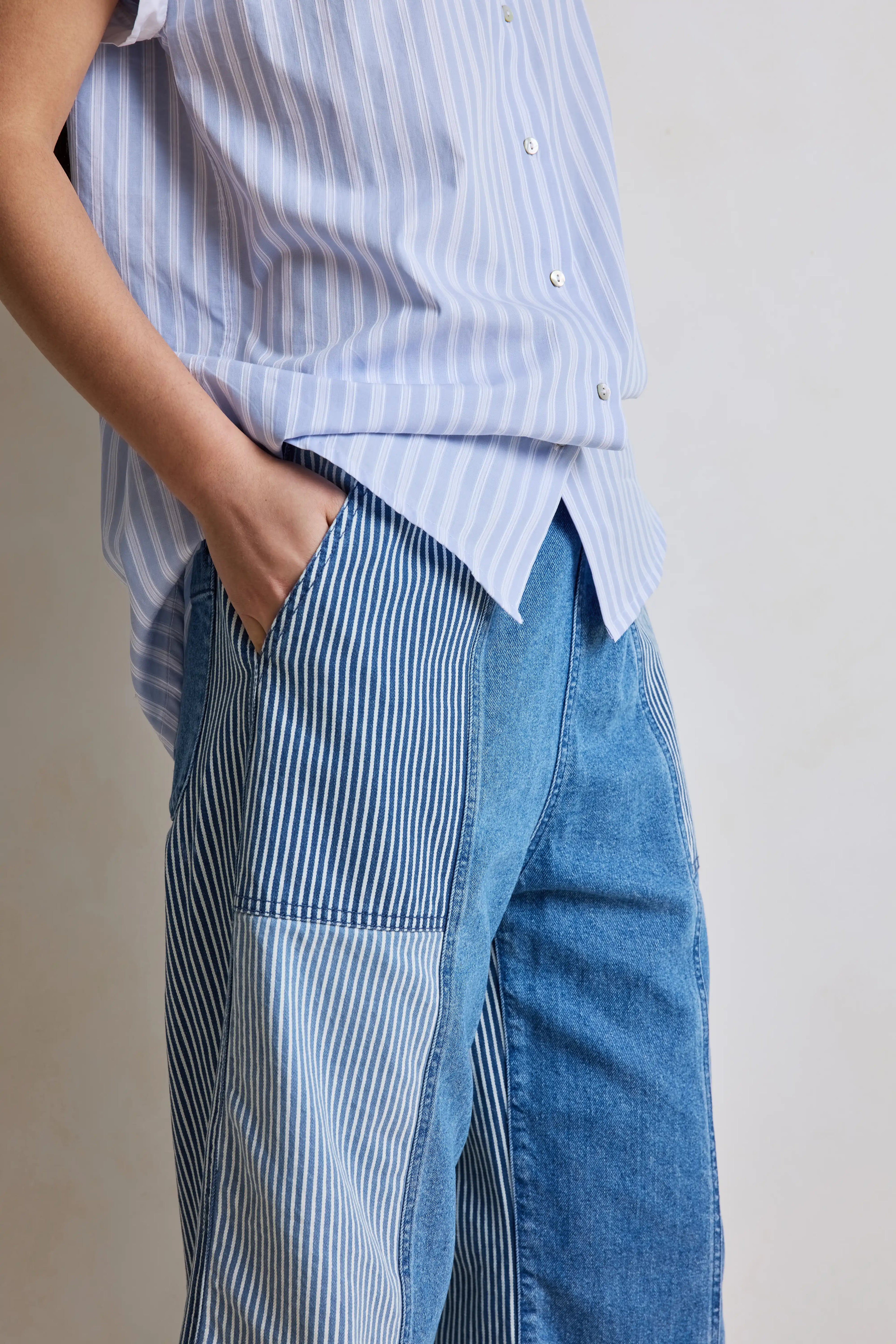 Jim est un petit cousin de notre iconique jean Jimmy. Jim est entièrement élastique à la taille, ce qui le rend très confortable. Sa jambe est droite et large. Il possède deux poches plaquées "à l'italienne". Des passants au niveau de la taille ont été rajoutés pour pouvoir mettre une ceinture.
