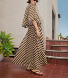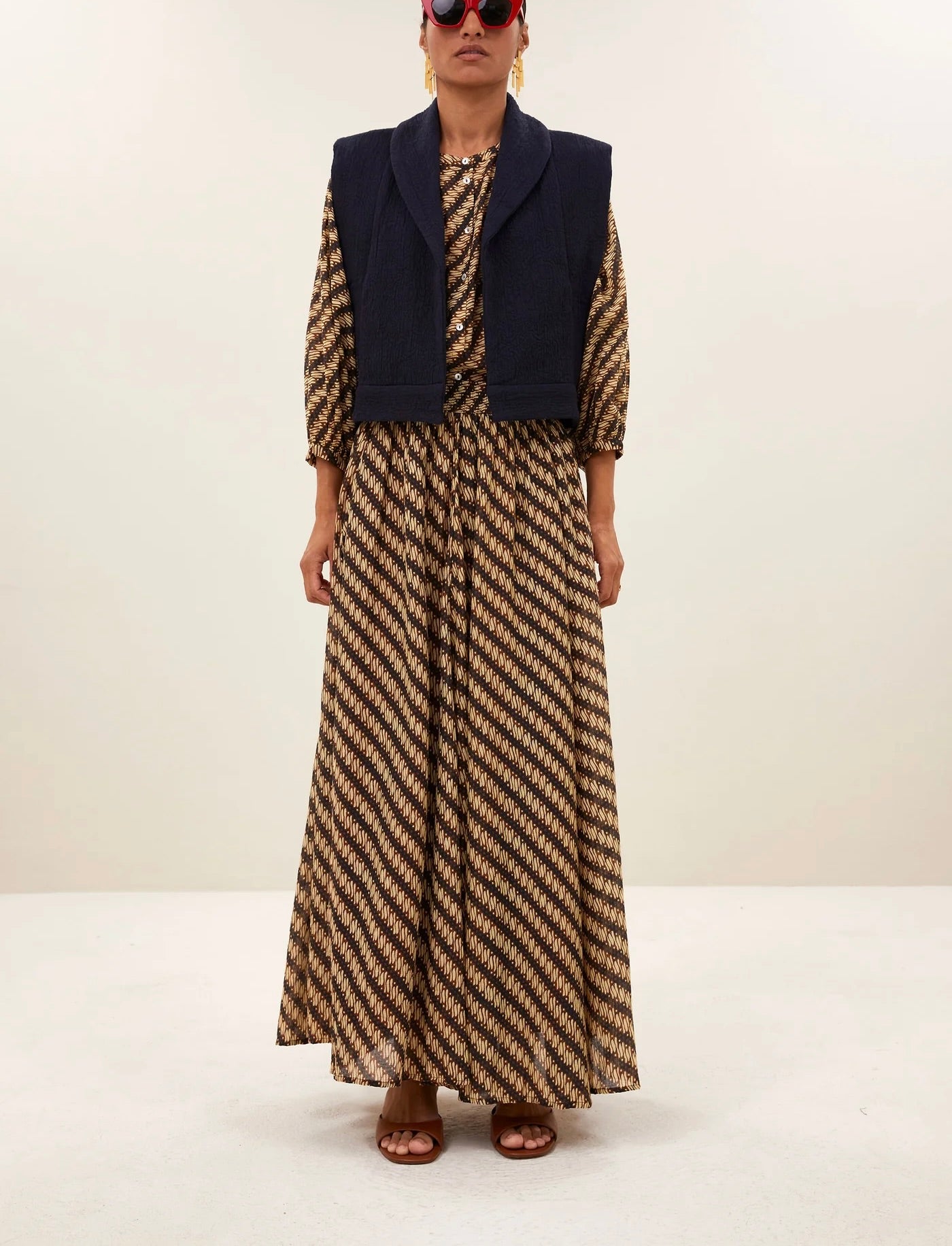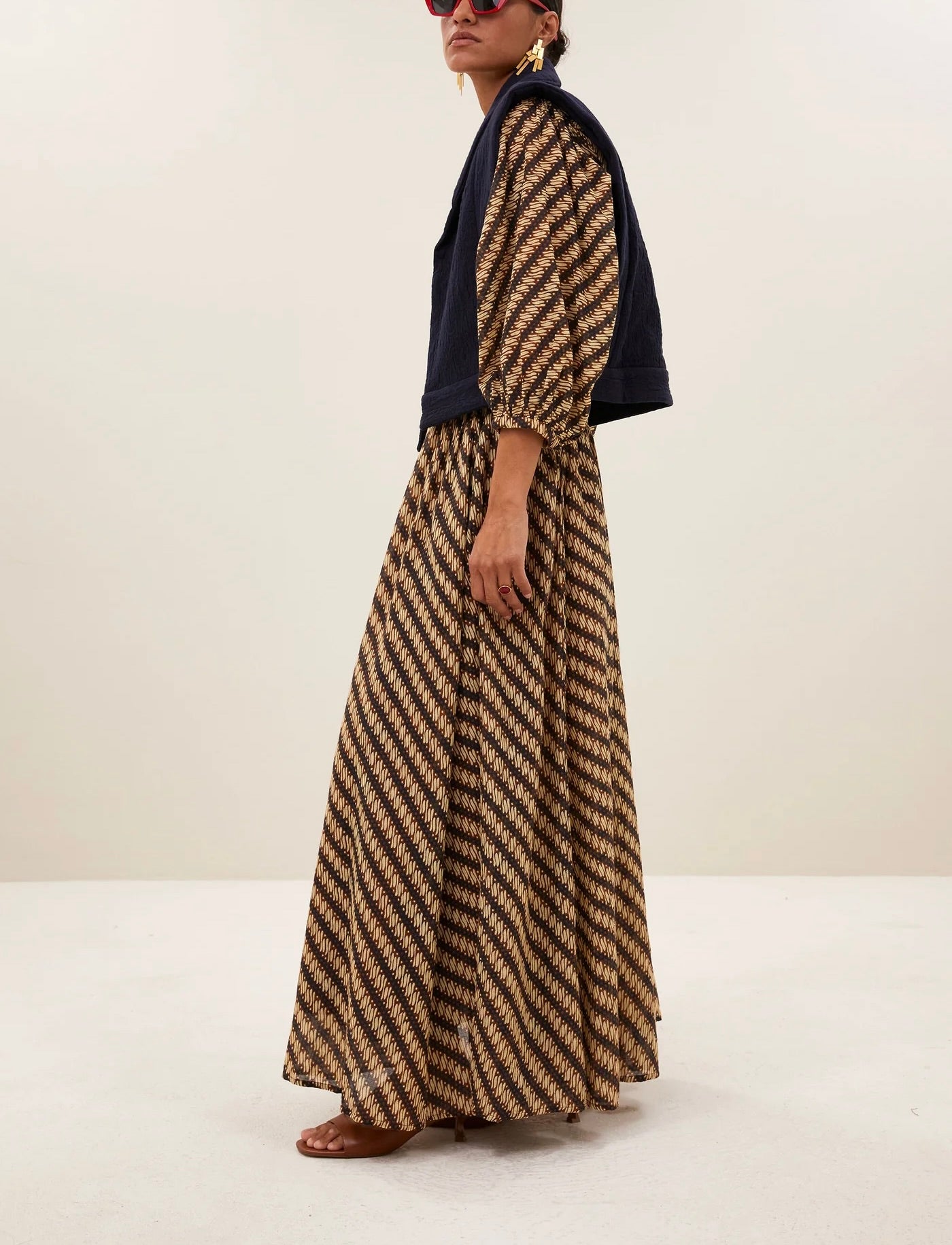 Cette longue skirt combine une coupe décontractée avec une silhouette fluide pour un confort optimal. Son motif unique en fait un choix polyvalent pour un look à la fois relax et stylé. Parfaite pour celles qui aiment une tenue sans effort et confortable