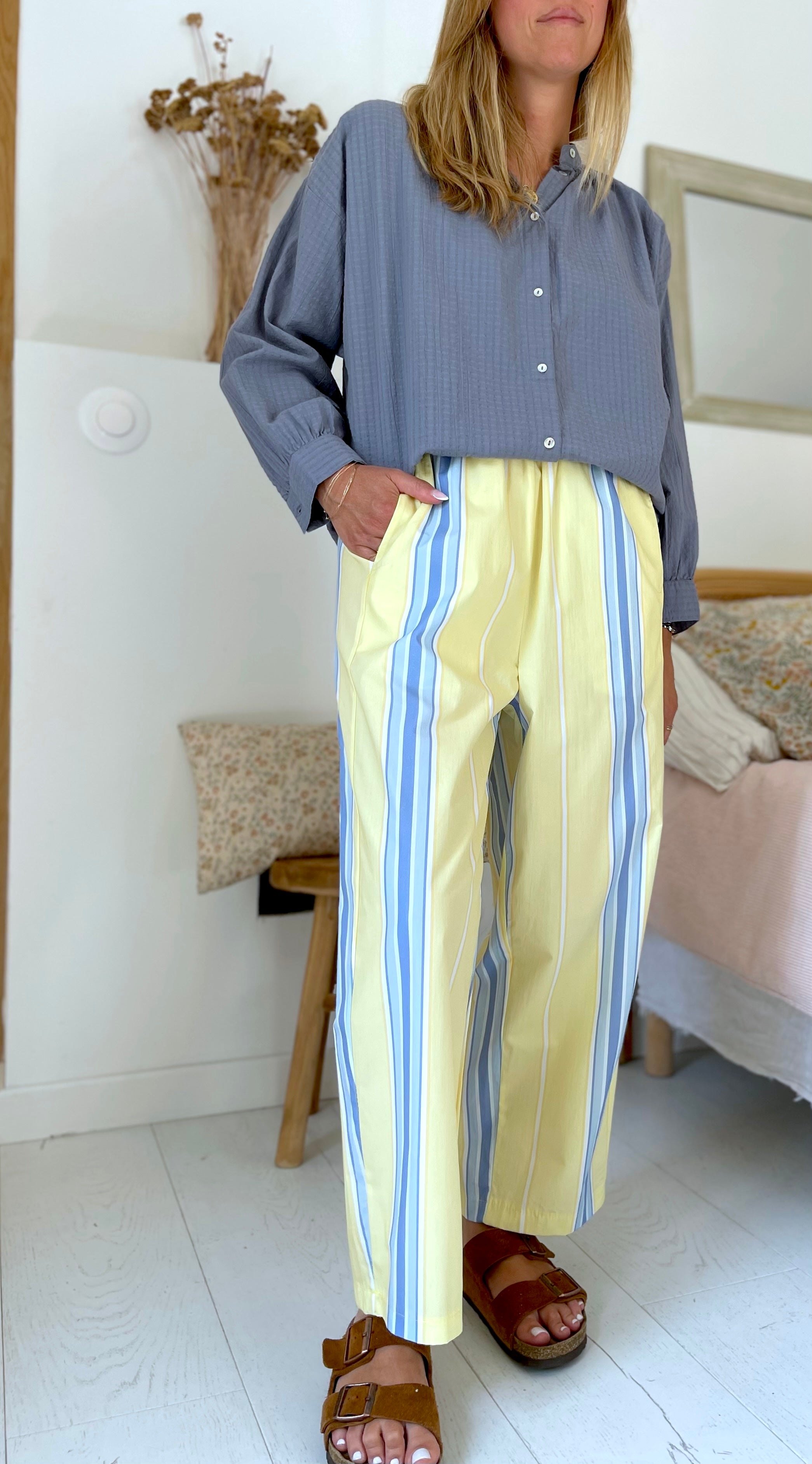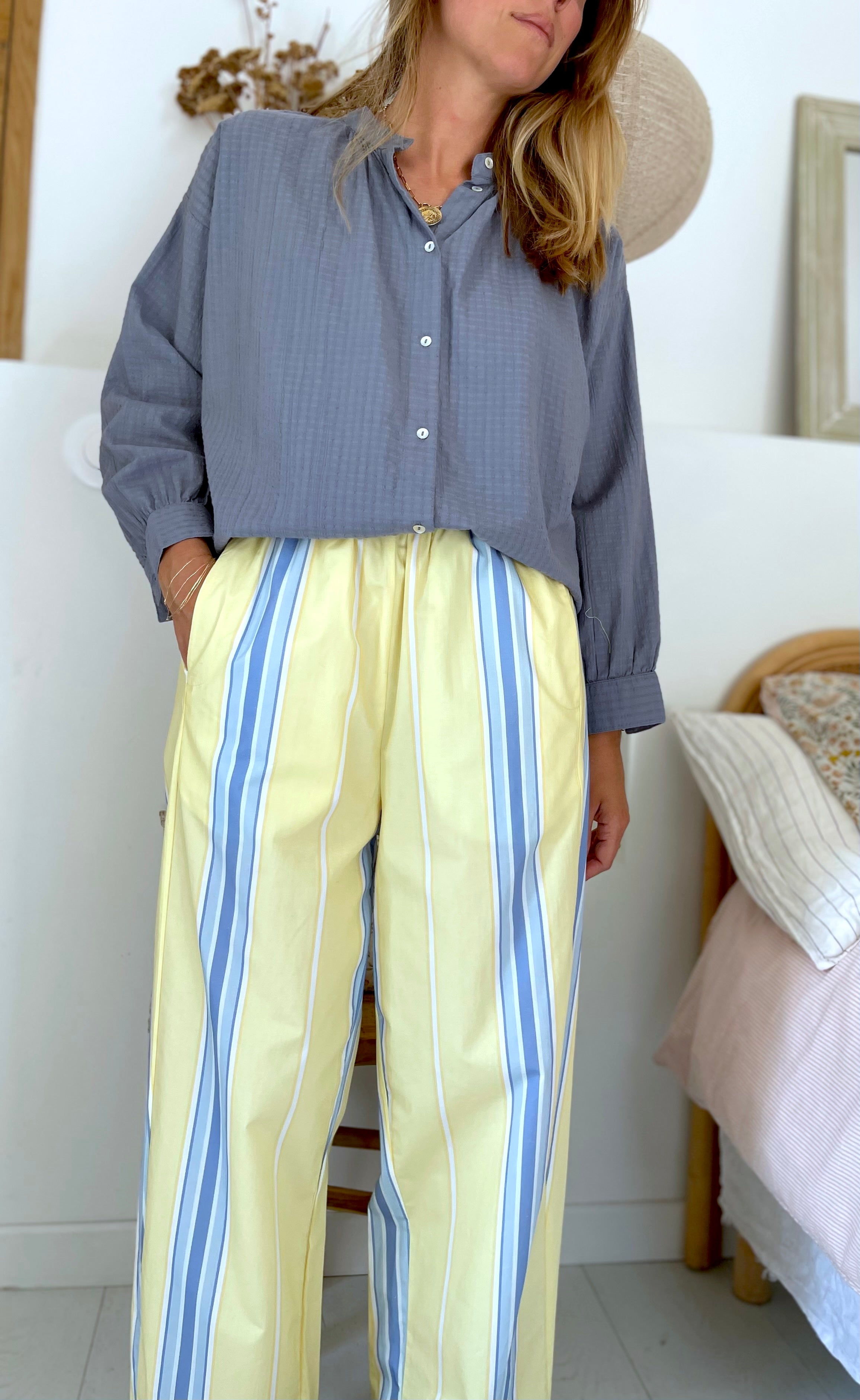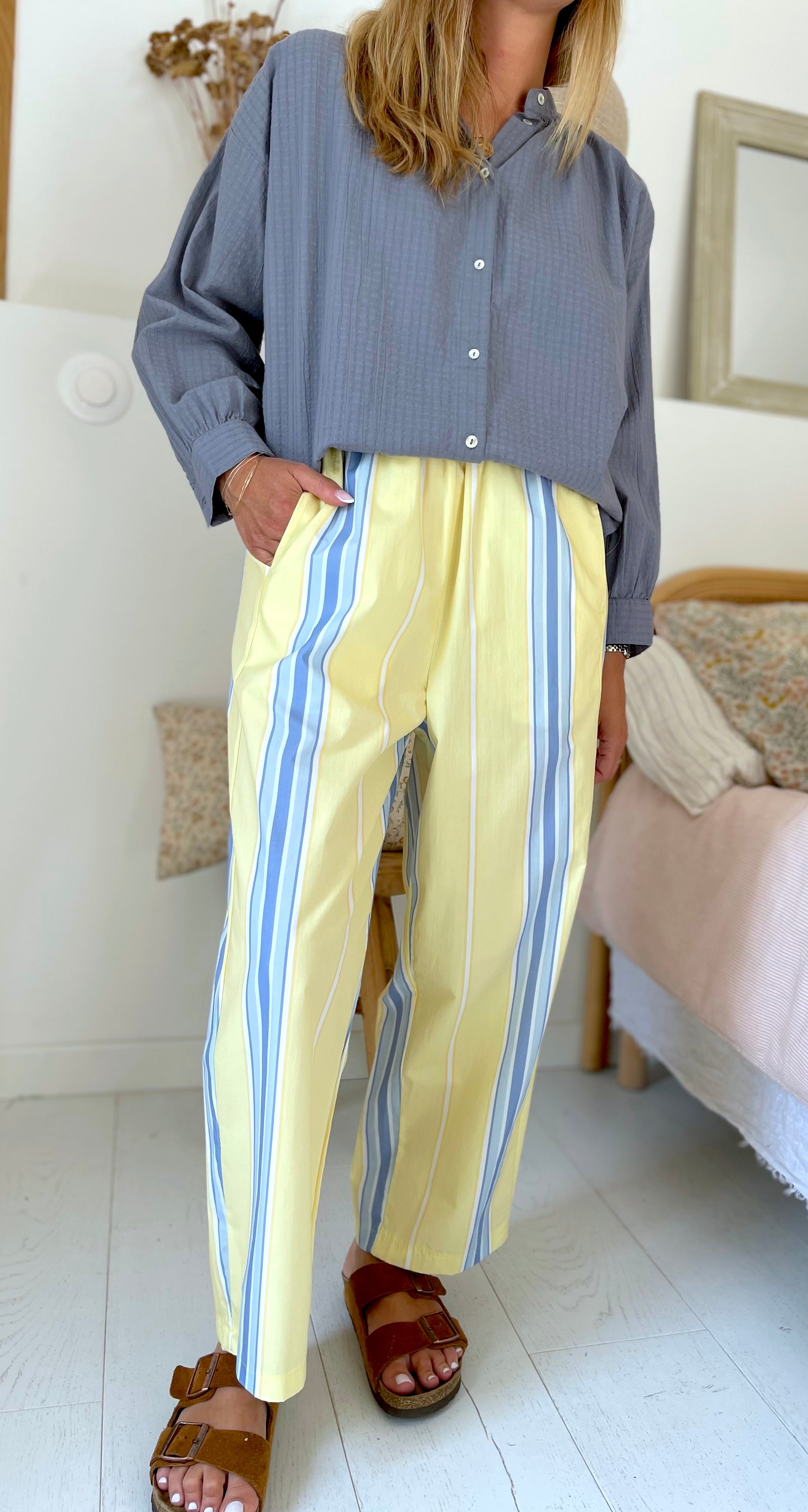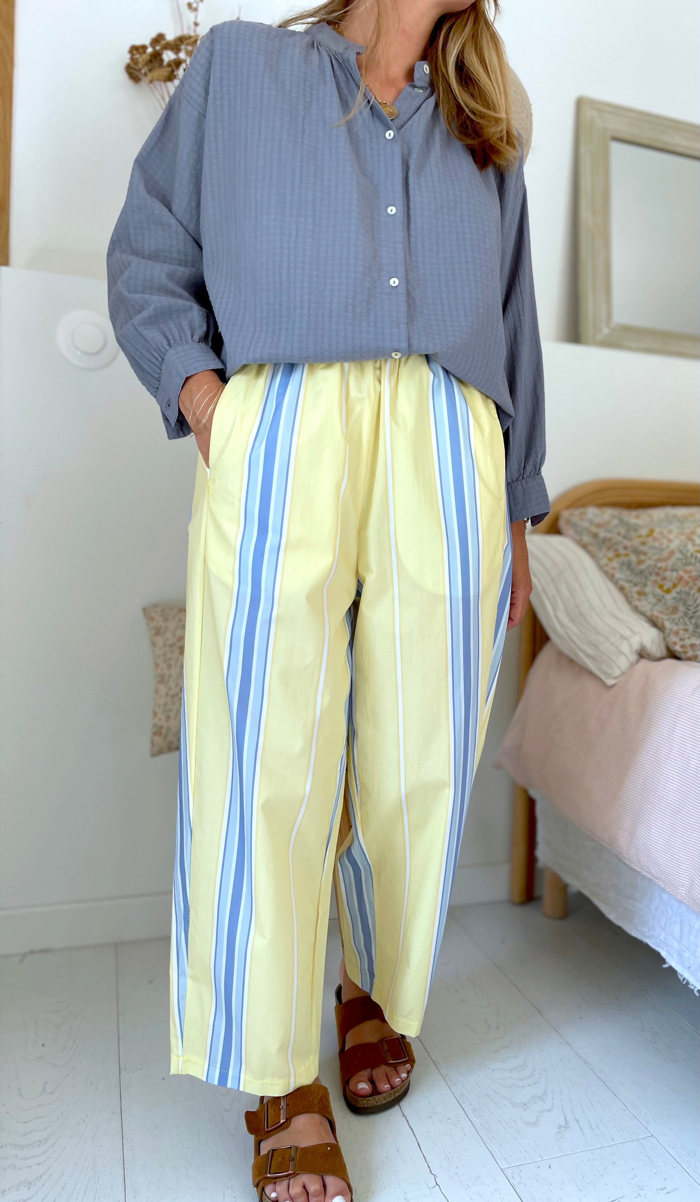 Pantalon Magic rayé jaune ciel