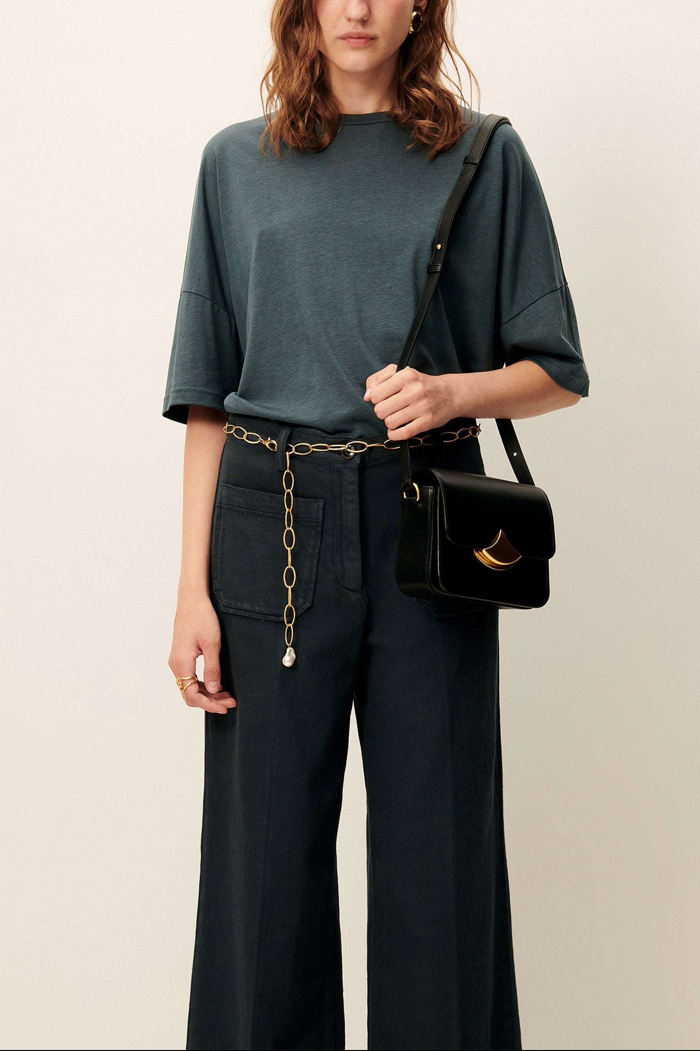 Fermeture à bouton à la ceinture et fermeture à glissière cachée