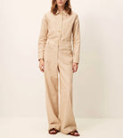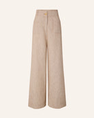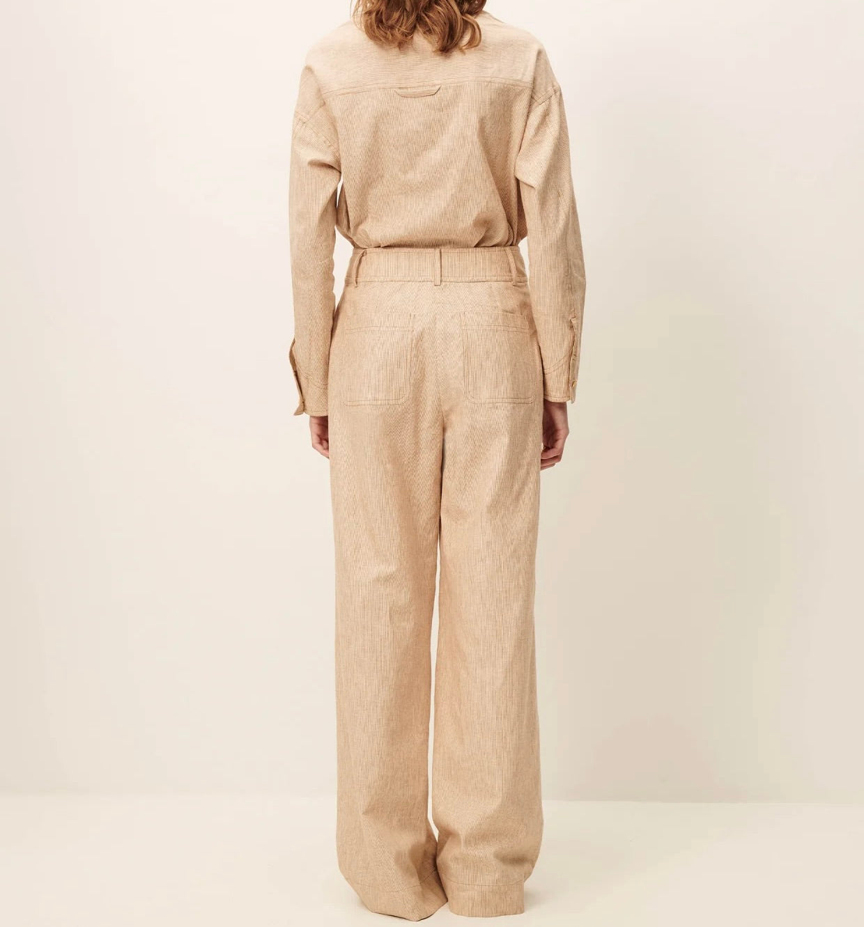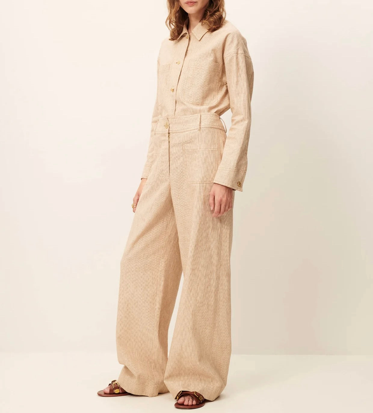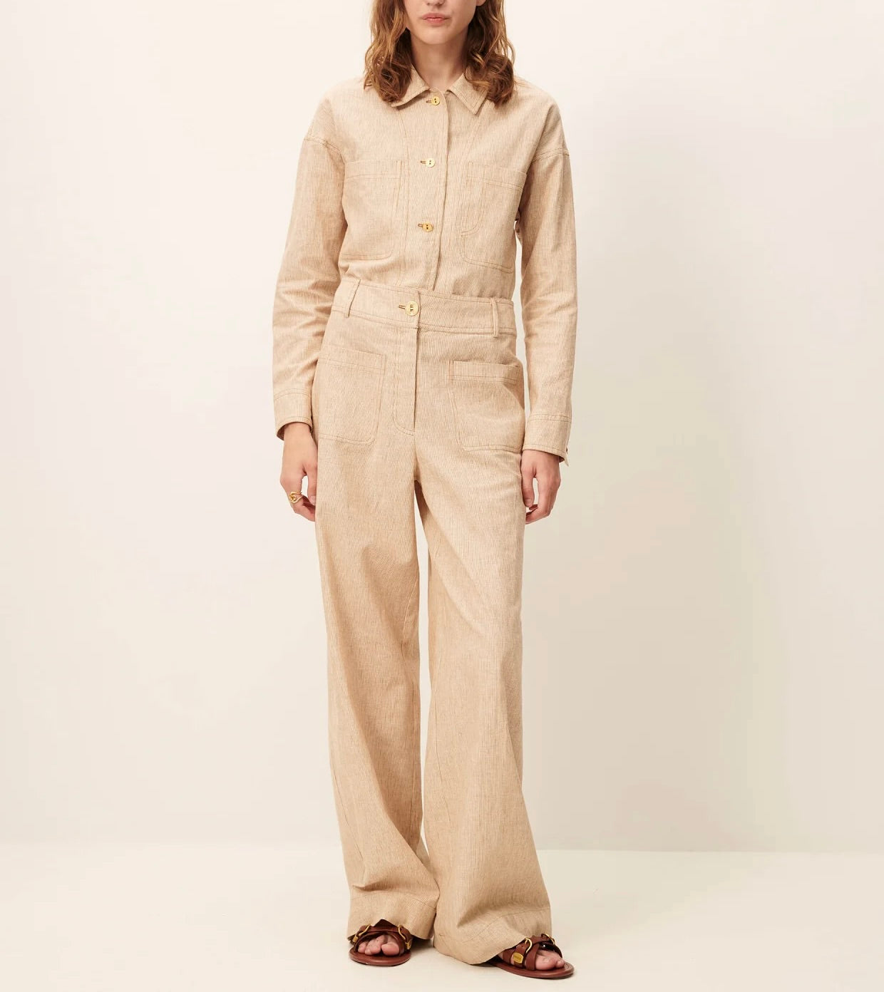 Pantalon droit ample, taille haute, en toile rustique apprêté en Espagne, à mini rayures bicolores exclusives Sessùn