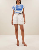 Le leon twill short est un short décontracté avec une taille haute et une coupe confortable et ample. Grâce à sa fermeture pratique par zip et bouton ainsi qu'à ses poches latérales, il allie style et fonctionnalité. Parfait pour les journées détente où vous souhaitez afficher un look soigné sans effort