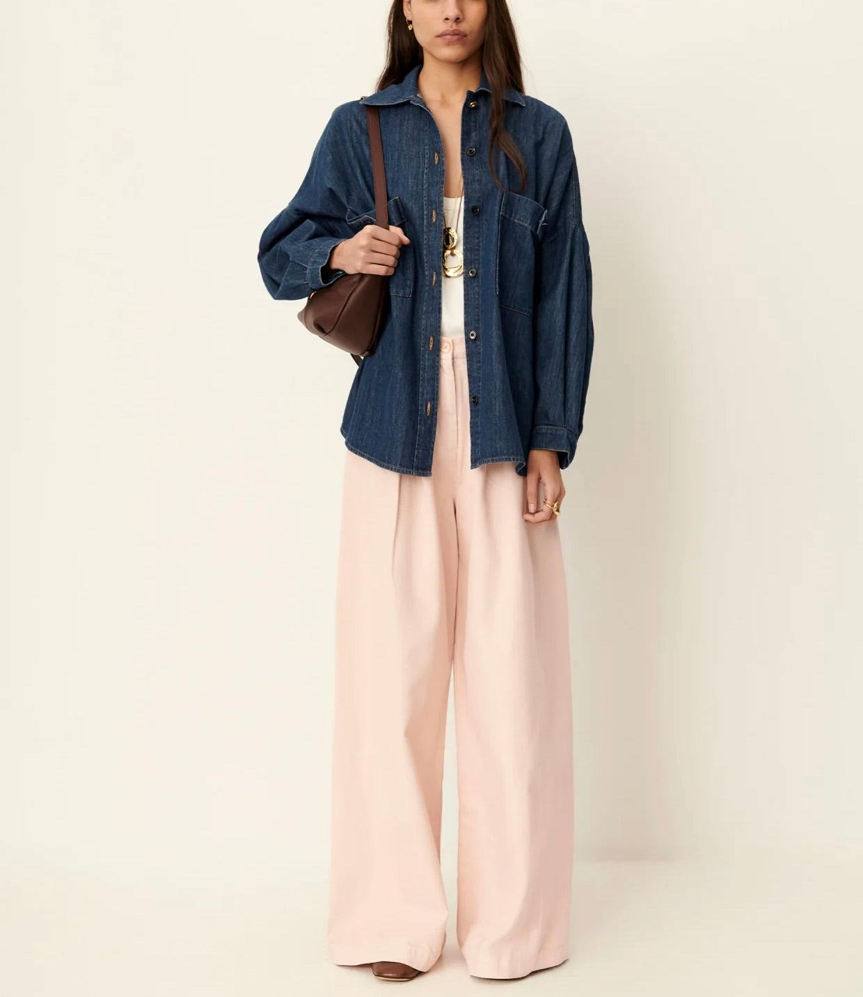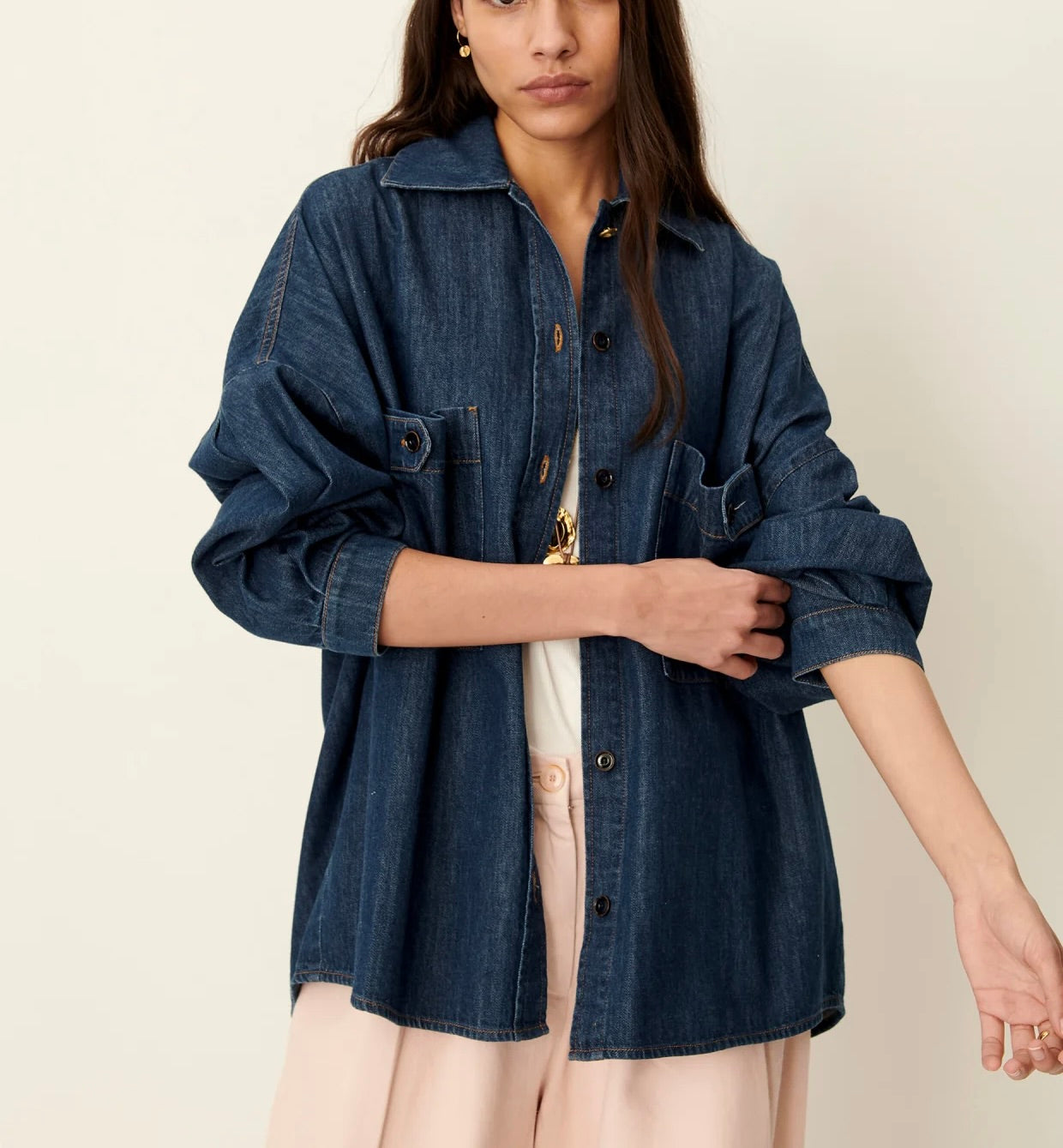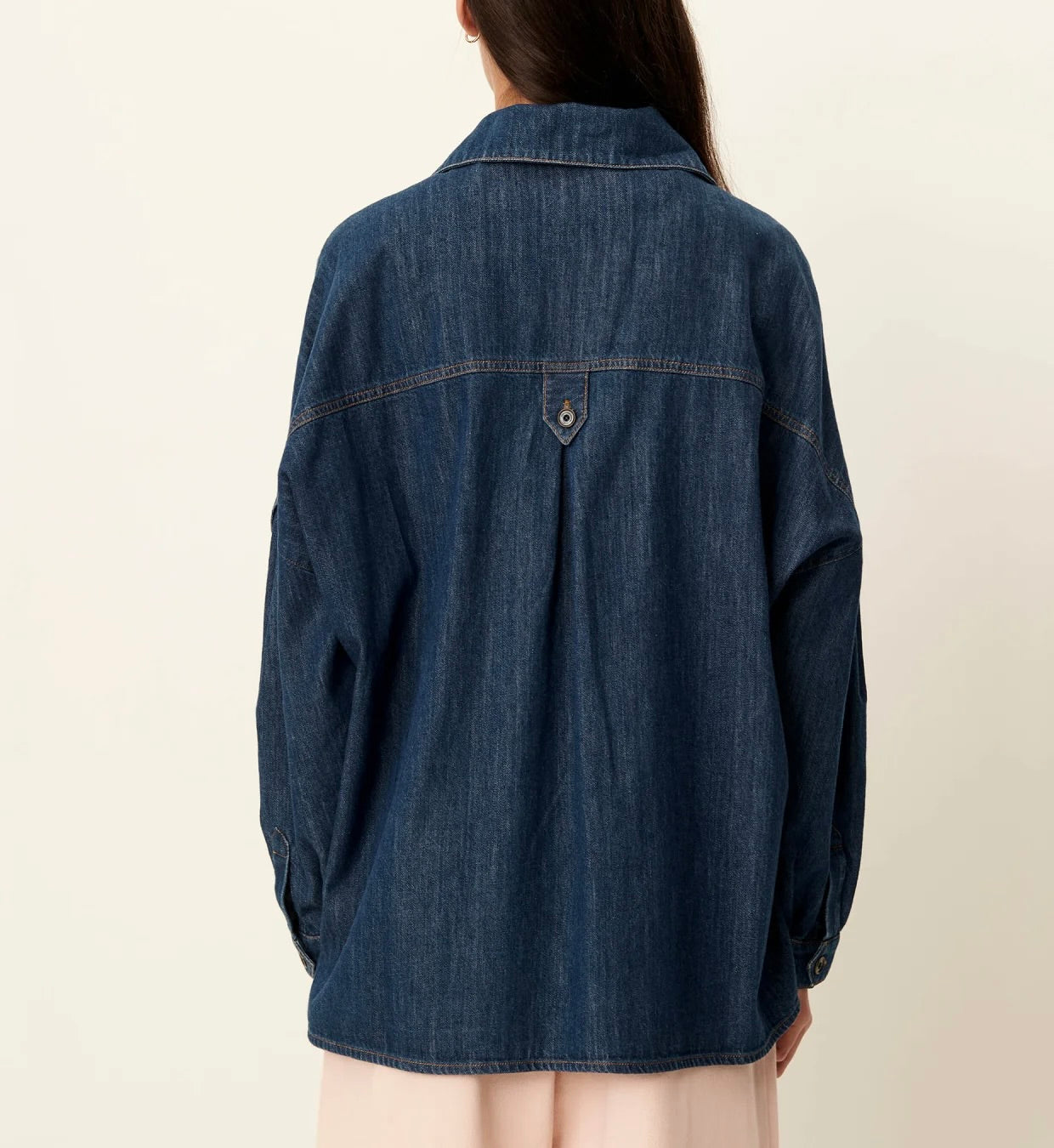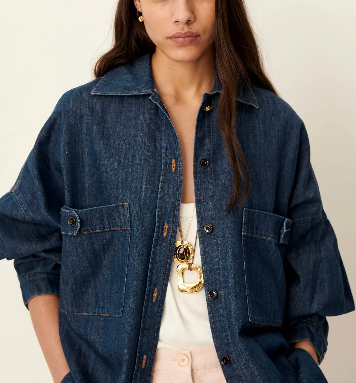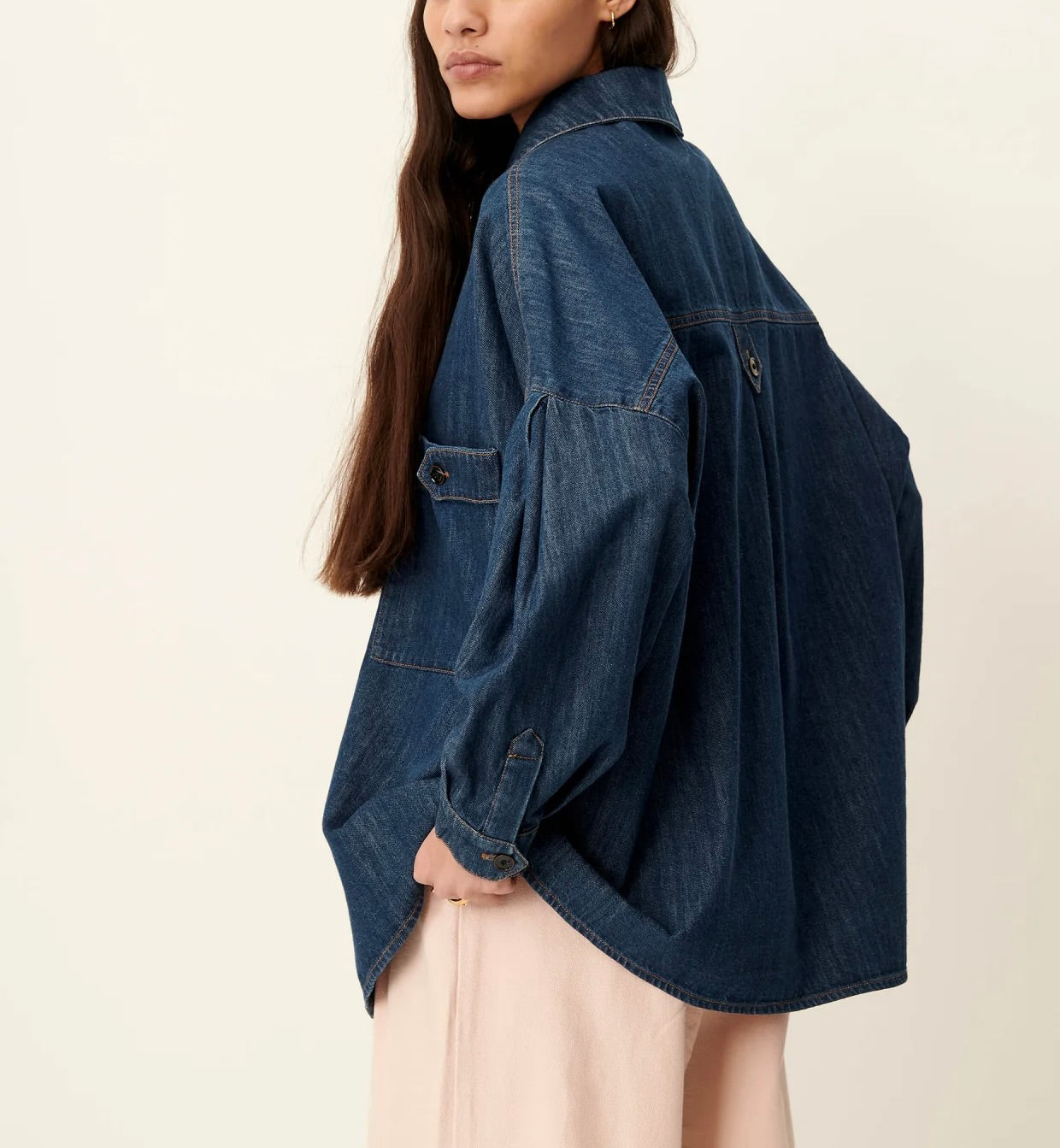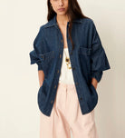 Surchemise ample à poches plaquées esprit worker en denim indigo souple et stonewashé