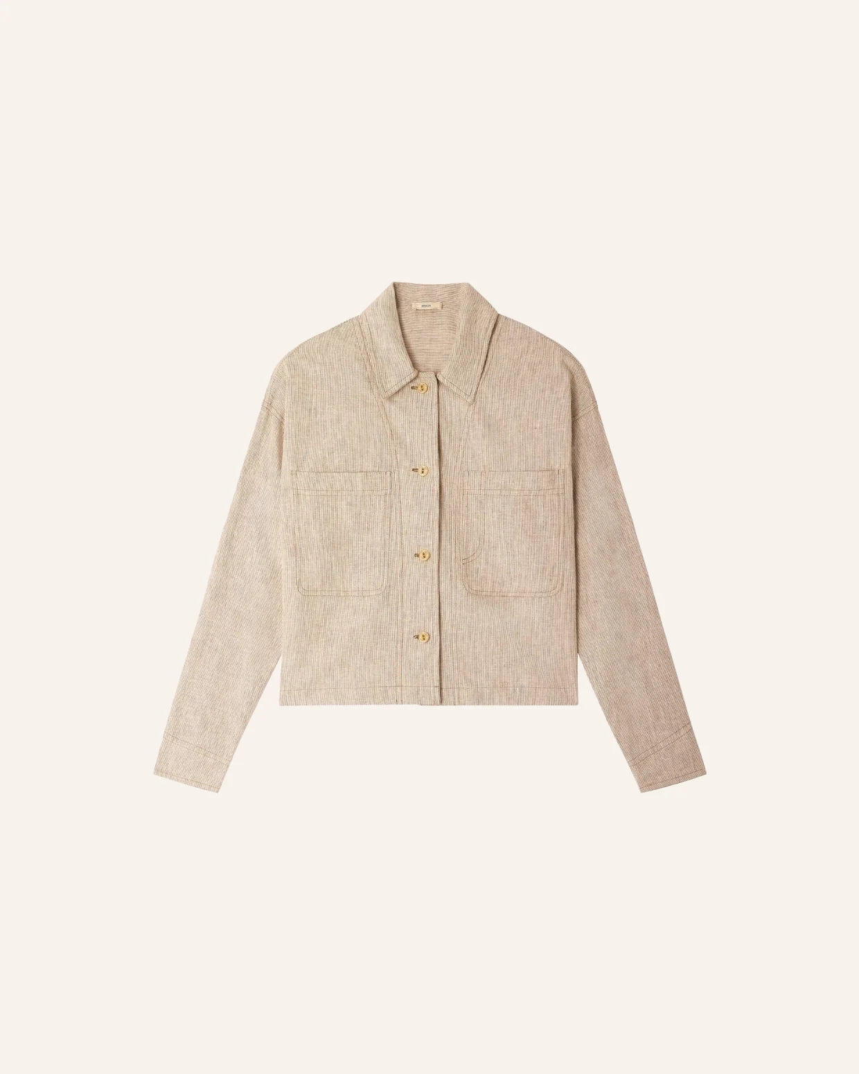 Surchemise à poches plaquées en toile de lin et coton à fils flammés, tissée en Espagne, rayures bicolores exclusives Sessùn