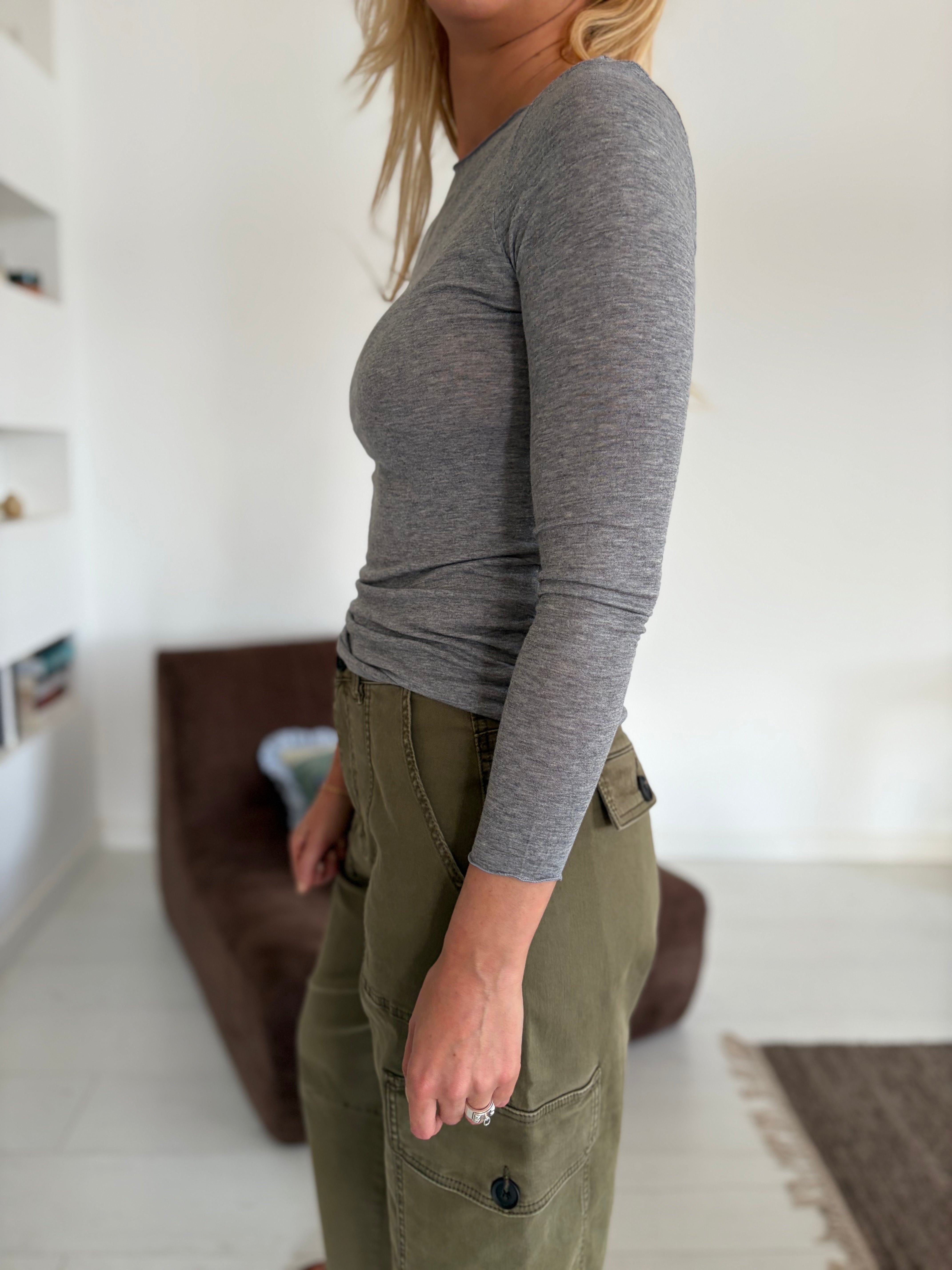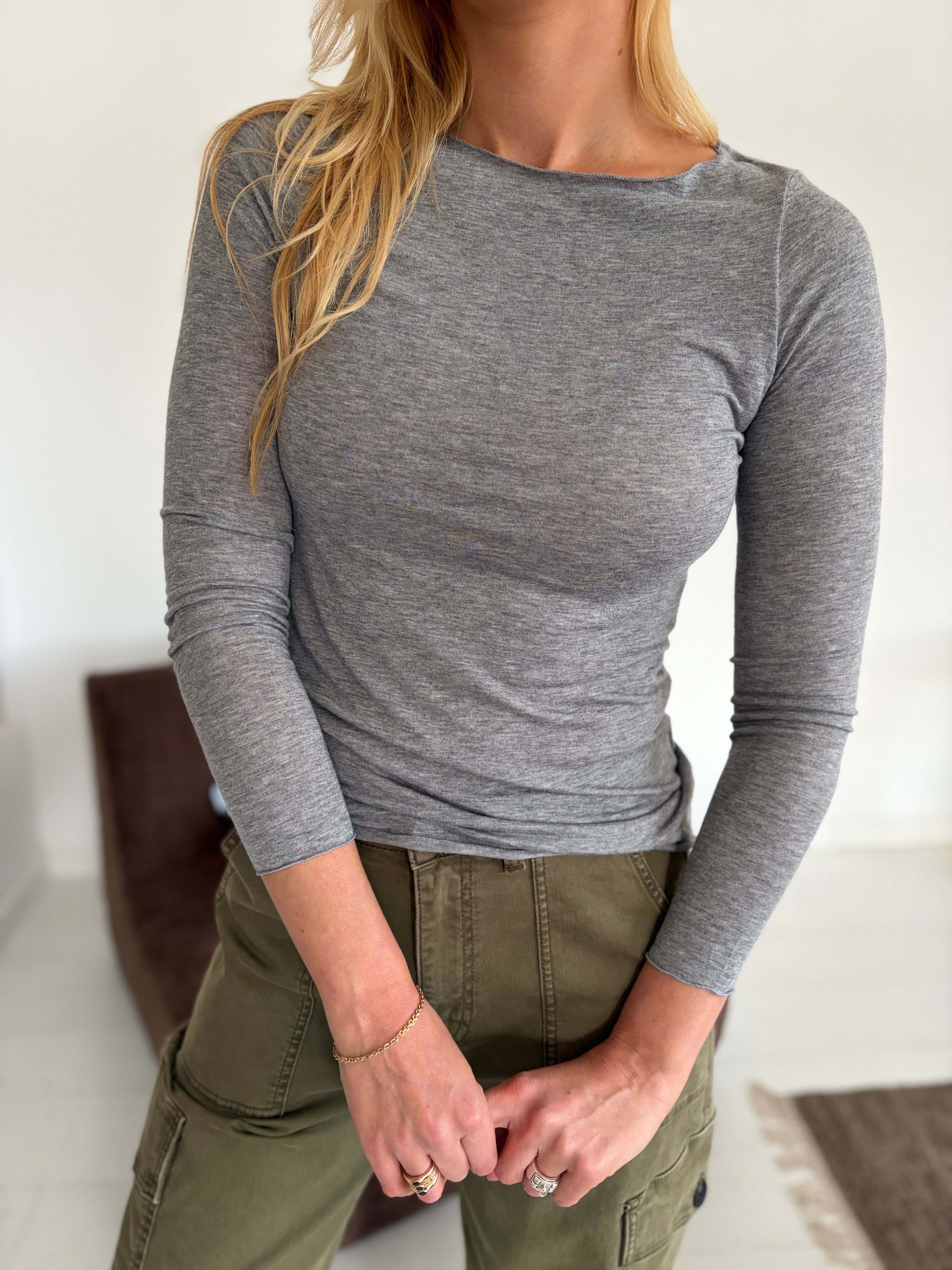 Le haut Lima présente une encolure bateau et des manches longues