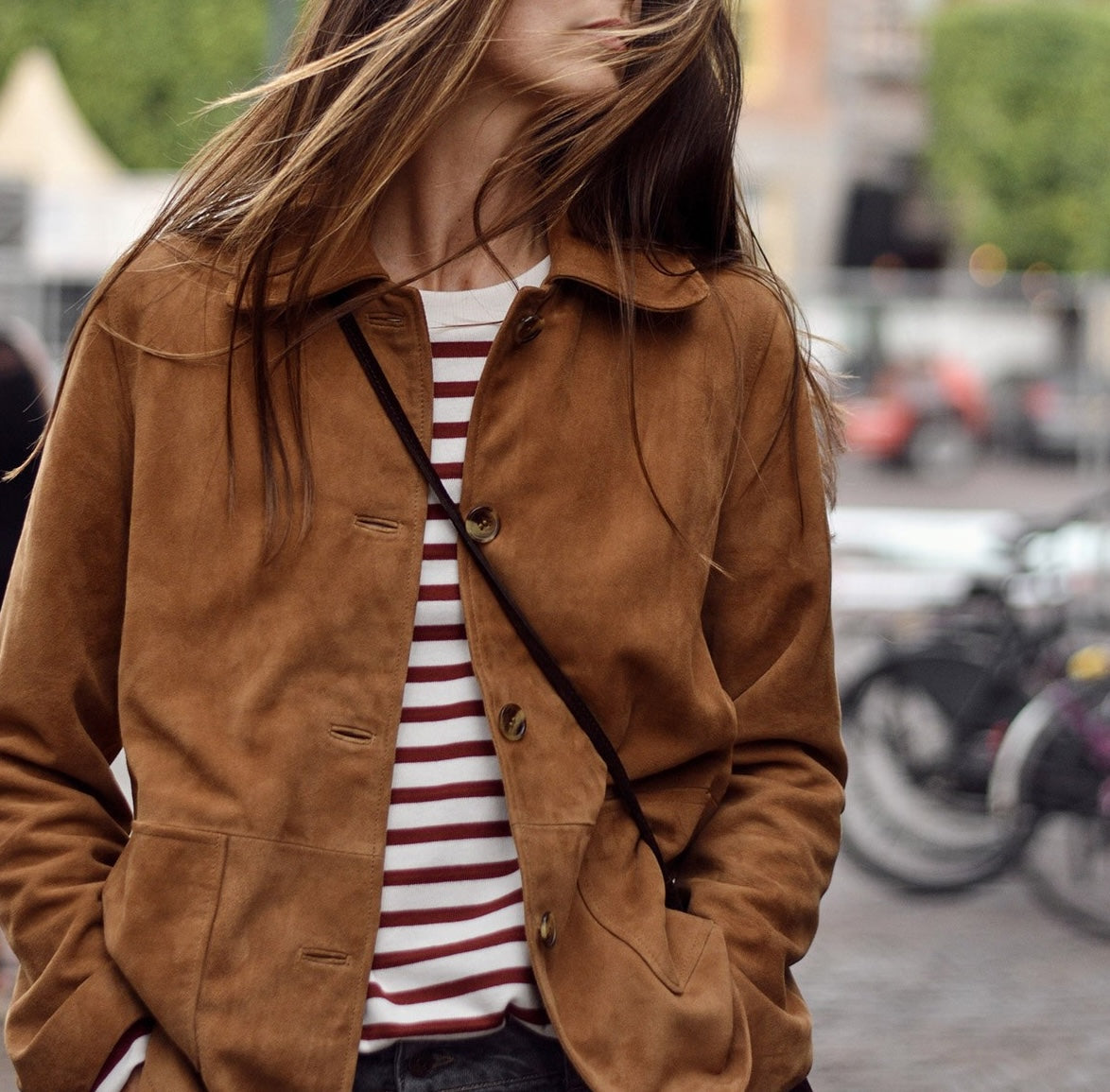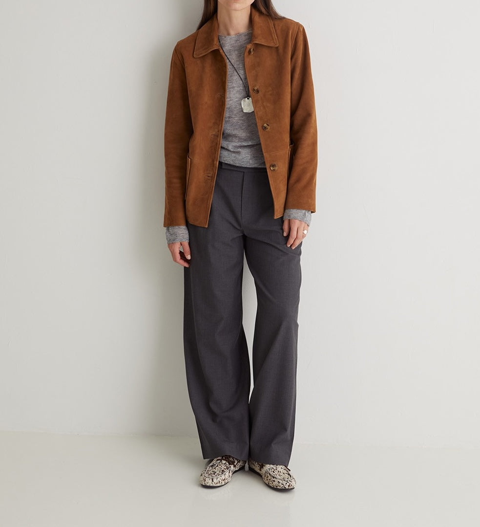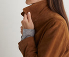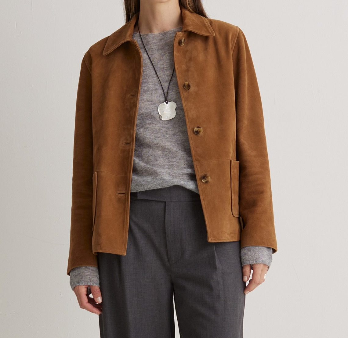 100 % cuir. Finition en daim. Col chemise. Manches longues