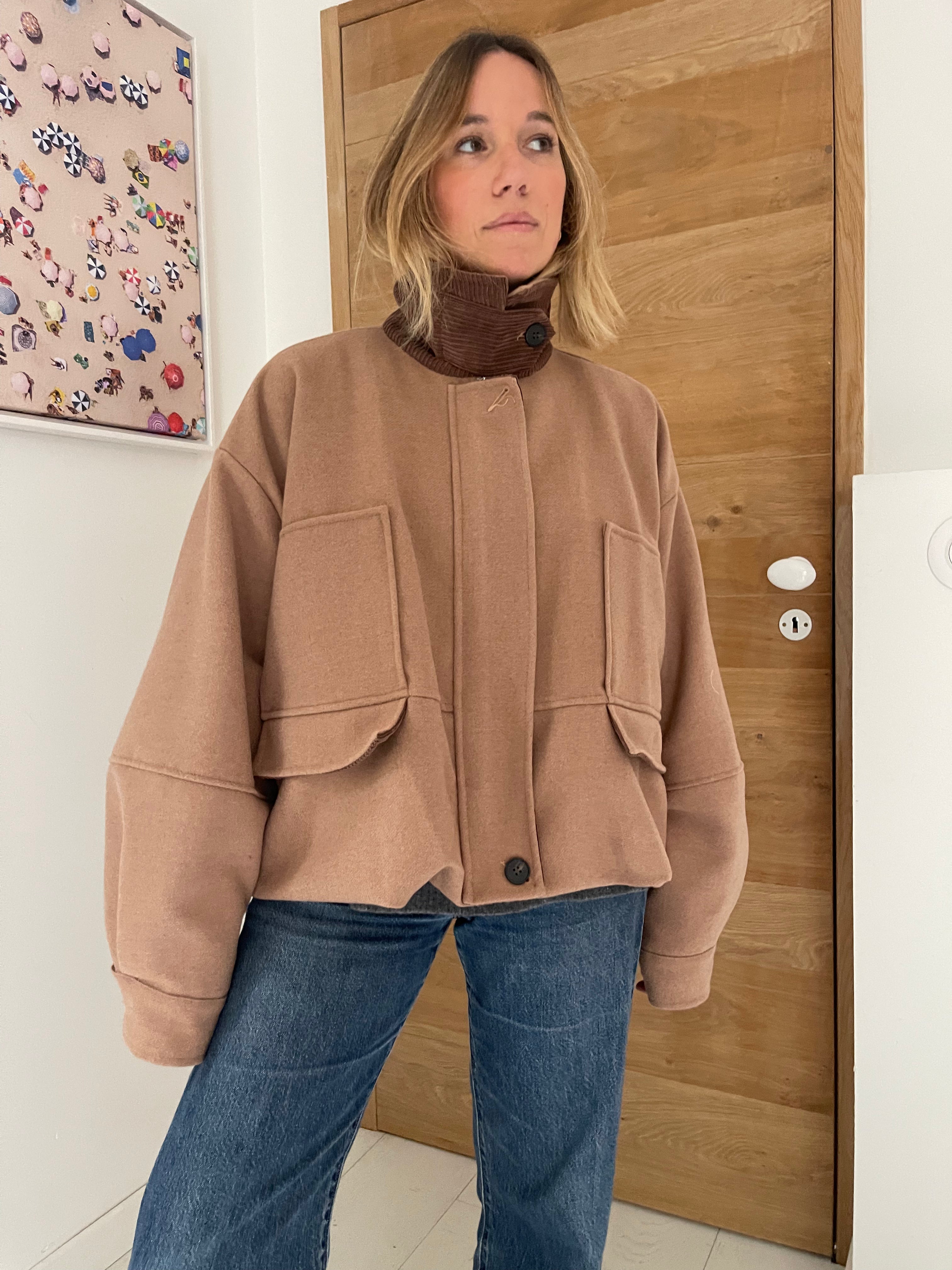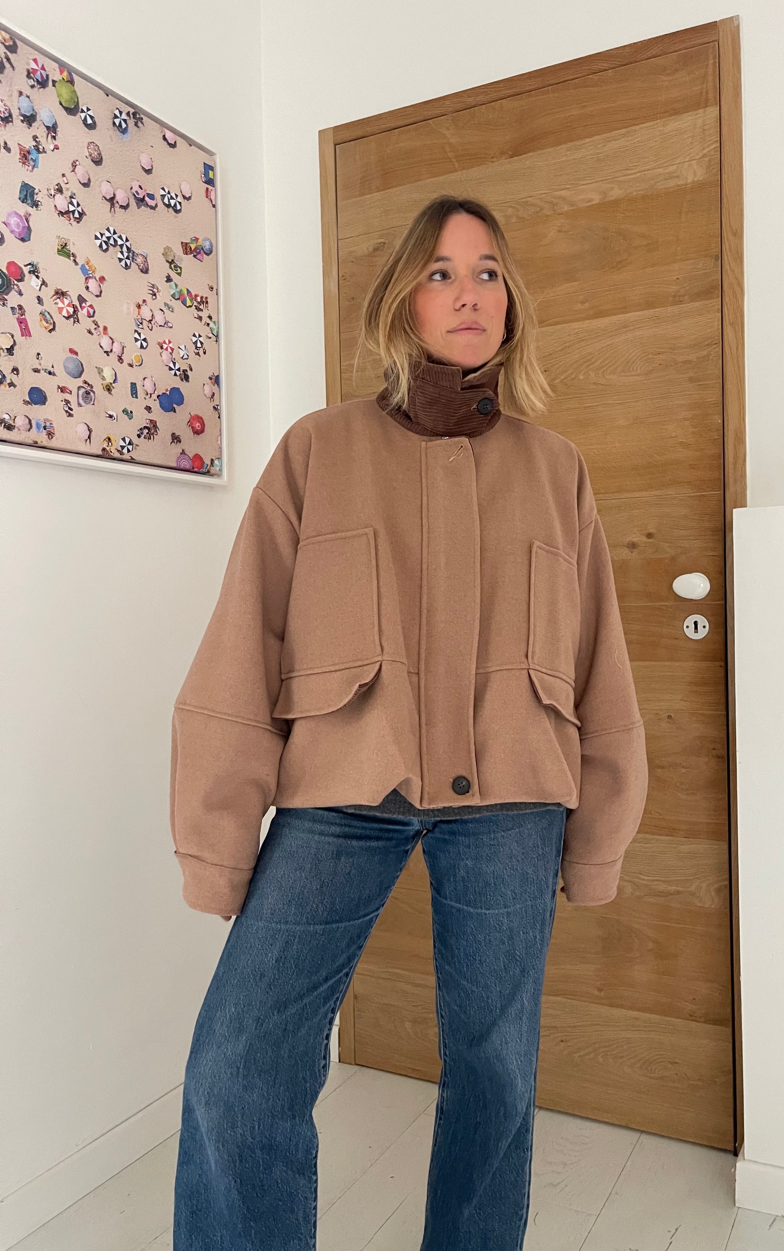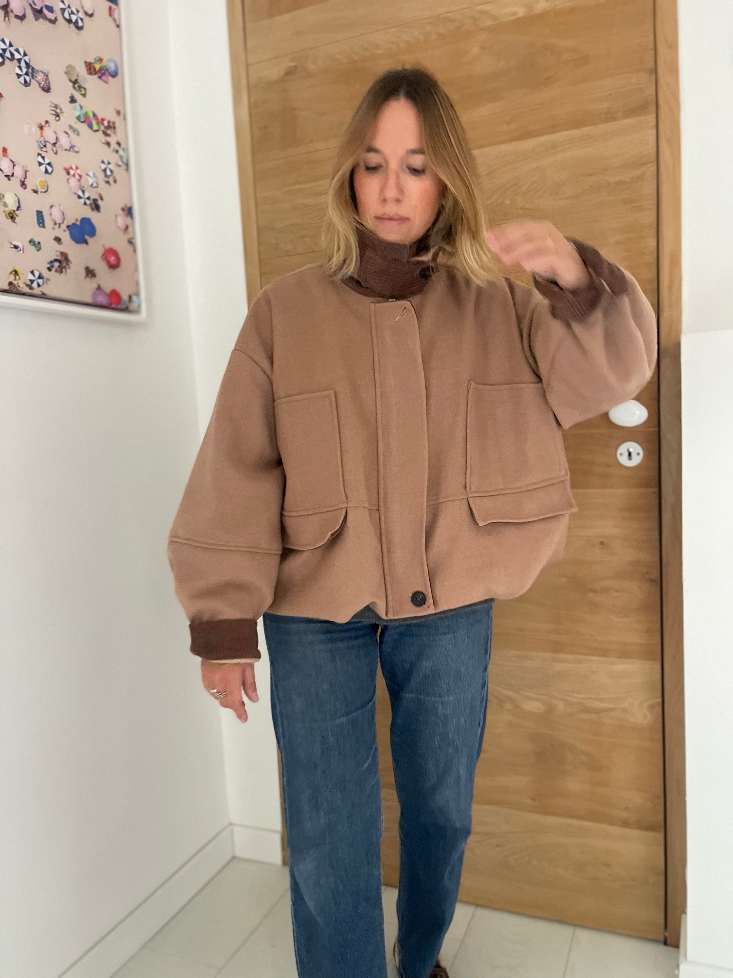 Détails velours côtelés sur le col, les manches et rabats des poches