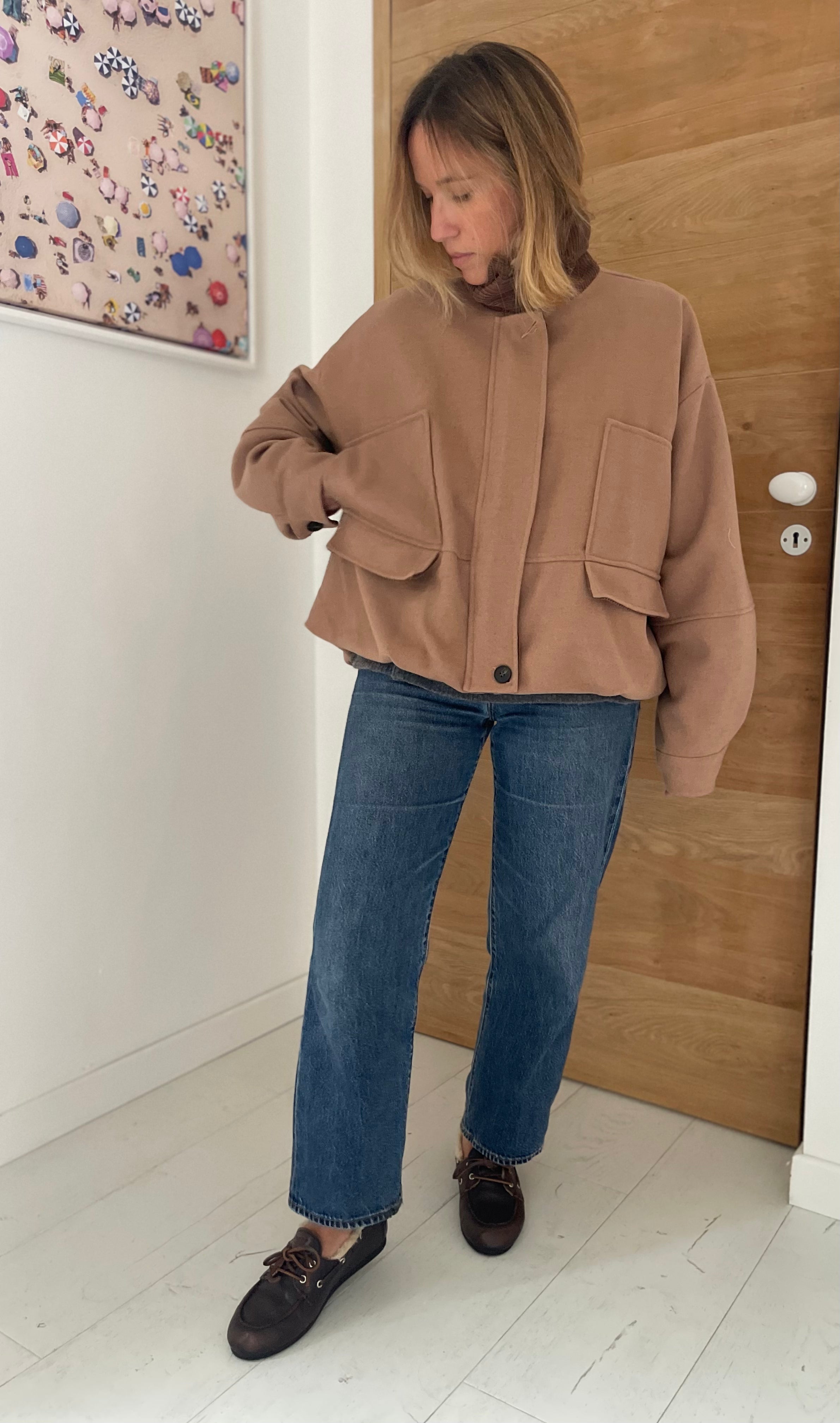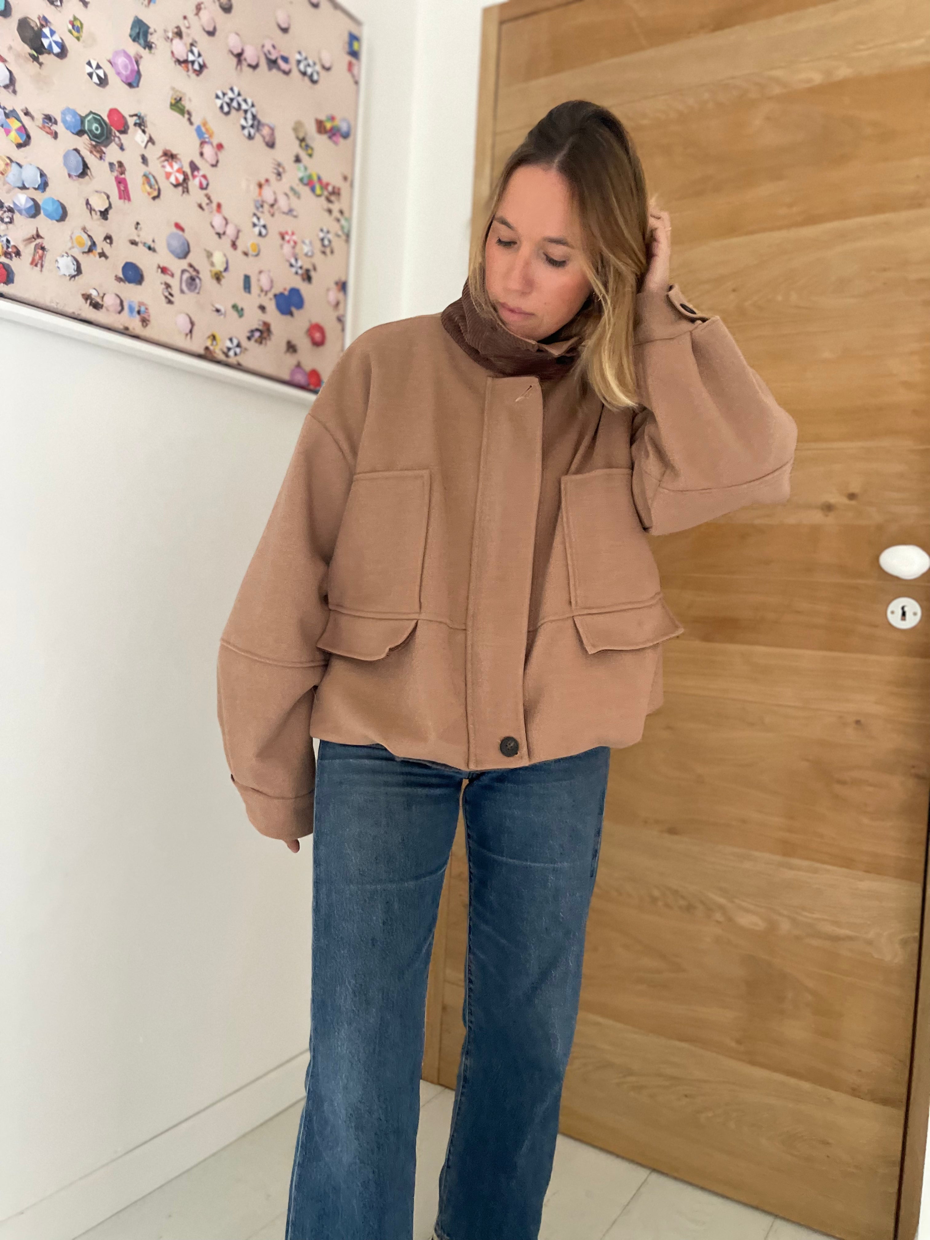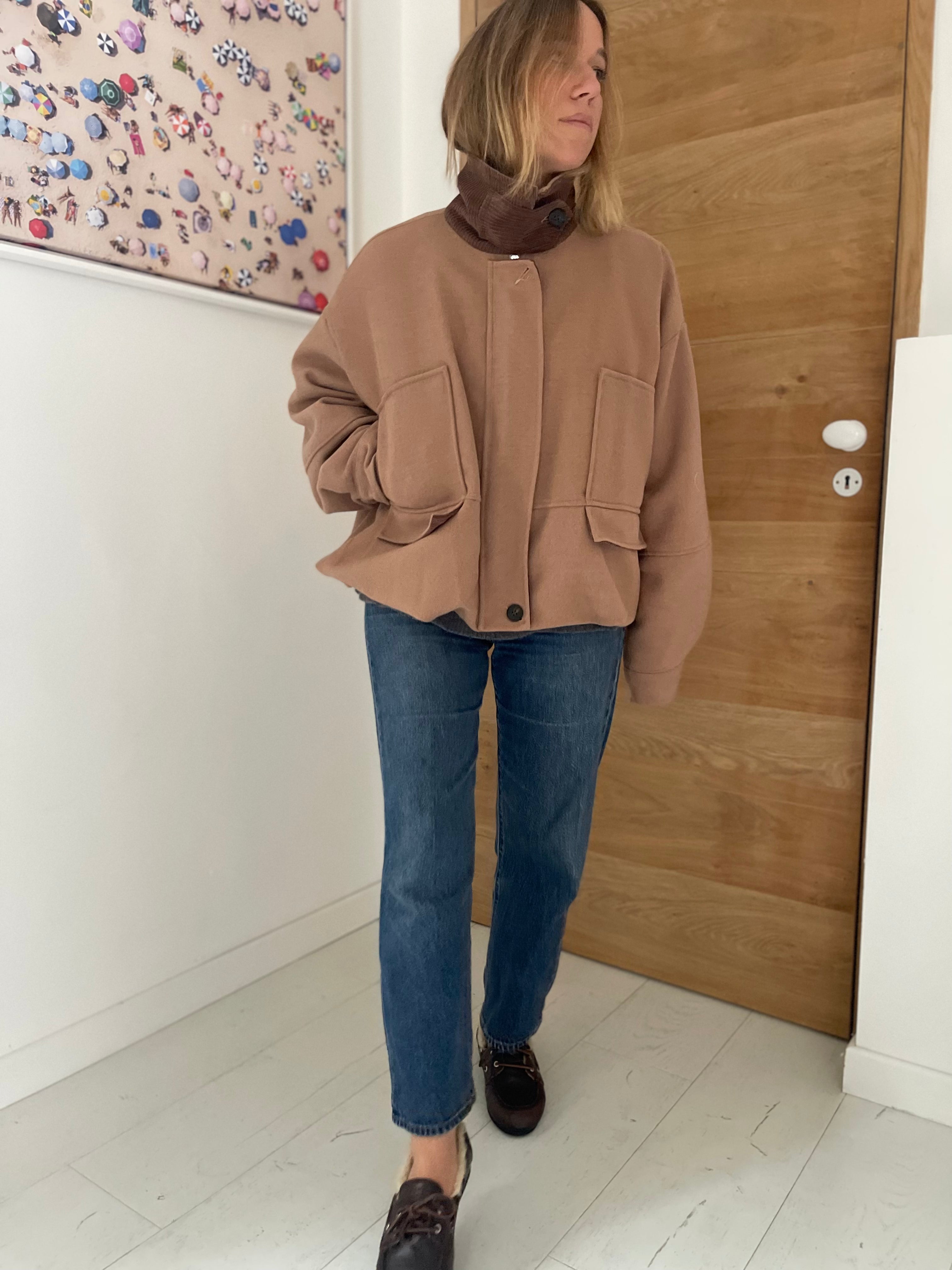 Détails velours côtelés sur le col, les manches et rabats des poches