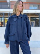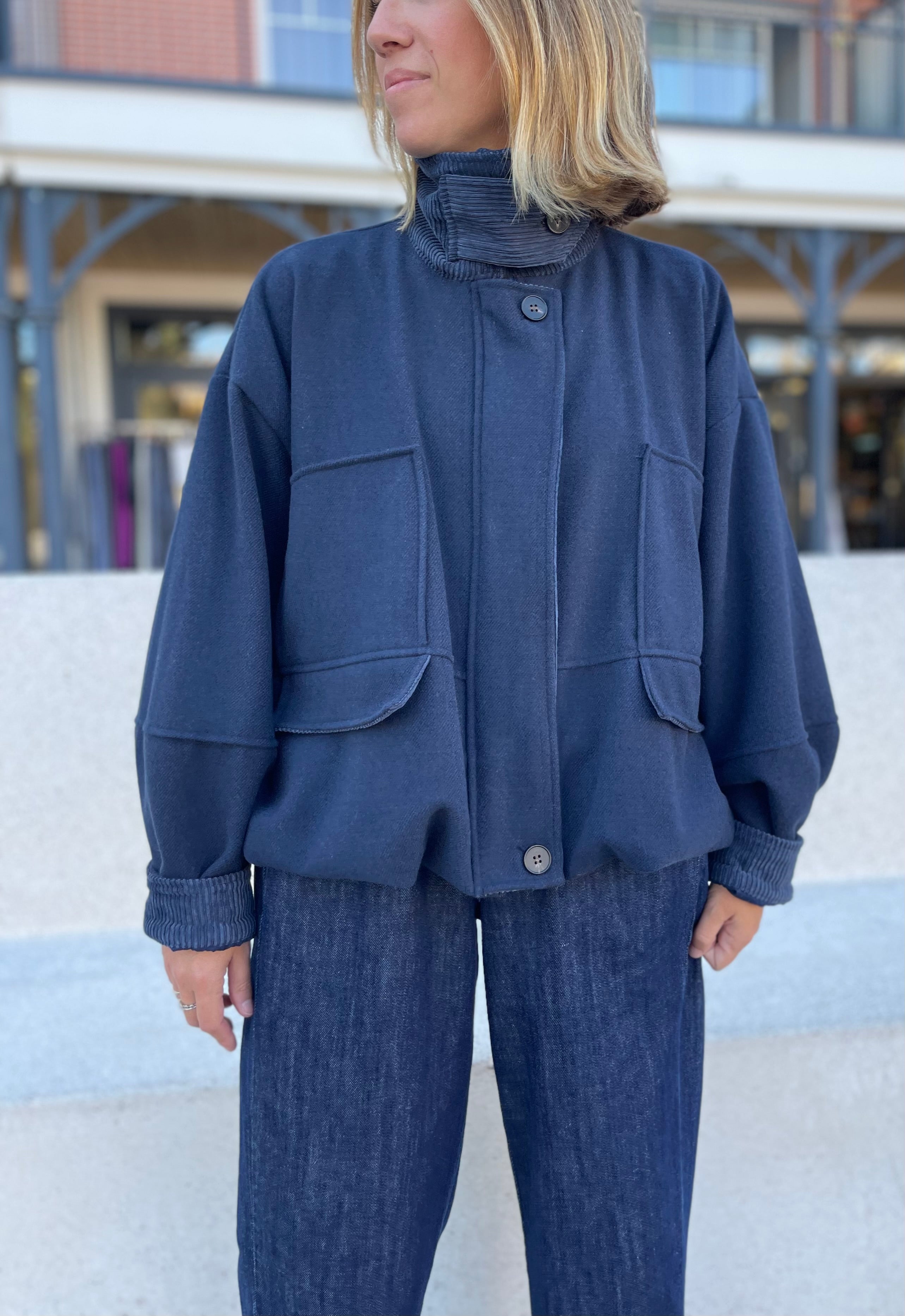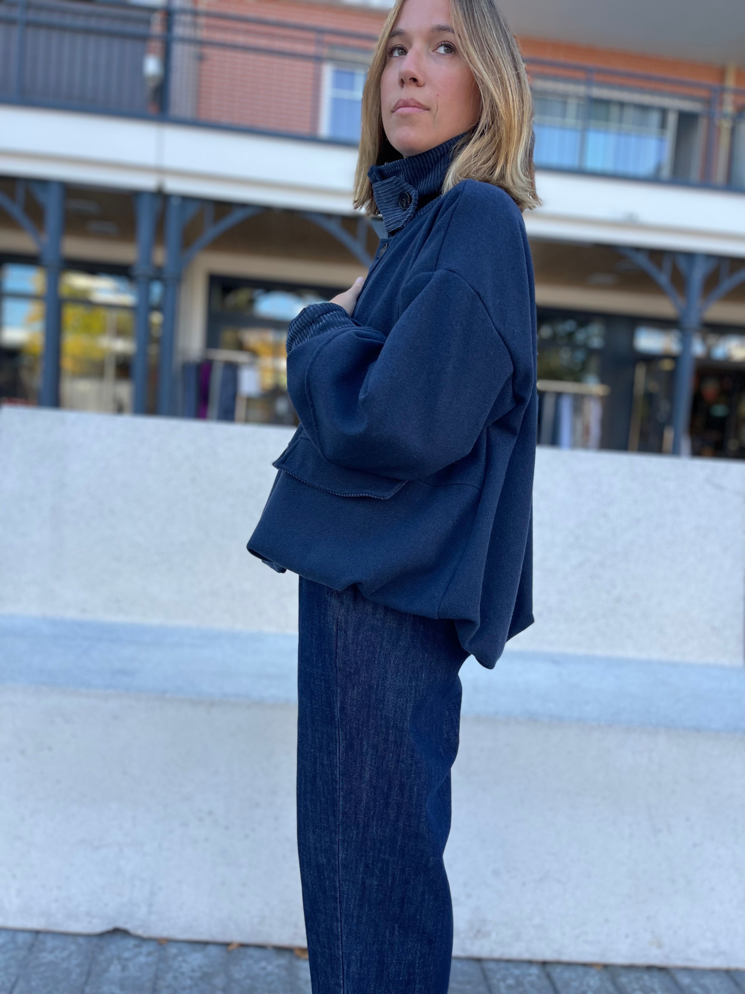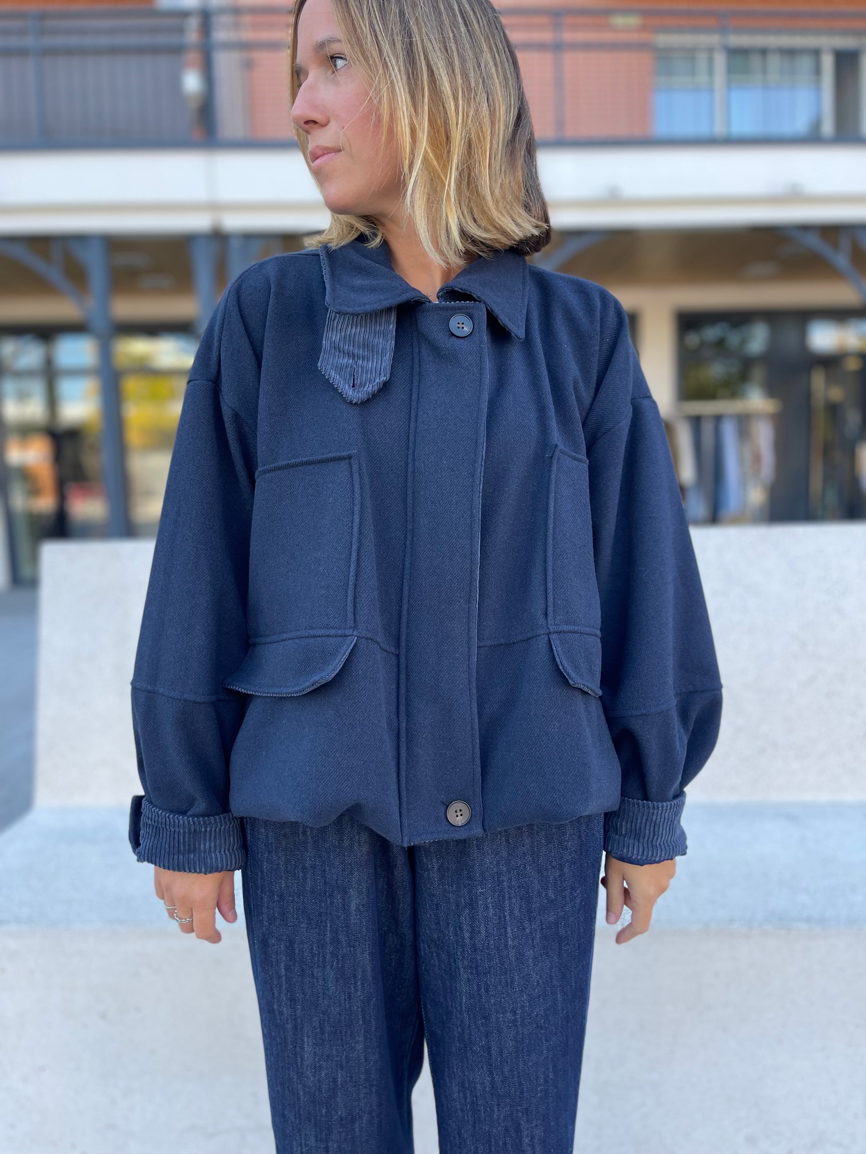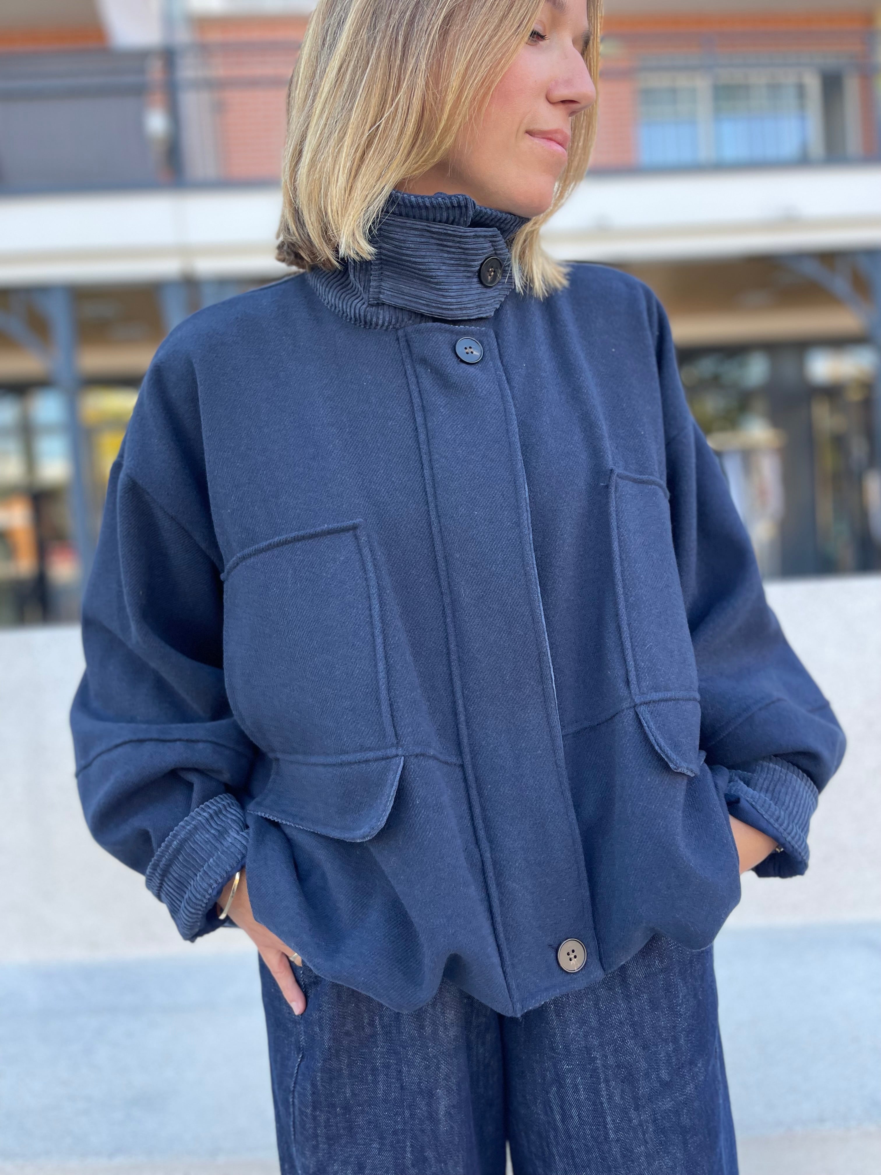 Détails velours côtelés sur le col, les manches et rabats des poches