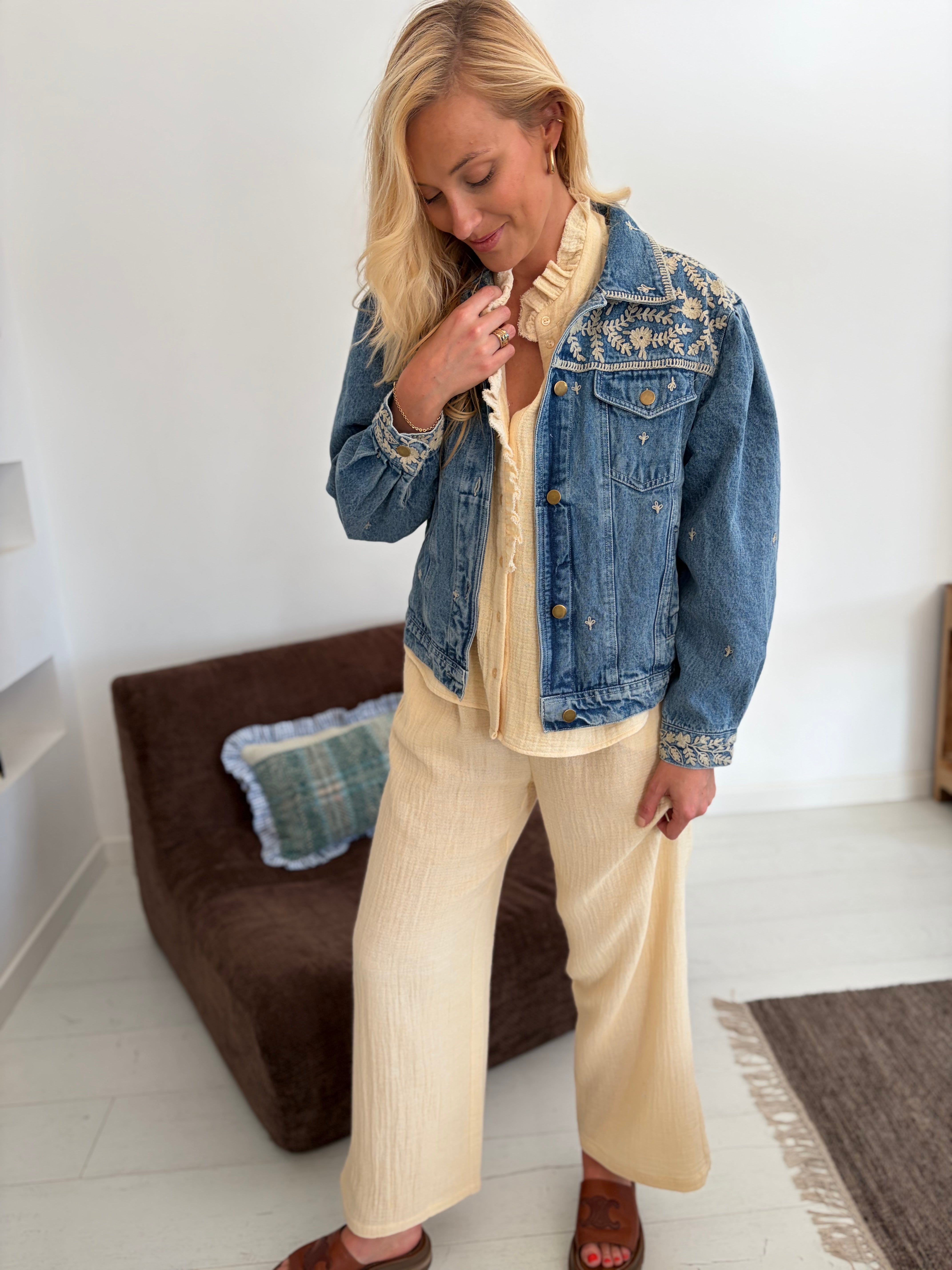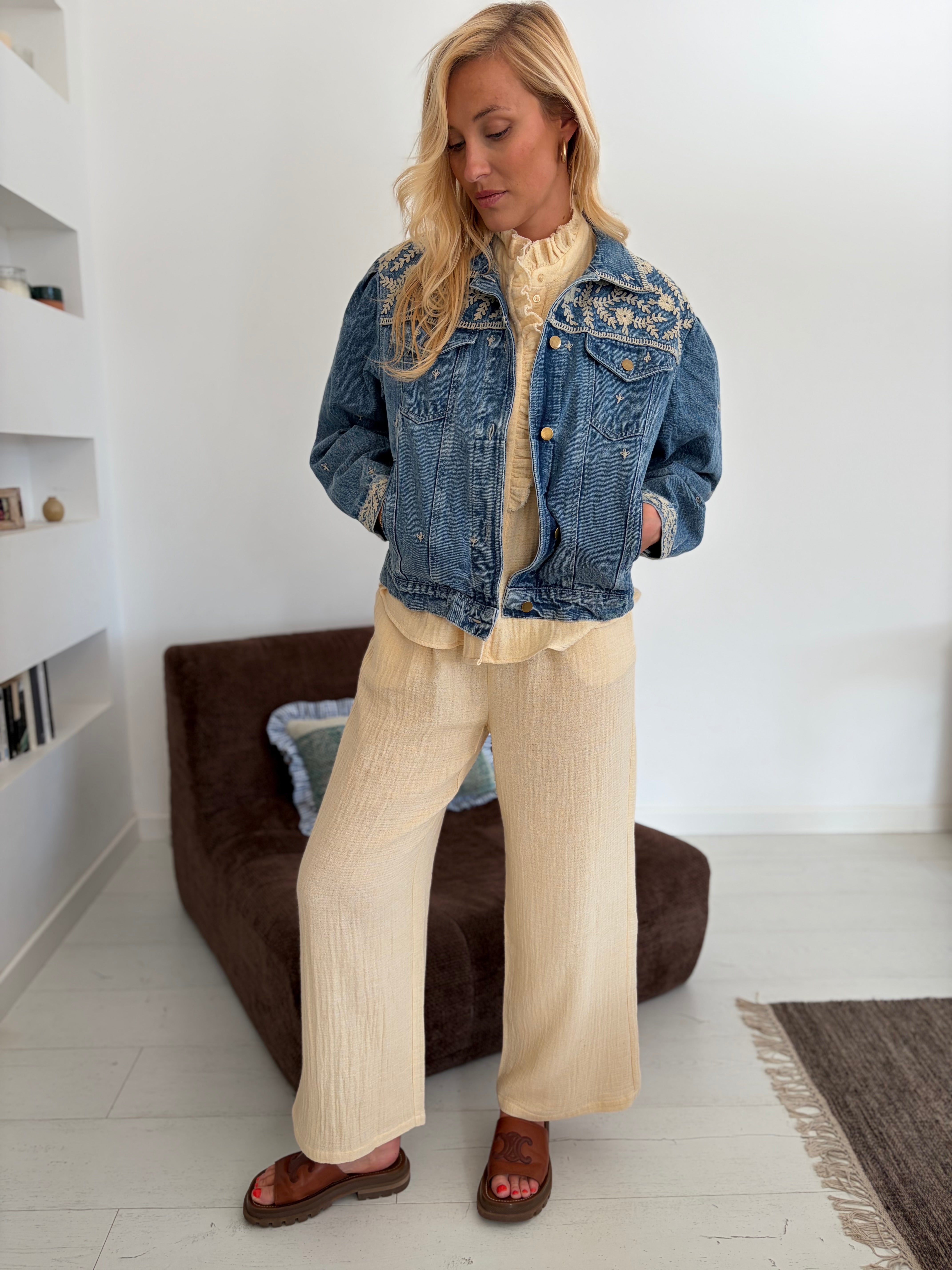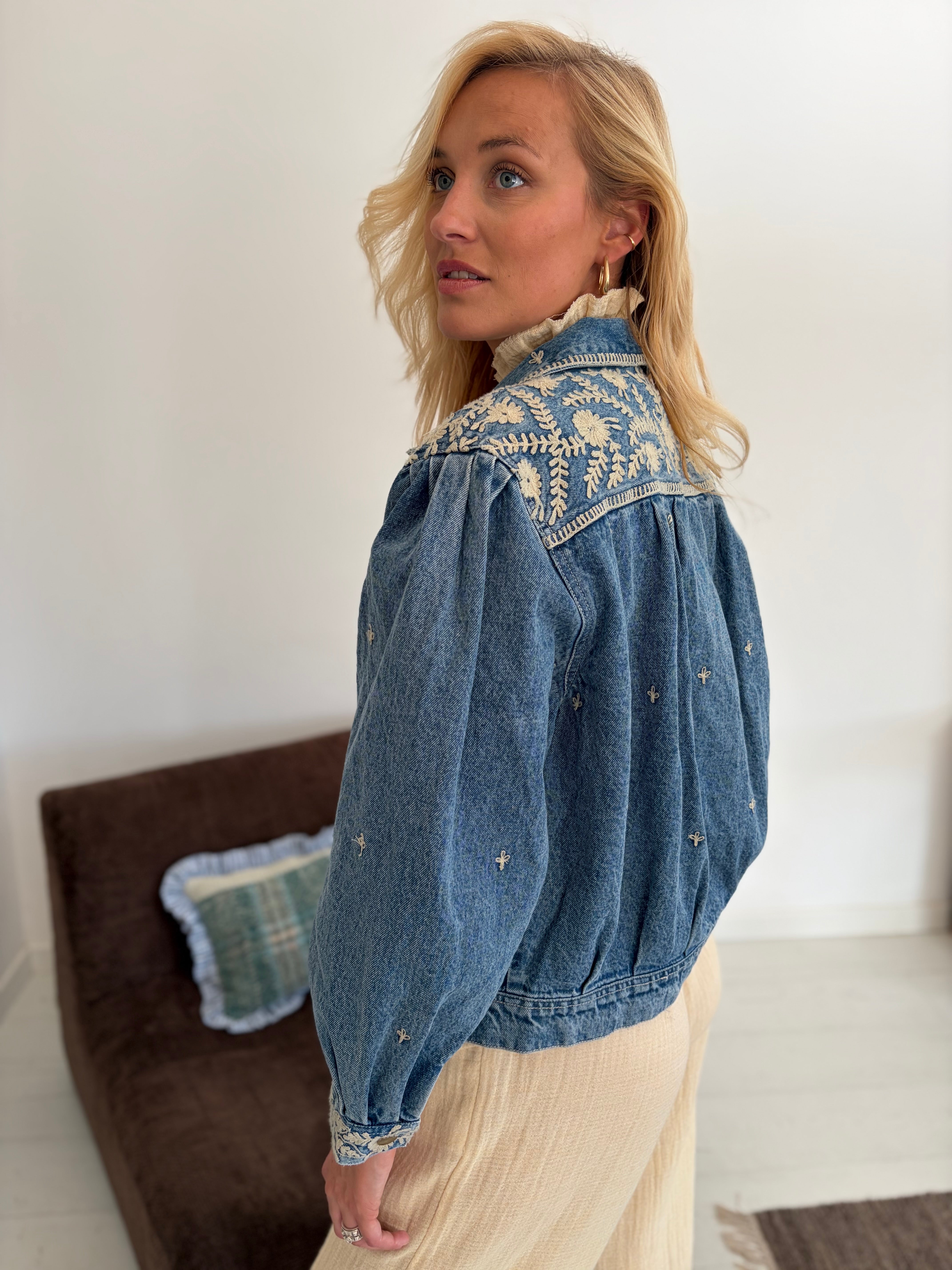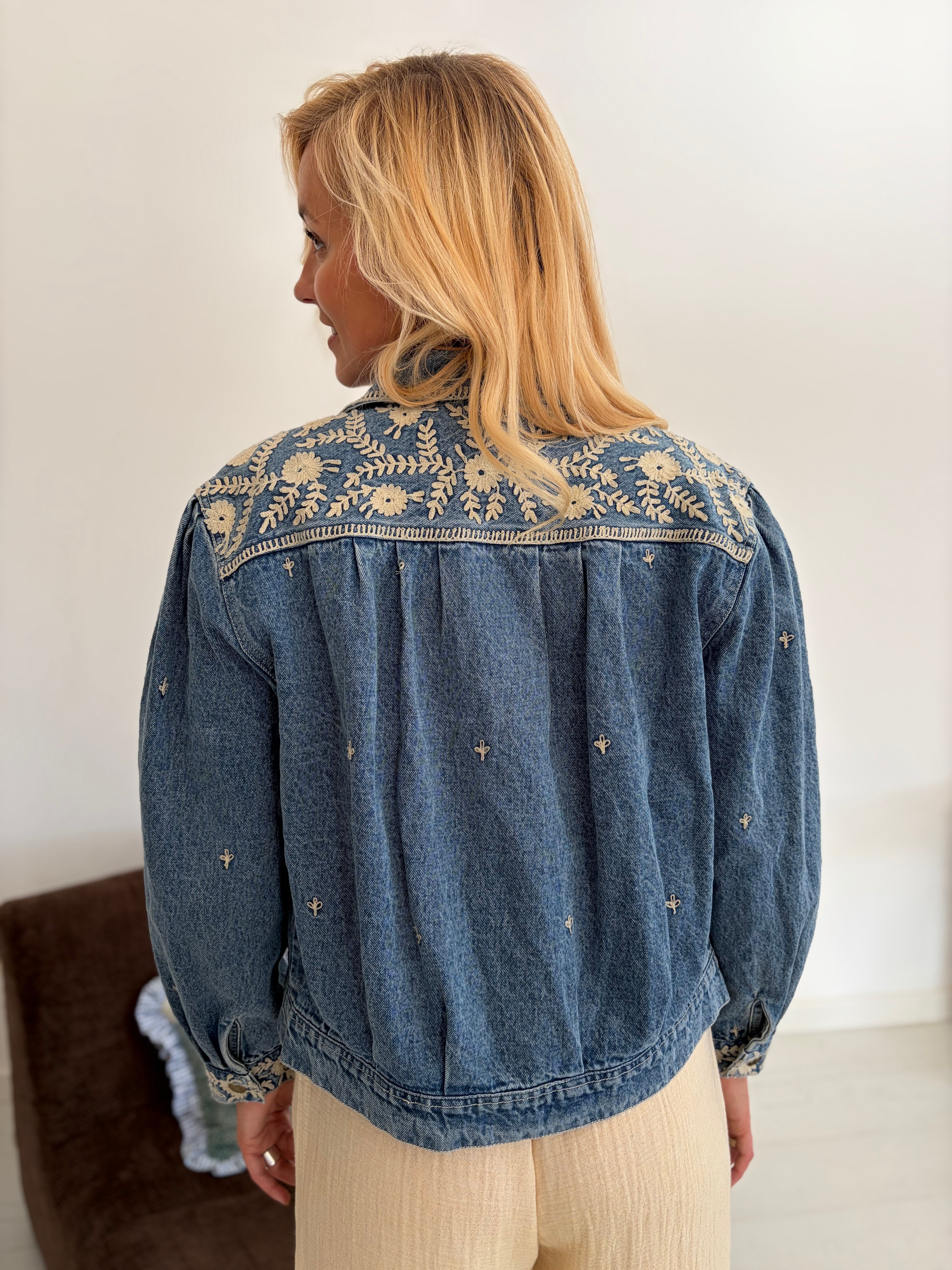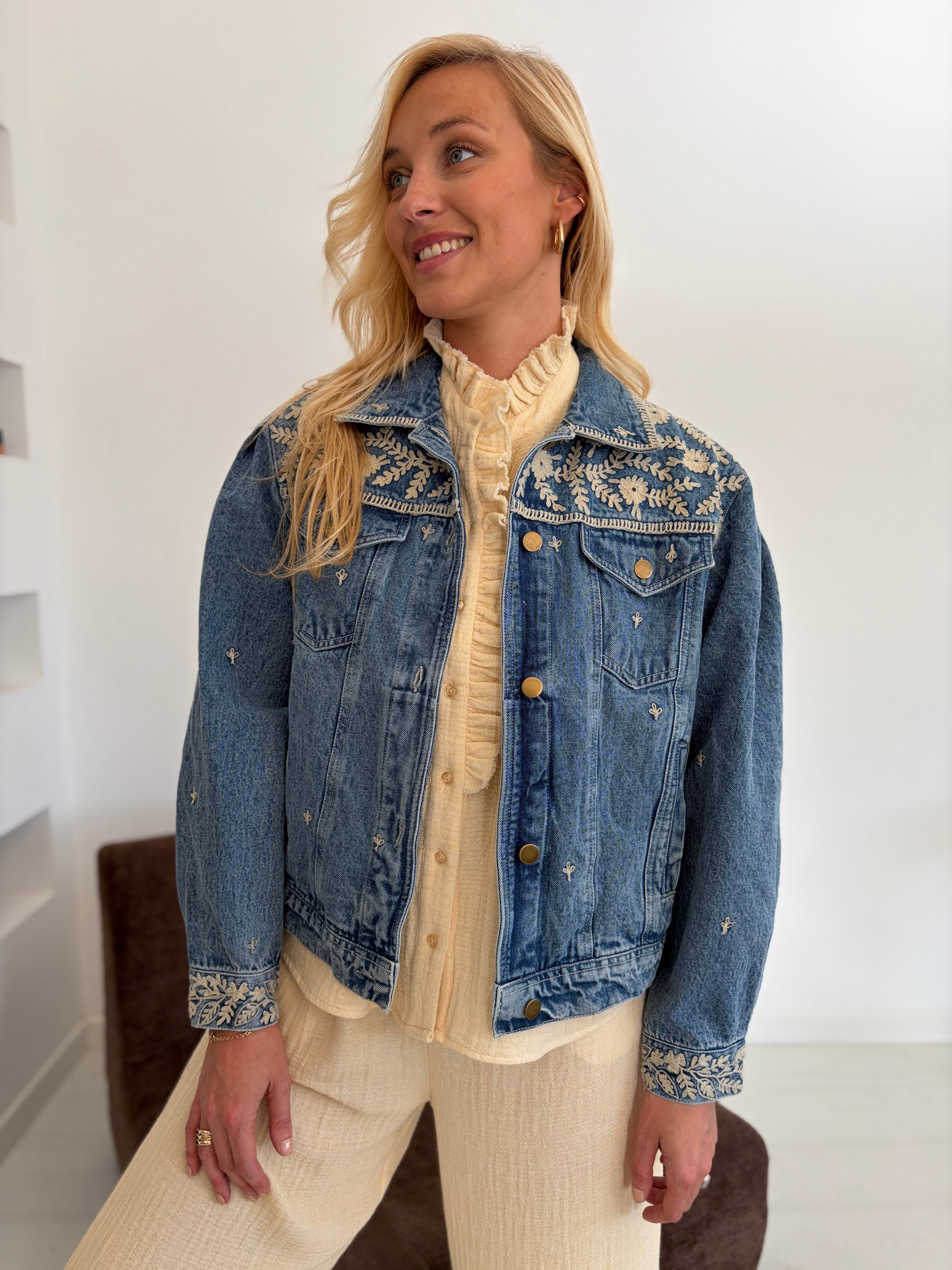 Veste en jean avec détails broderie écru