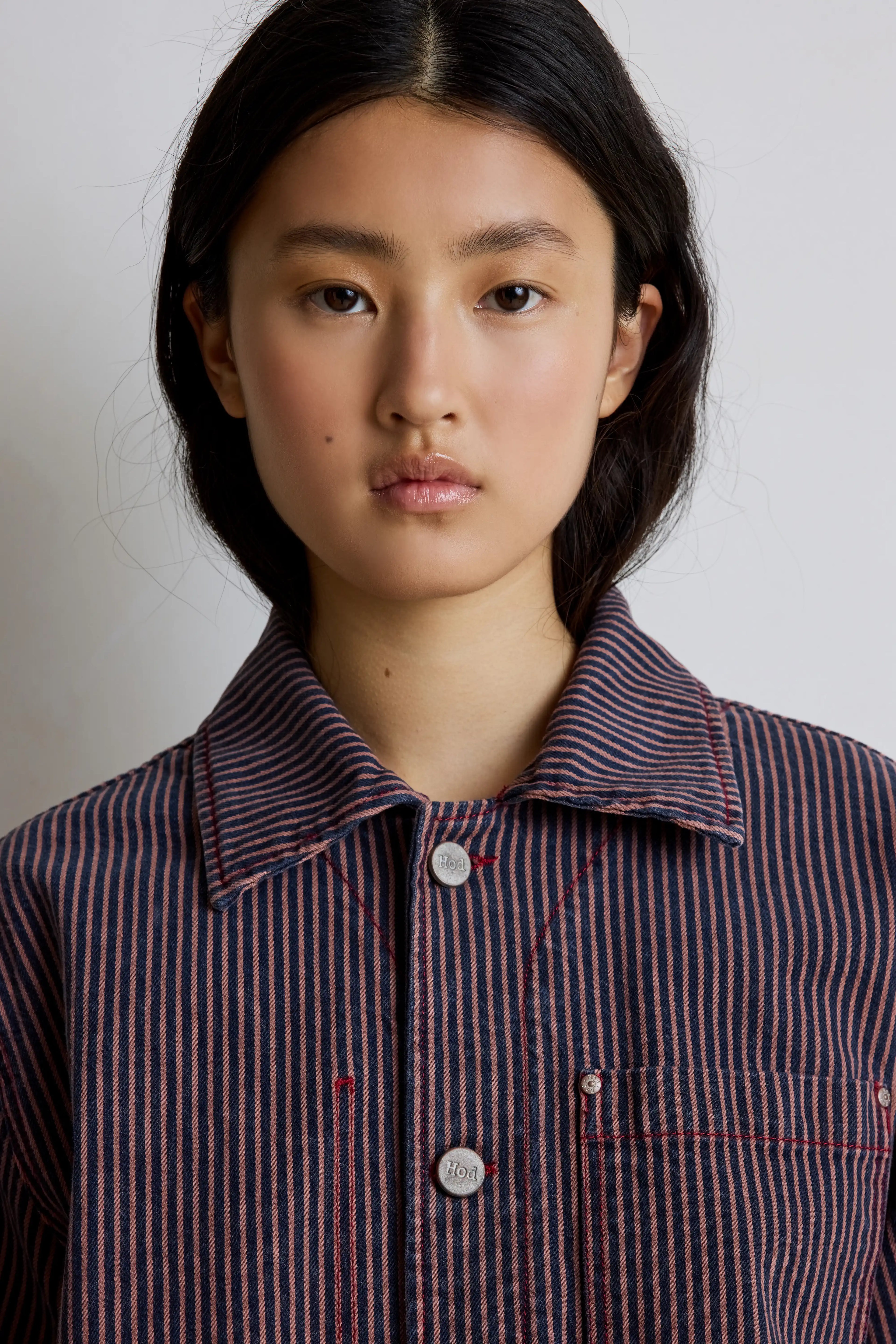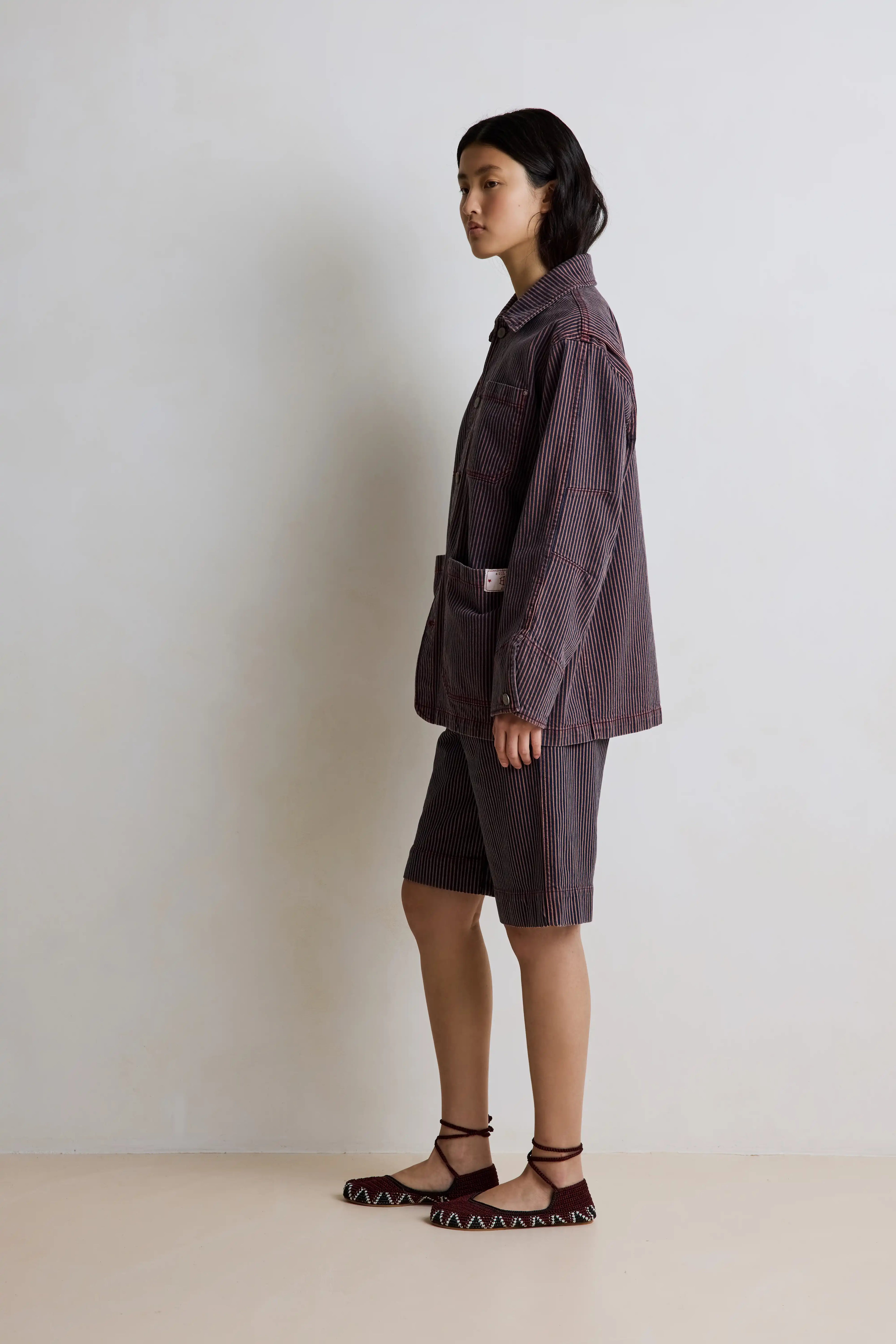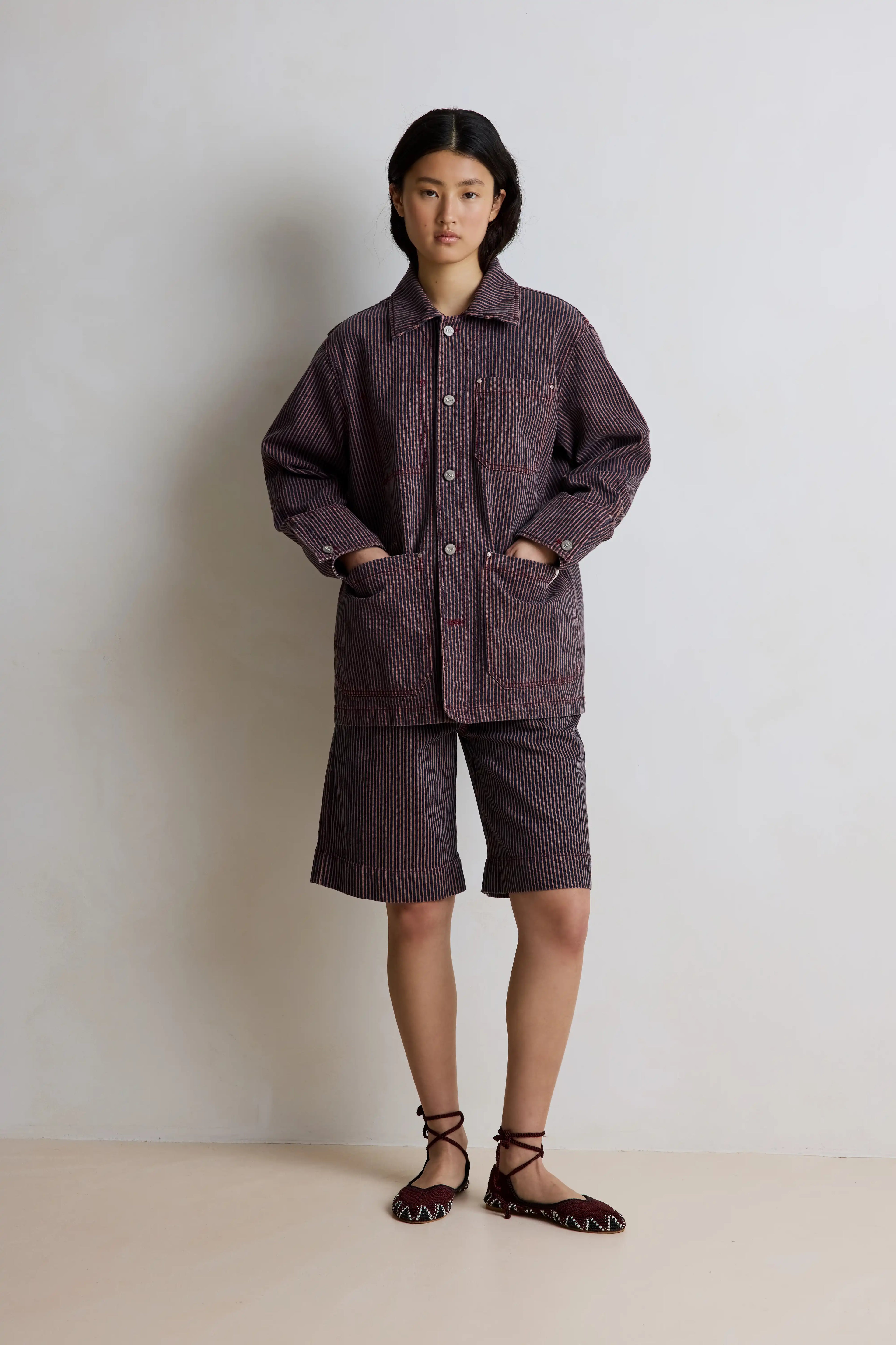 La veste Valériane est une veste en toile de jean souple. Sa coupe est droite et ses épaules un peu tombantes. Elle possède une poche plaquée poitrine et deux poche plaquée sur le bas