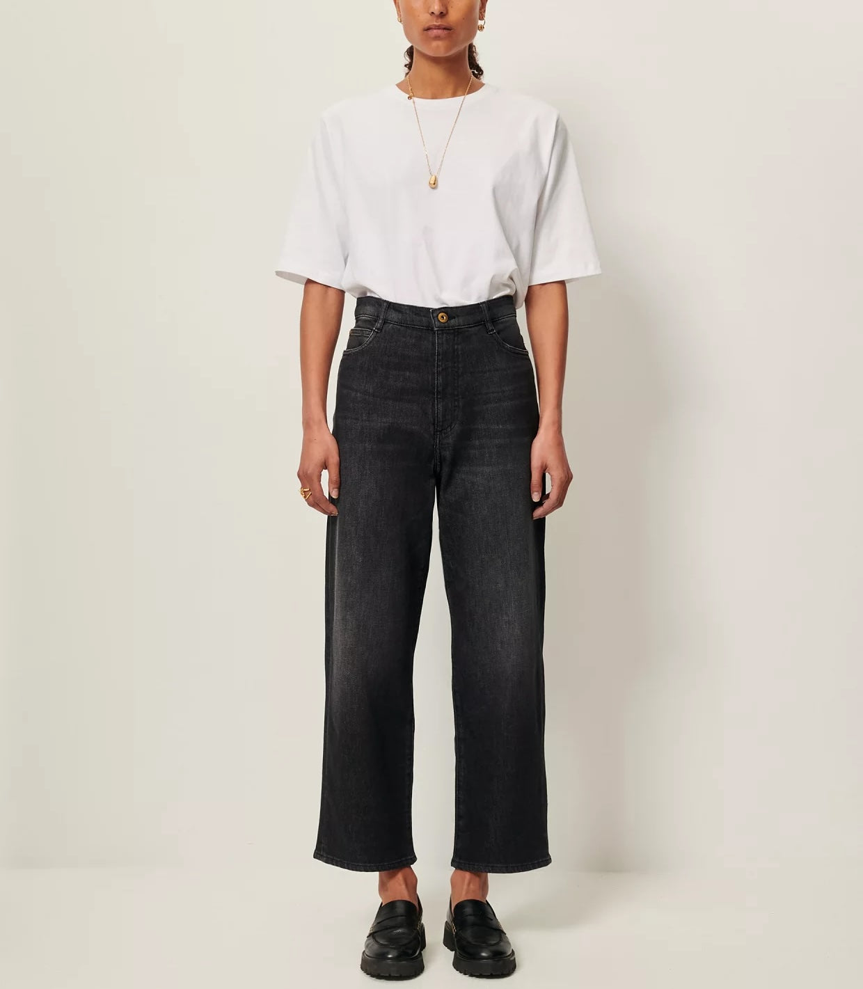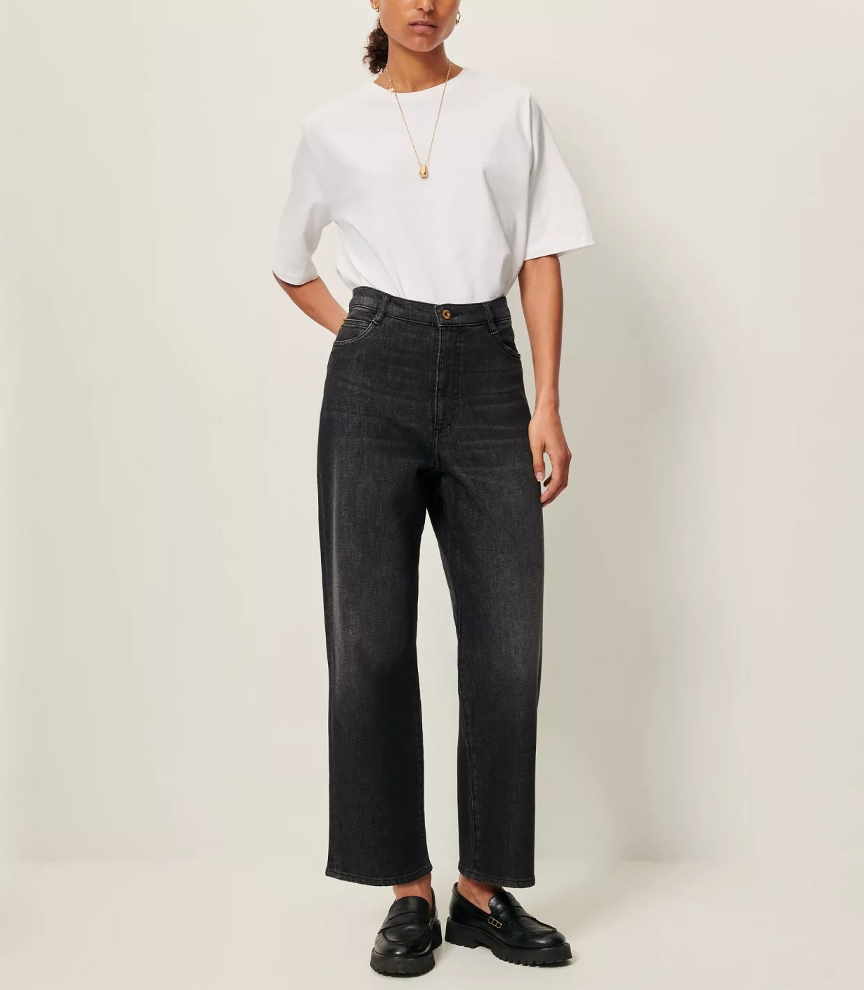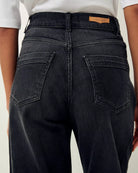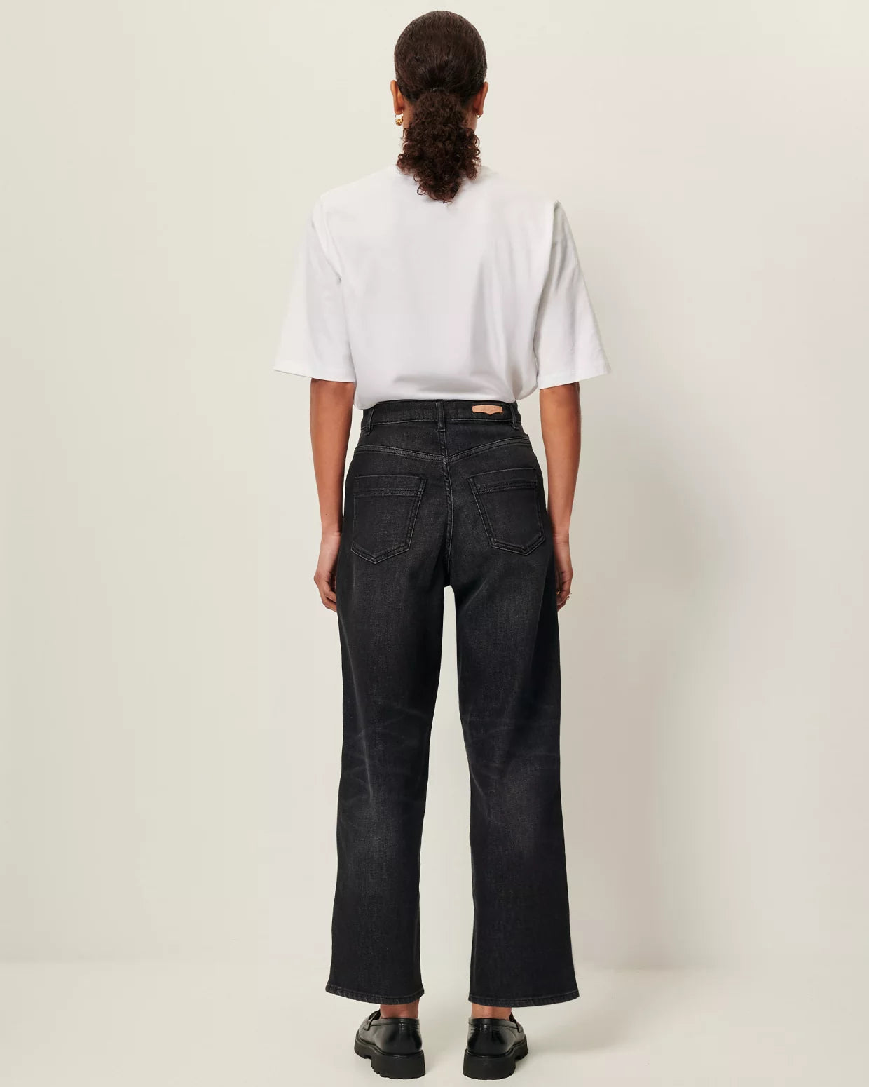 Jean droit taille haute en denim stonewashé.