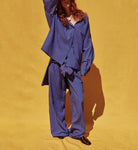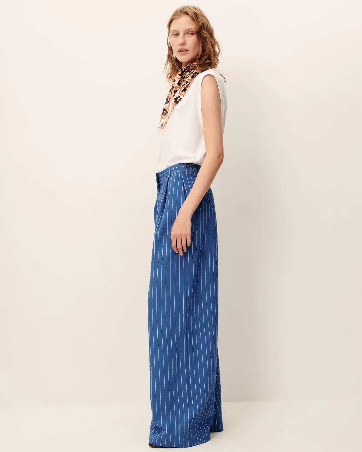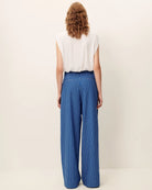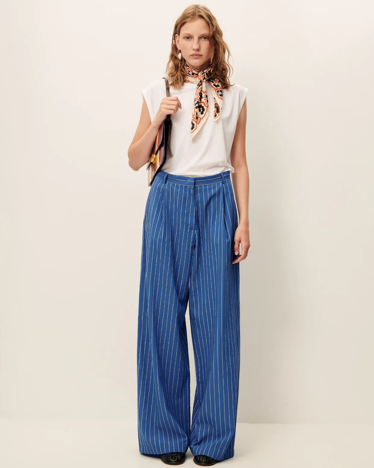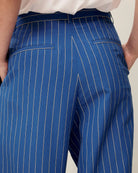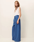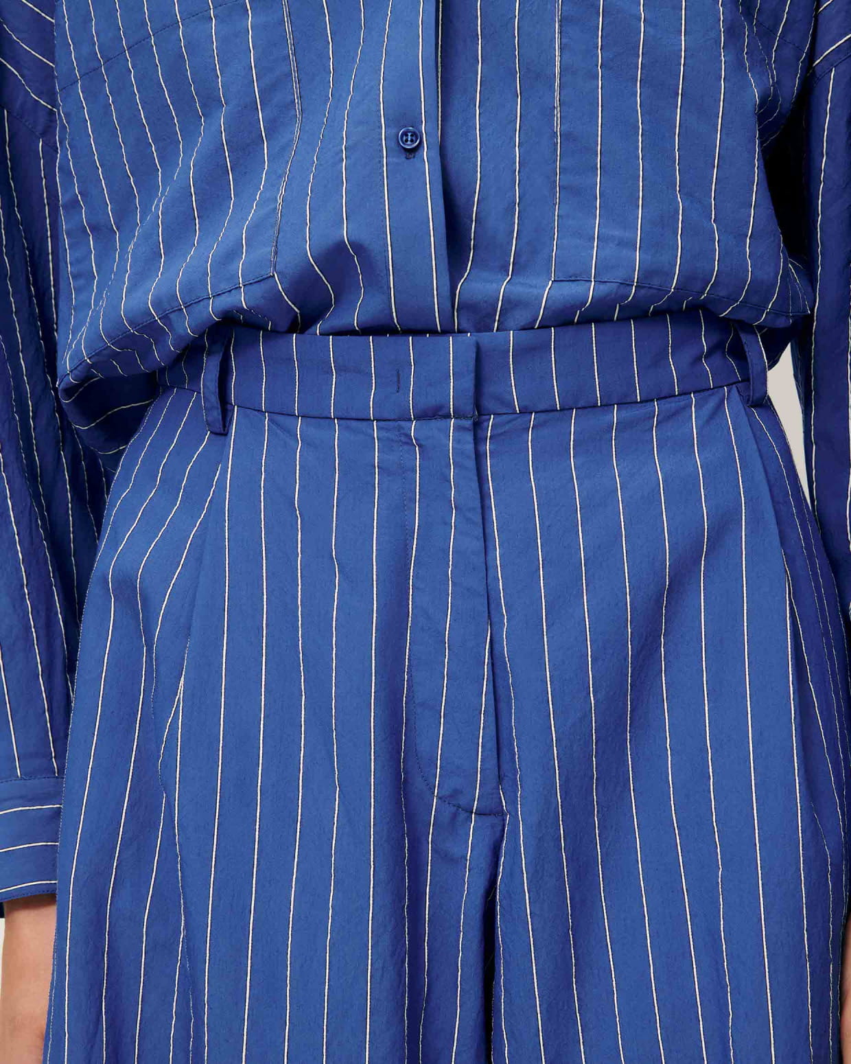 Pantalon ample à plis en popeline compacte effet crinkle, à rayures dobby tissé en Italie.