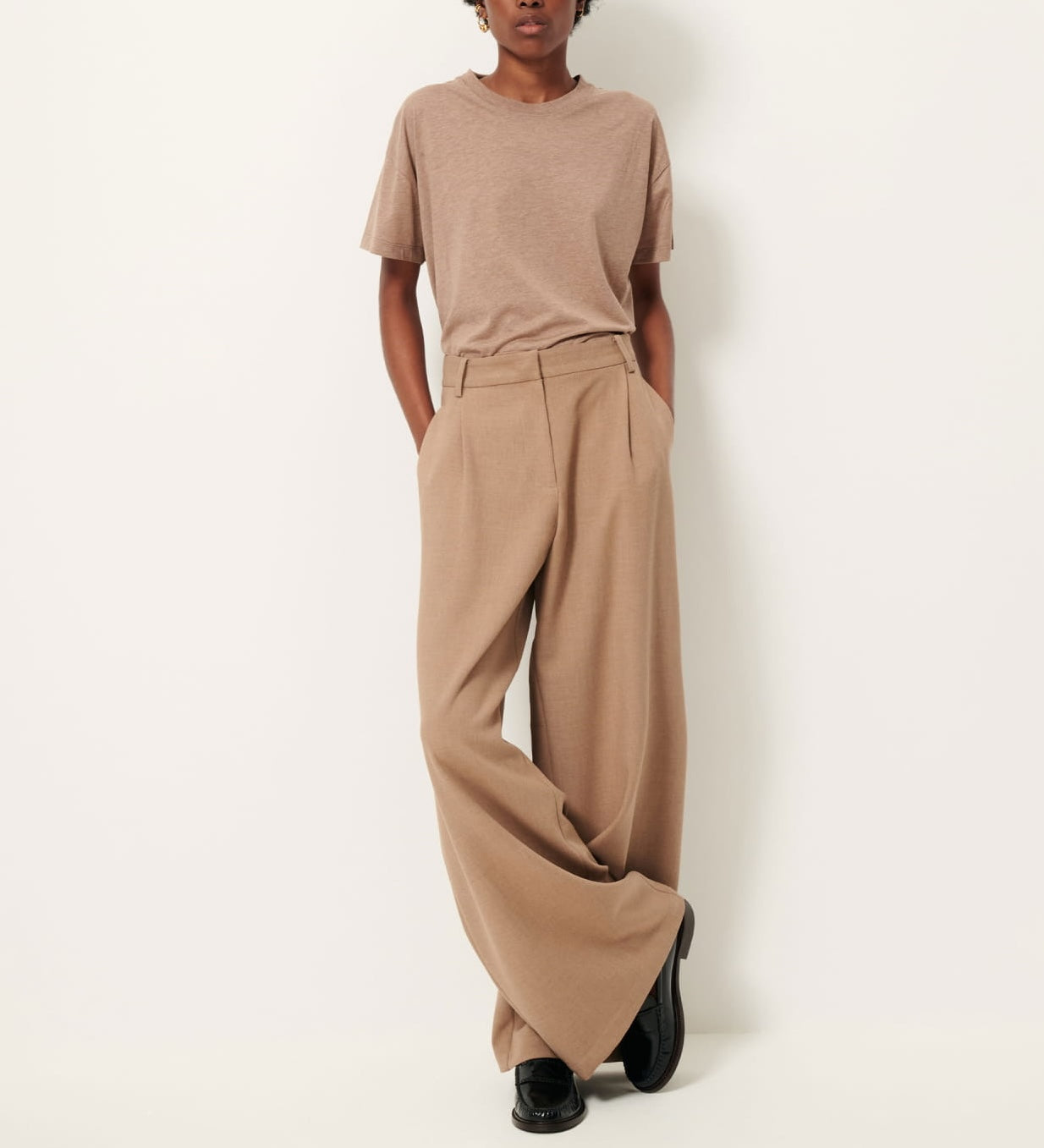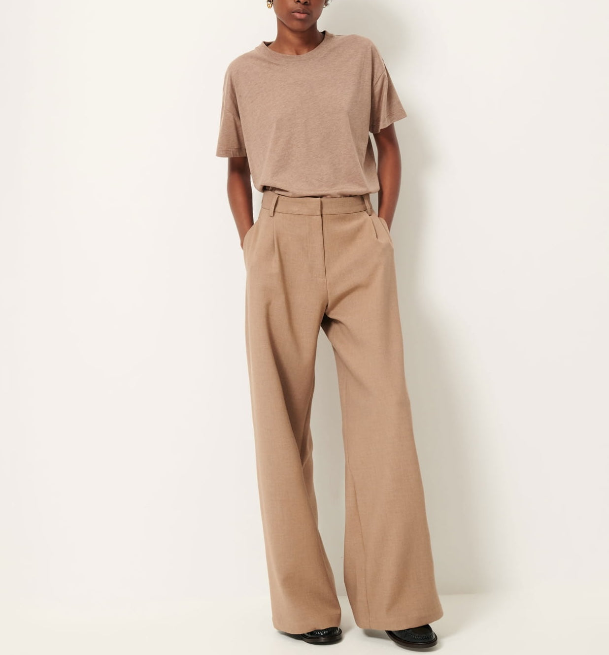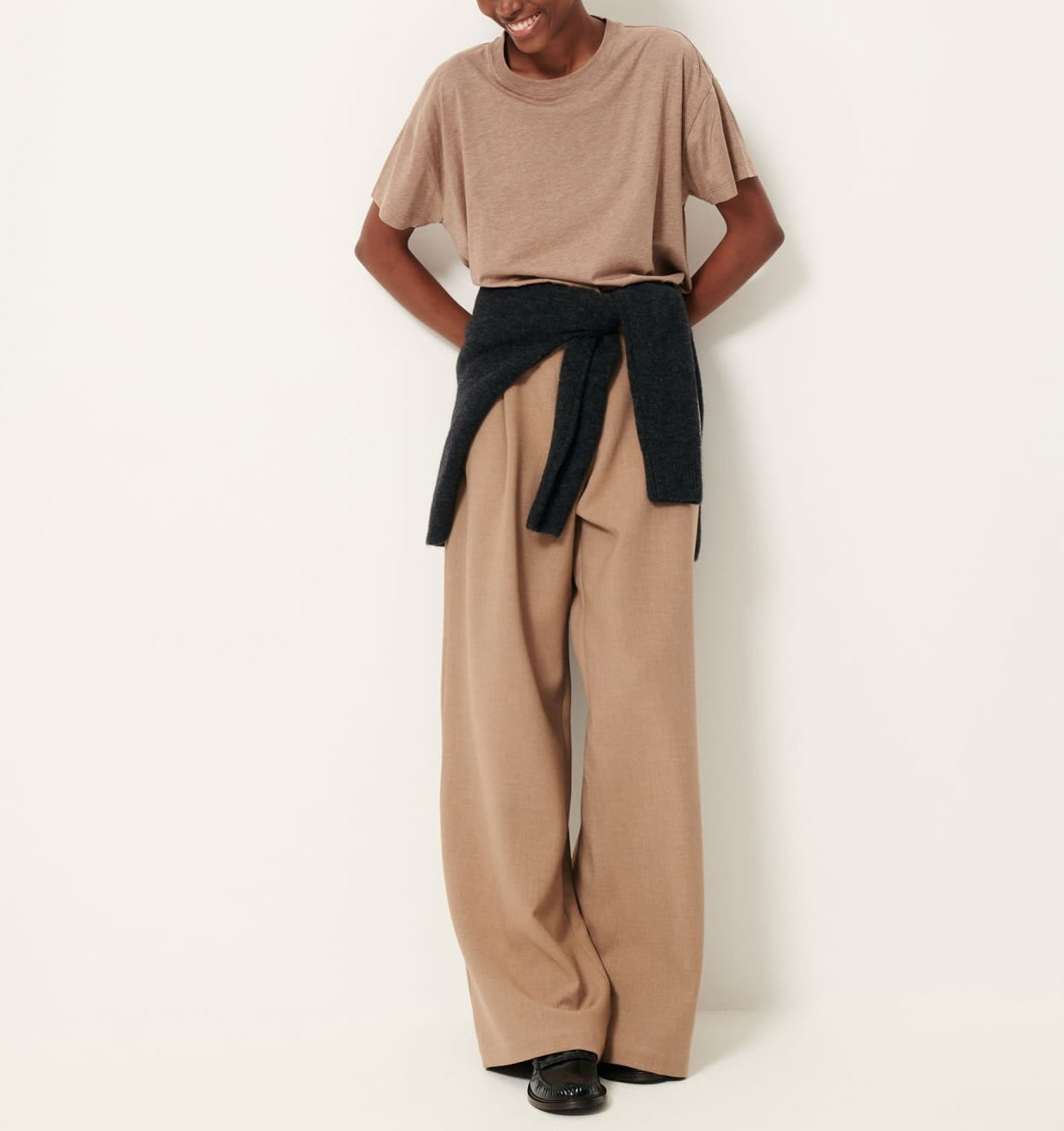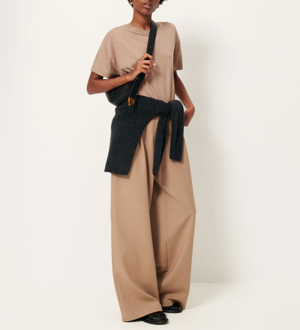 Pantalon ample d'inspiration masculine en flanelle marengo fluide.