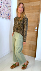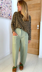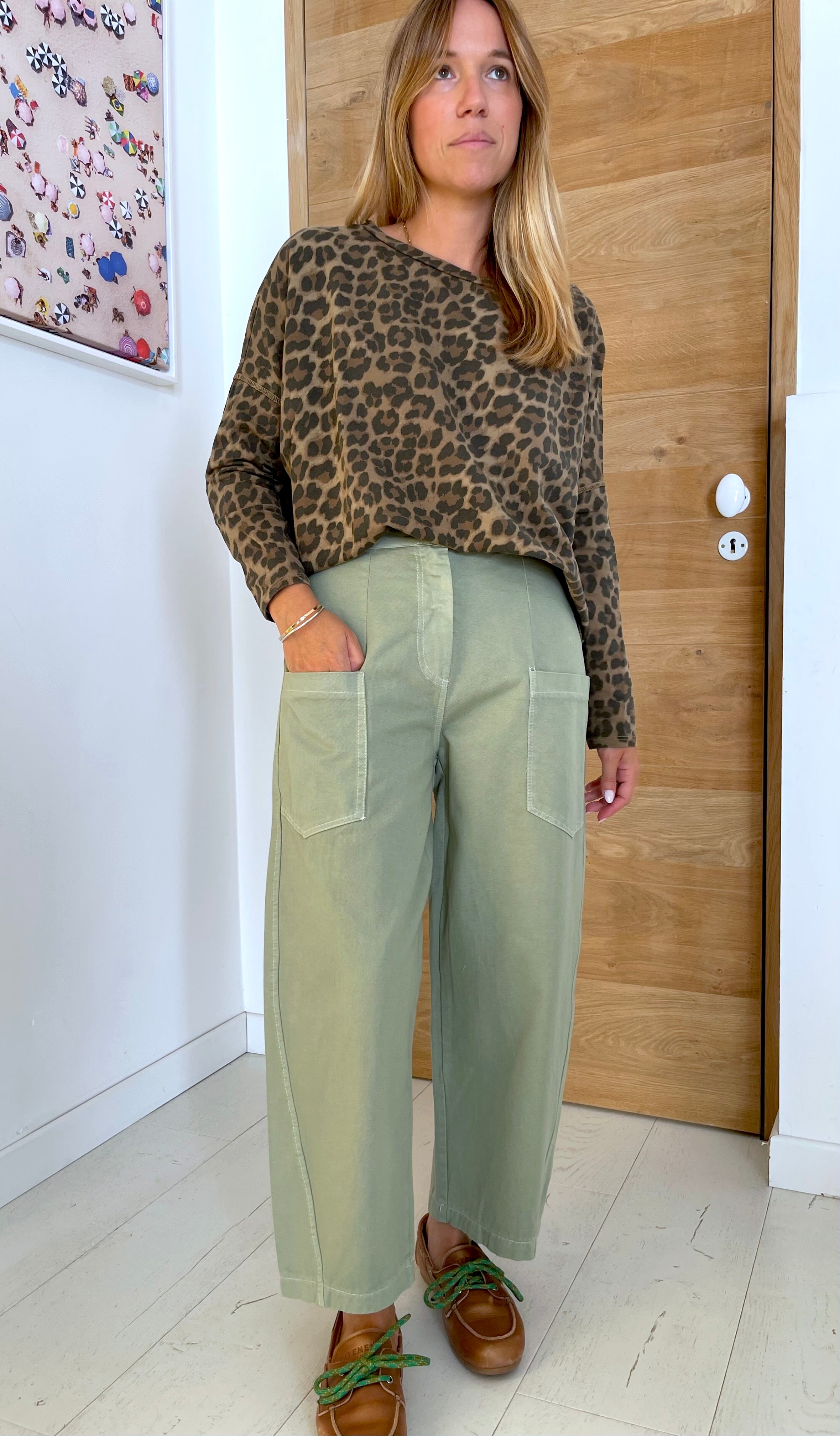Taille élastique sur l'arrière, fermeture par bouton sur l'avant