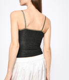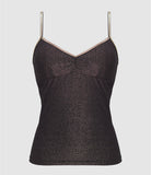 Le caraco Georgia est un haut à porter à la maison, ou sous un pull ou une chemise, en laissant ses fines bretelles lurex se dévoiler