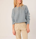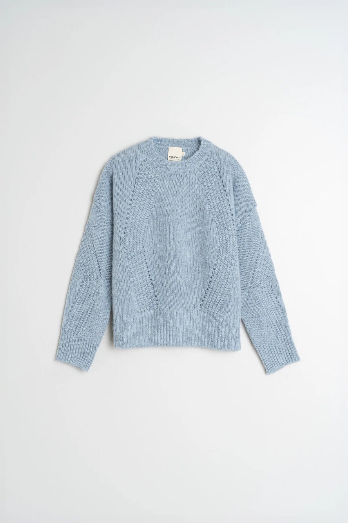 Col rond et épaules tombantes • Finitions côtelées • Détails dégradés et fendus • Tissu en tricot d'alpaga • Coupe décontractée : Conçue pour être légèrement ample