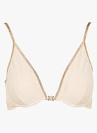 Soutien-gorge avec armatures qui s'attache par un crochet doré à l'avant, Jackie a un décolleté plongeant sexy et une forme englobante pour convenir à toutes les poitrines. En coloris lurex ou uni, le soutien-gorge Jackie s'adapte à tous les goûts !