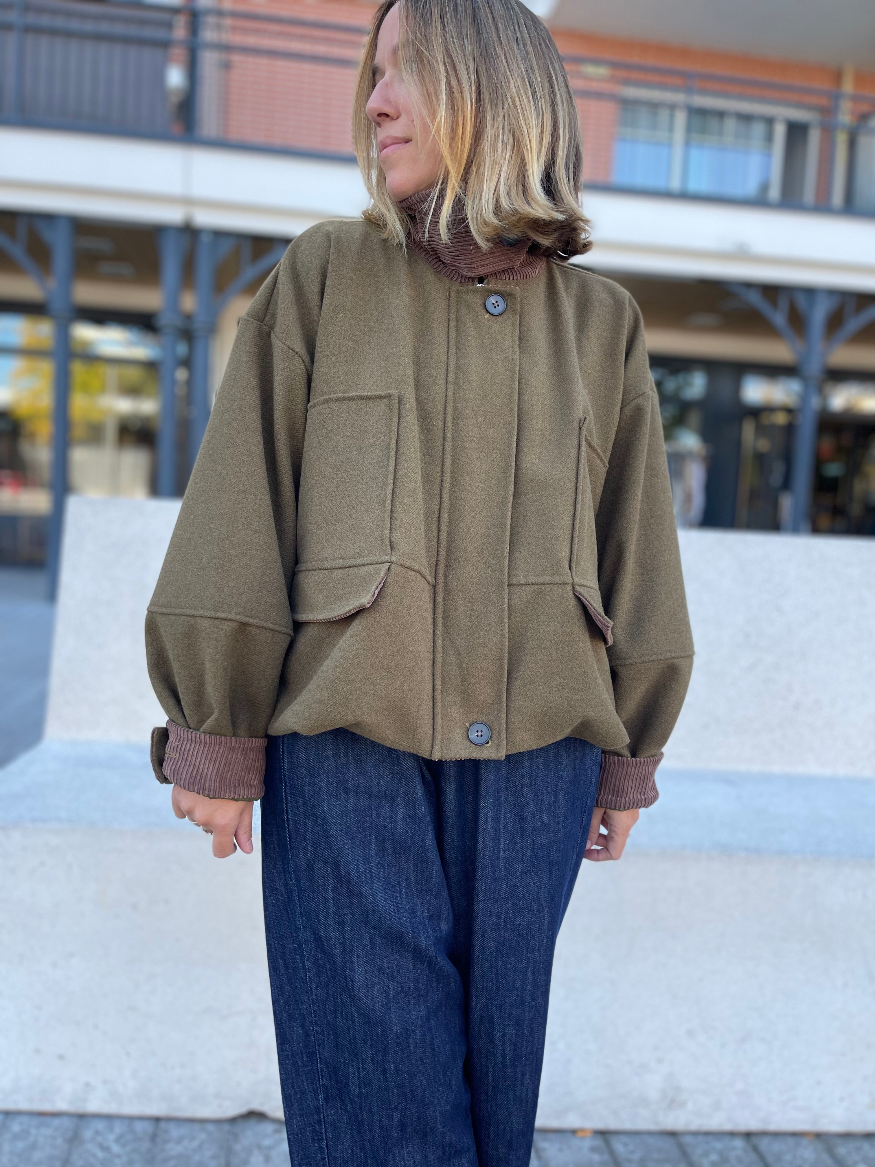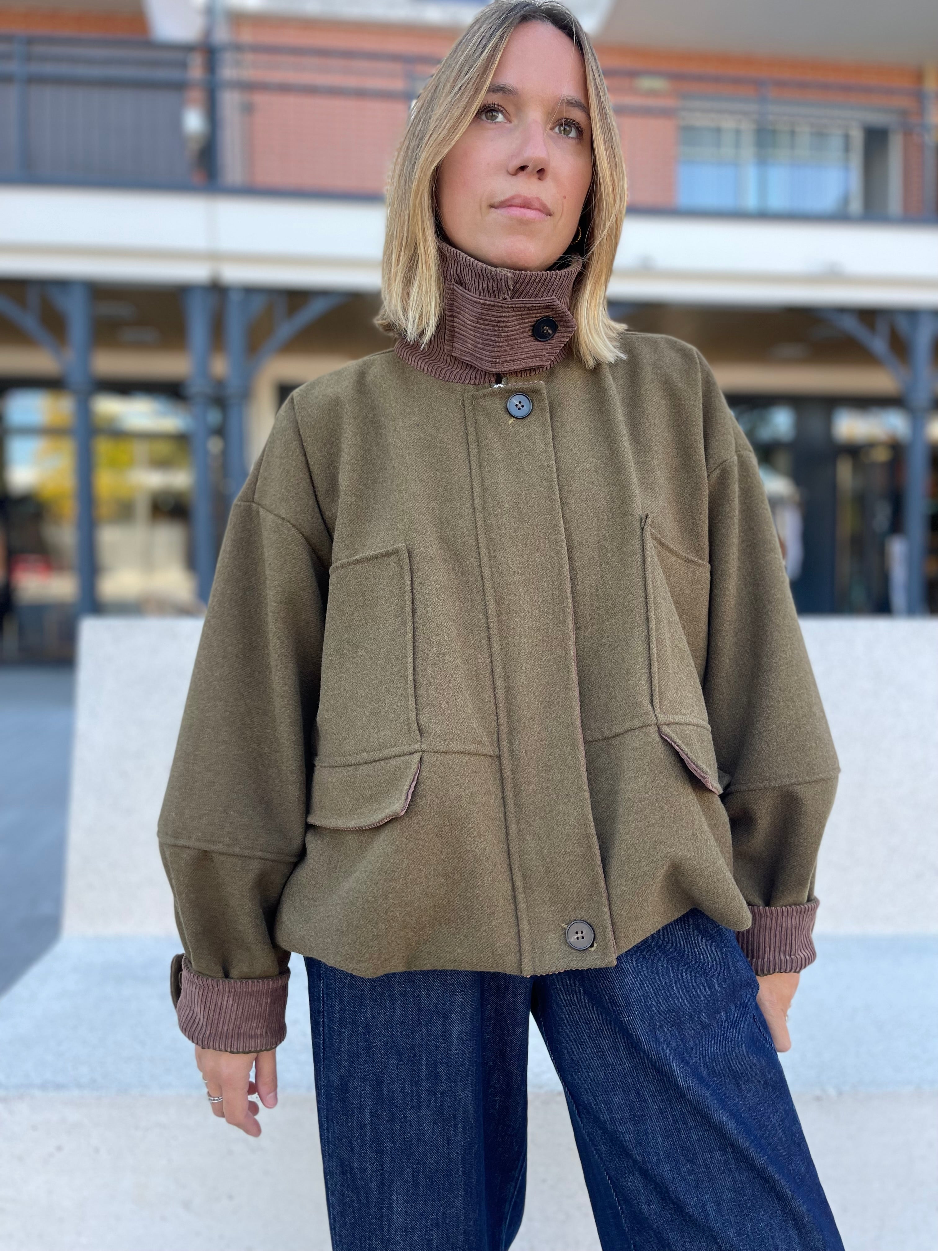 Détails velours côtelés sur le col, les manches et rabats des poches