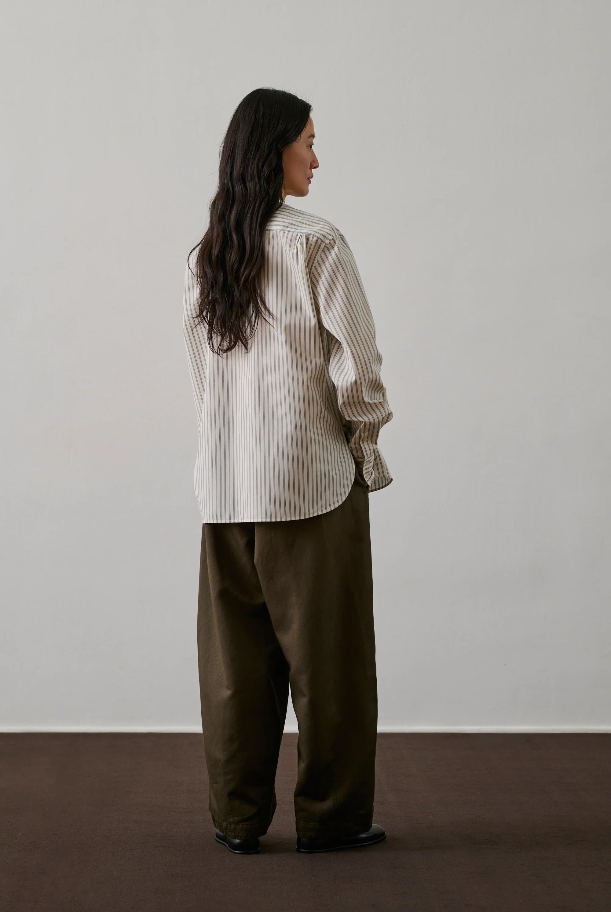 La vision de Soeur allie sophistication et modernité, jouant sur des coupes fluides et des matières nobles comme la soie, le coton, la laine, l'alpaga ou le velours côtelé. Robes amples en crêpe, chemises en popeline, manteaux oversize en laine brossée, pantalons larges structurés : chaque création reflète une féminité sincère, sensible et inclusive.