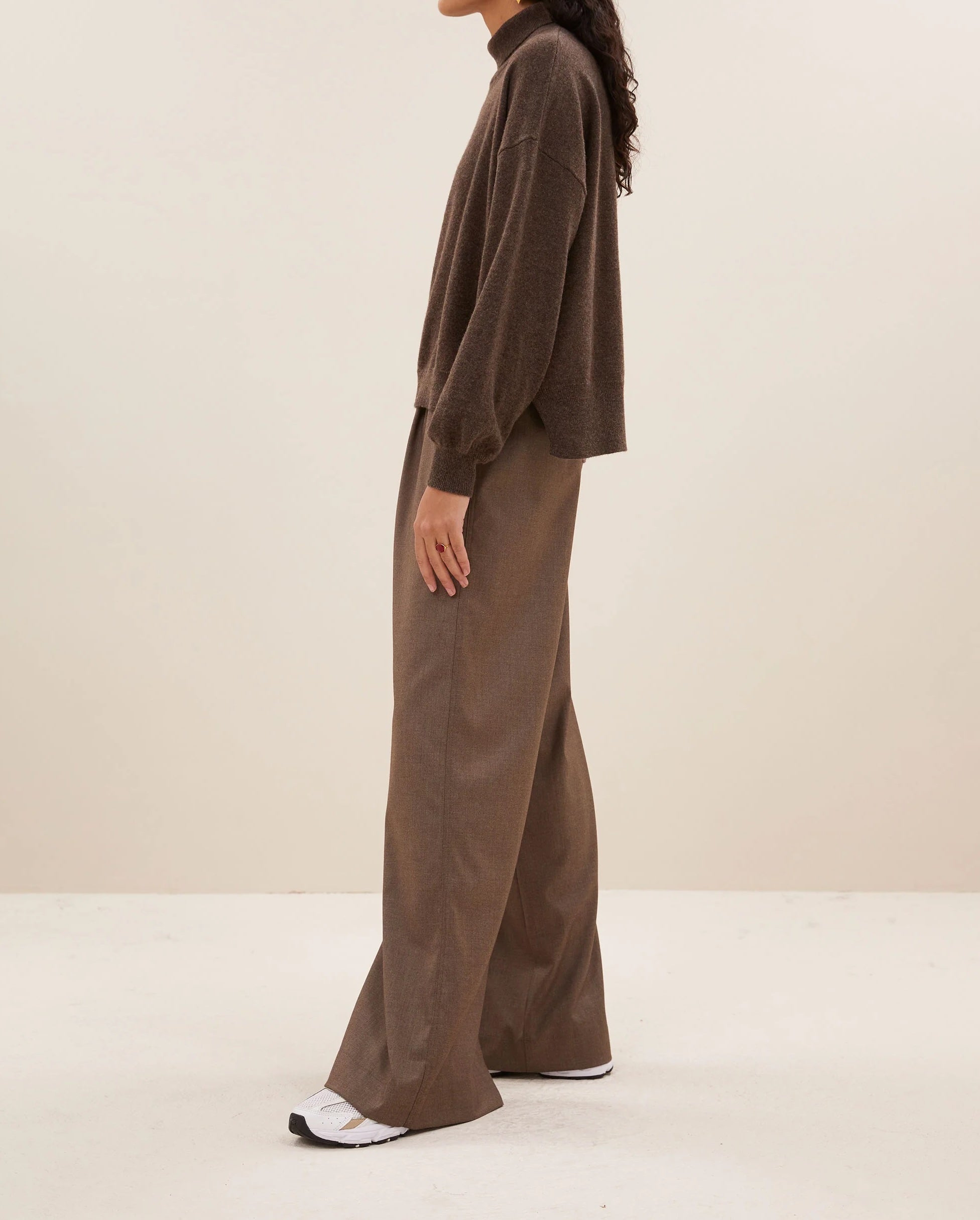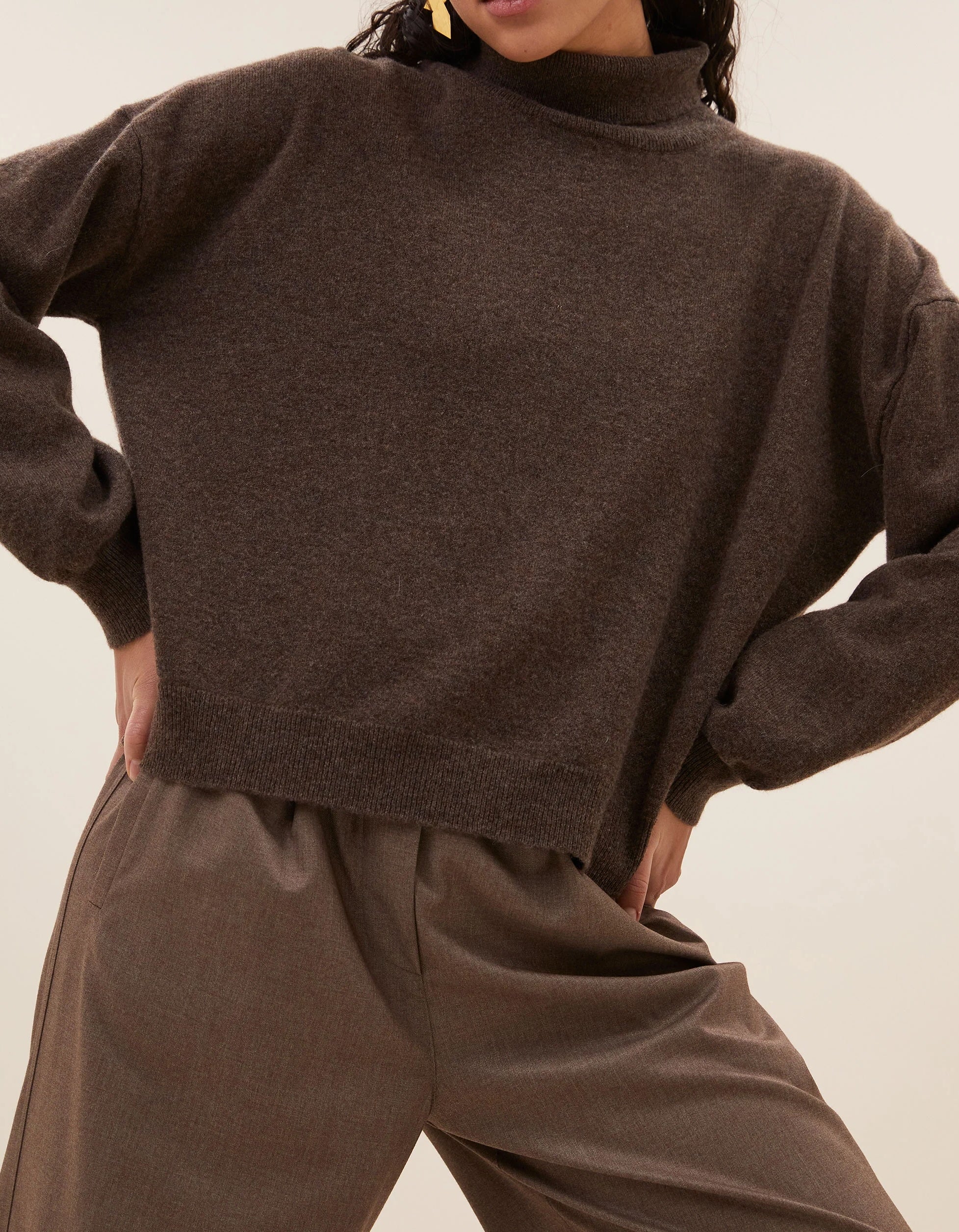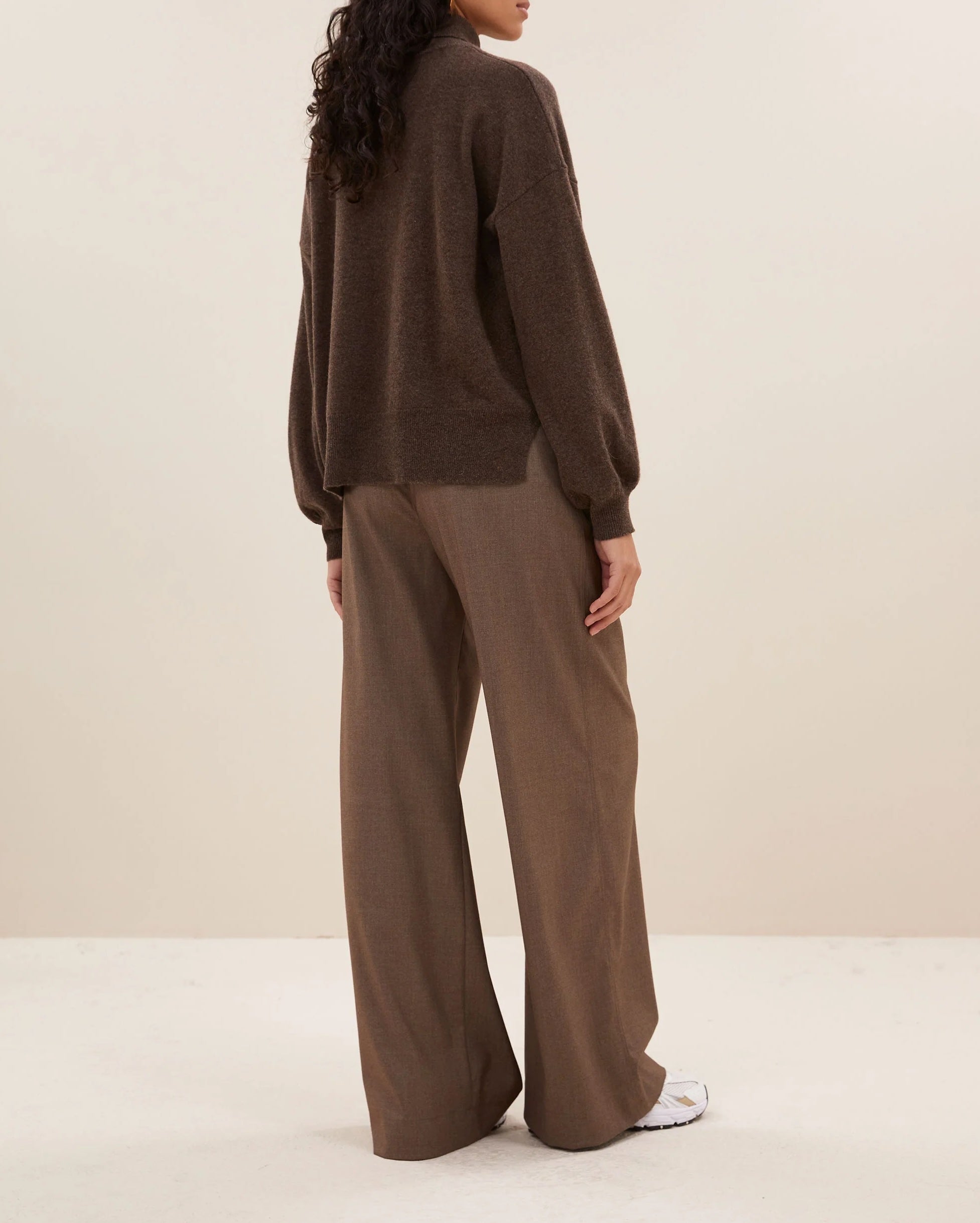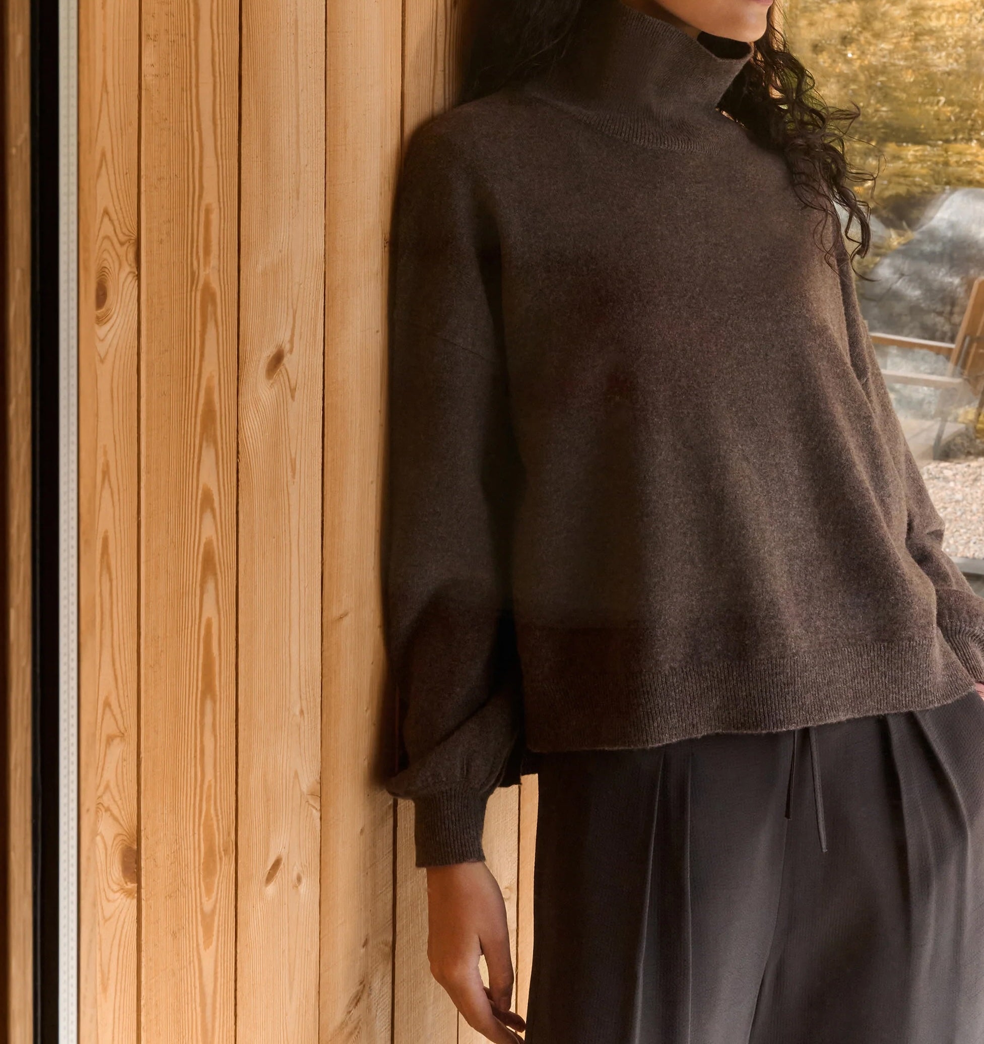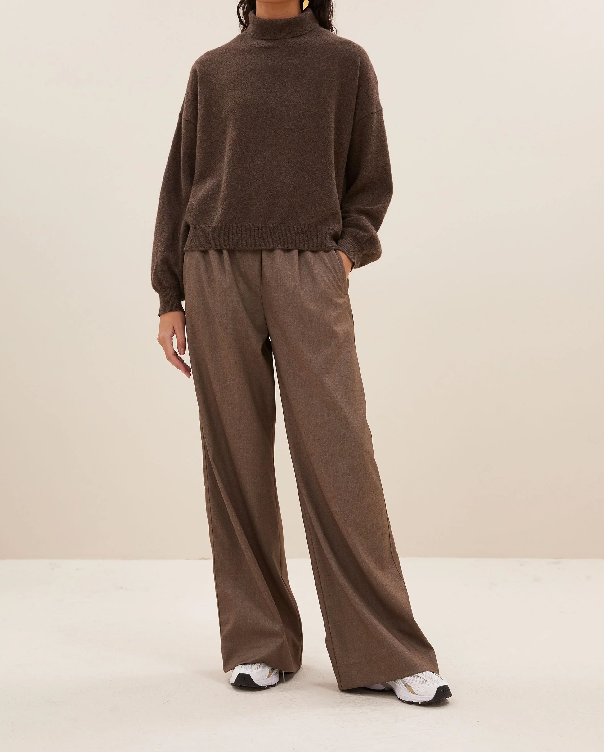 Pull décontracté avec une coupe normale confortable. Grâce au col montant et aux coutures d'épaule abaissées, ce pull affiche un look moderne. Les bords en maille côtelée et les fentes discrètes sur les côtés complètent l’ensemble. Parfait pour une journée détendue alliant style et confort