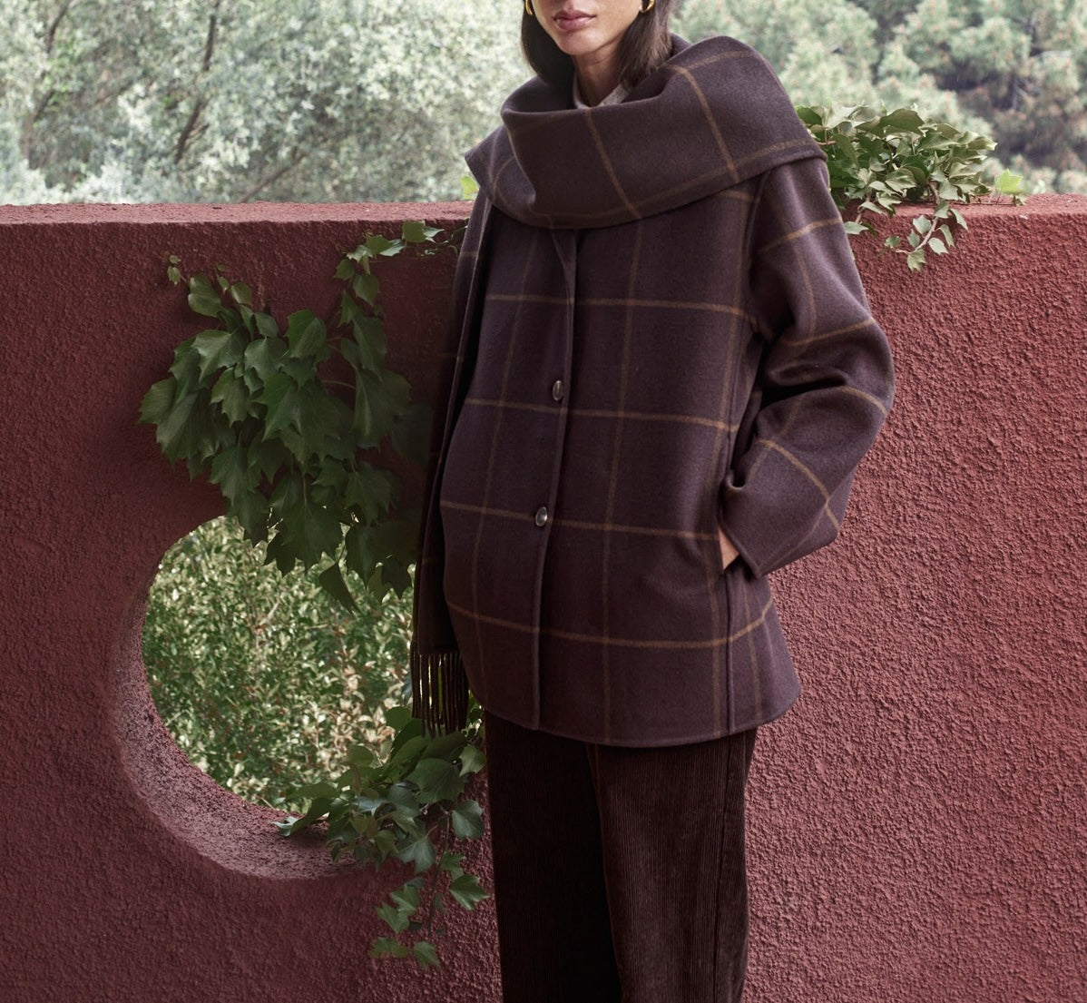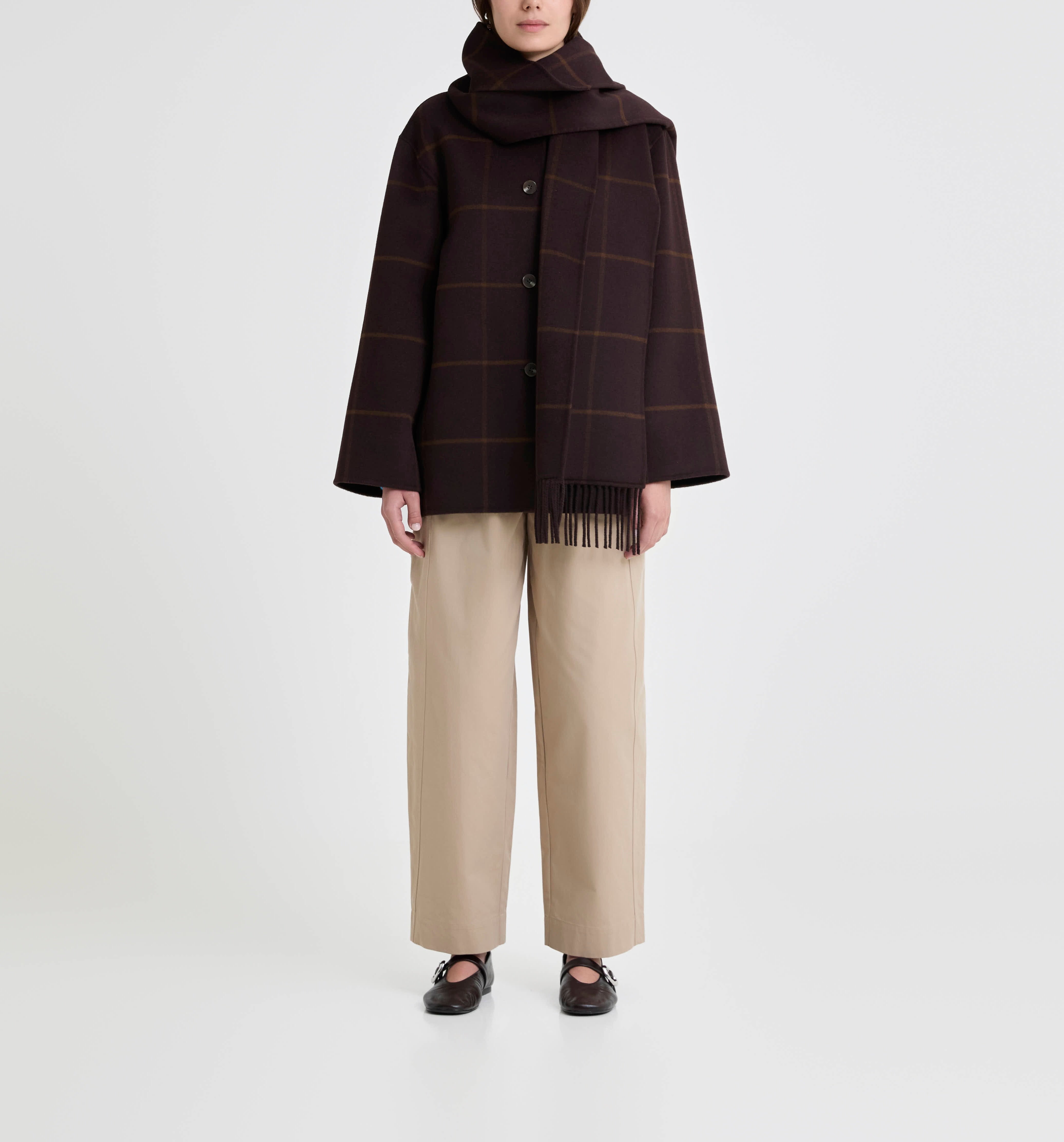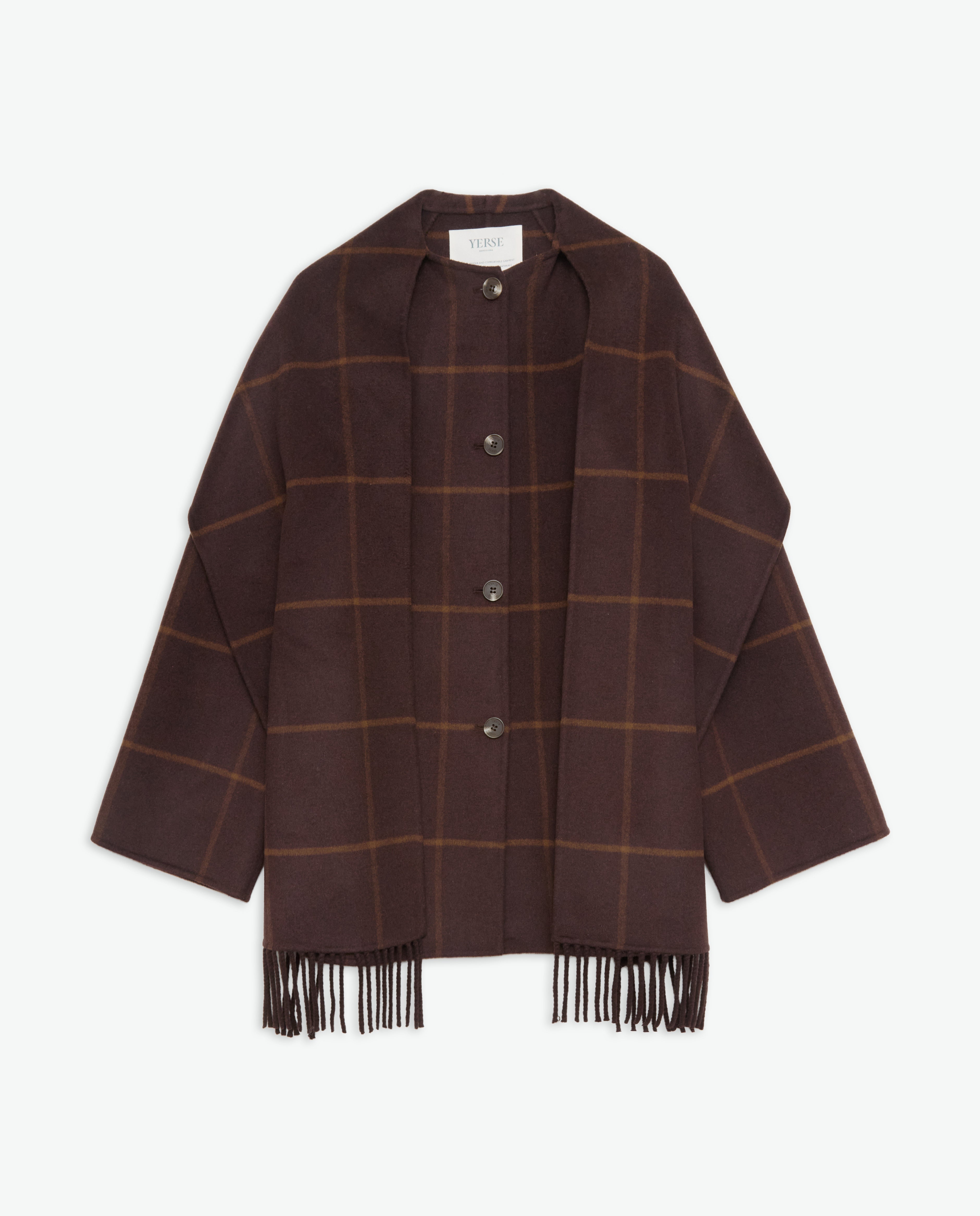Tissu double face en laine et fibres recyclées. Imprimé à carreaux.